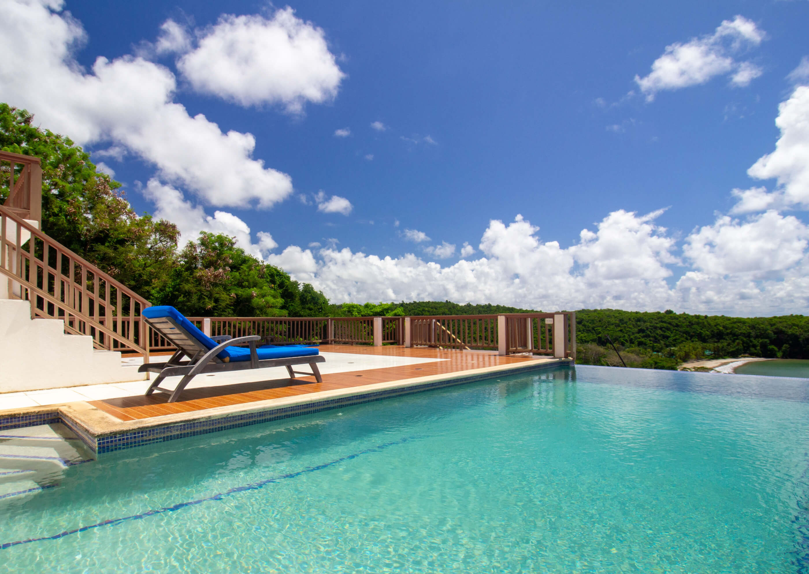 A Large and Lovely 5 bedroom Villa overlooking the Beautiful La Sagesse Bay Below. This is a lovely villa for a larger group of up to 10 guests, or for just two for a romantic stay the property works exceptionally well.