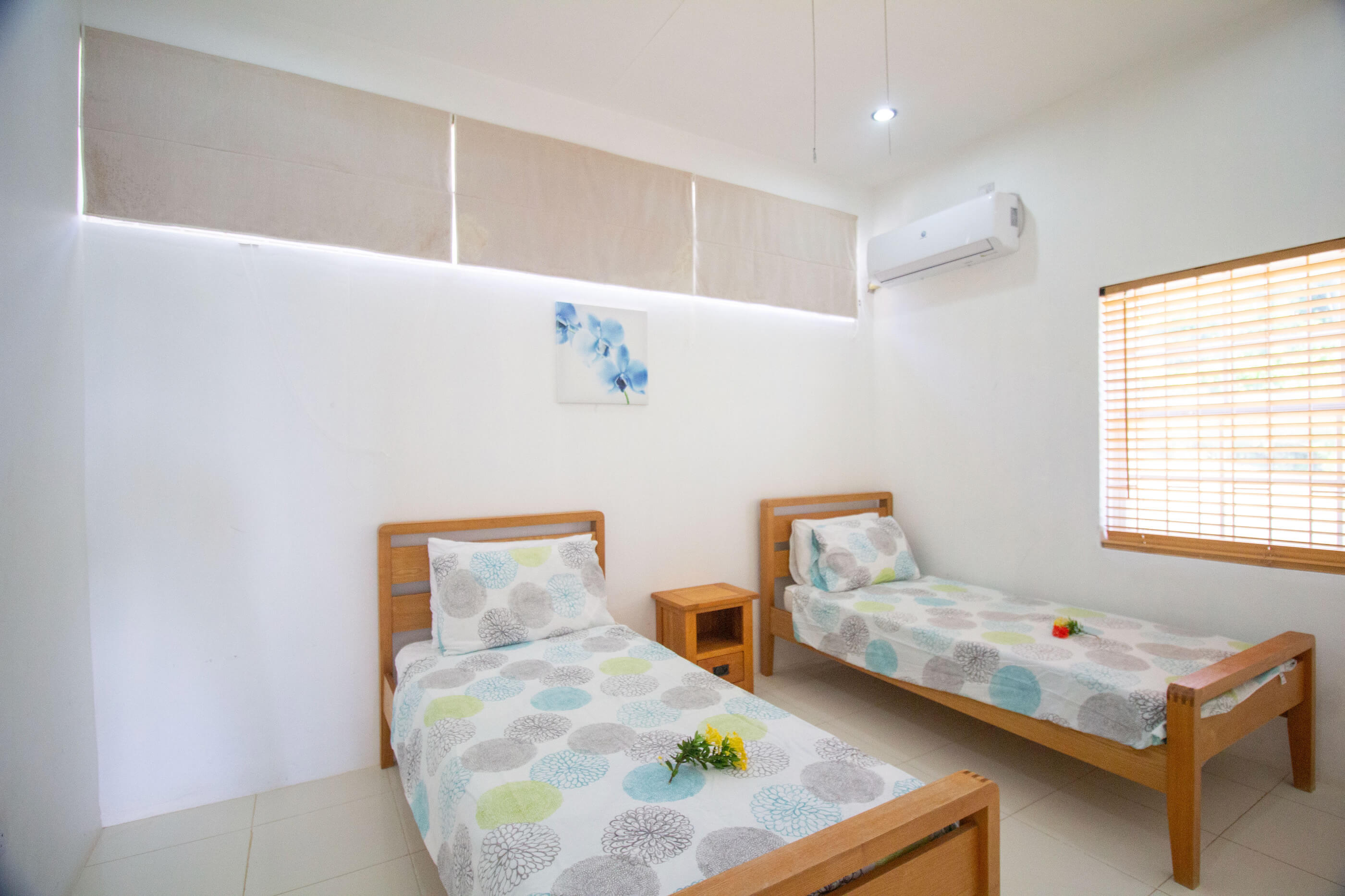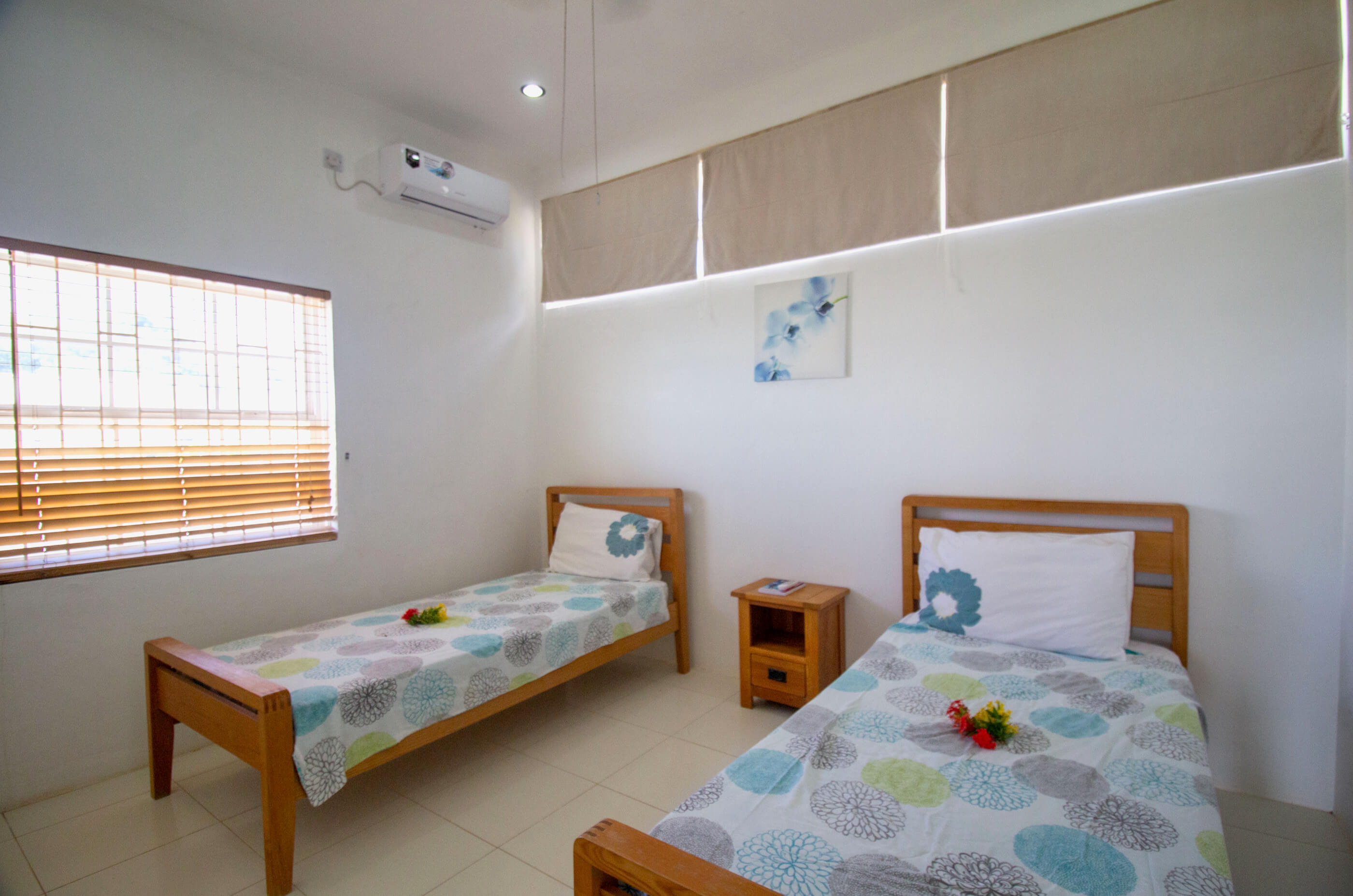 All En Suite and air conditioned: One king, two double and 4 twin beds (2 in each room) All the usual bed linen, extra pillows if needed, hair dryers, air cooling fans, 5 en suite Bathrooms all with private toilet, shower enclosure, towels...