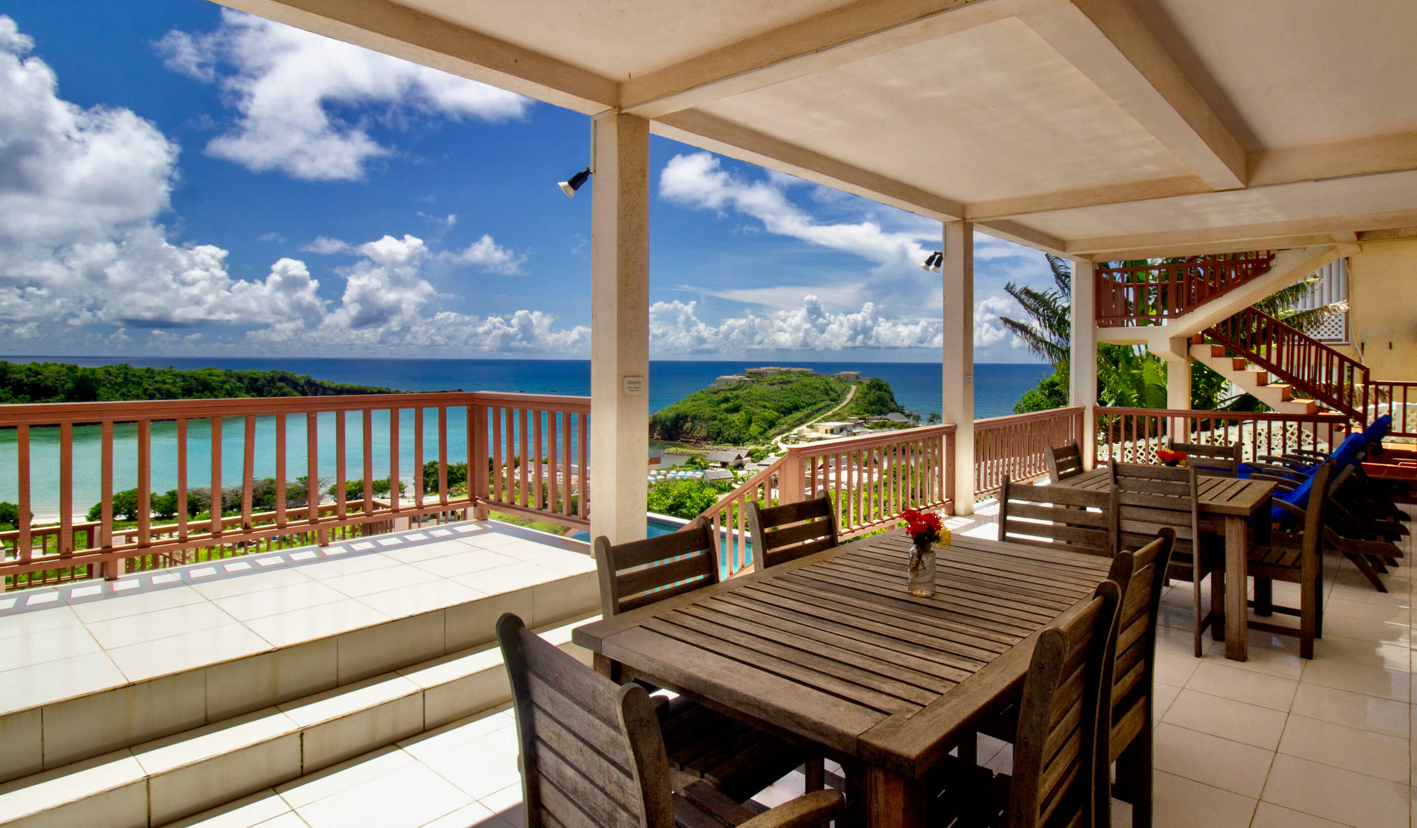 Terraces on all three levels of the house invite you to take in the spectacular panoramic views. La Sagesse Bay and the Atlantic Ocean are laid out before you and the ever changing light is mesmerizing.