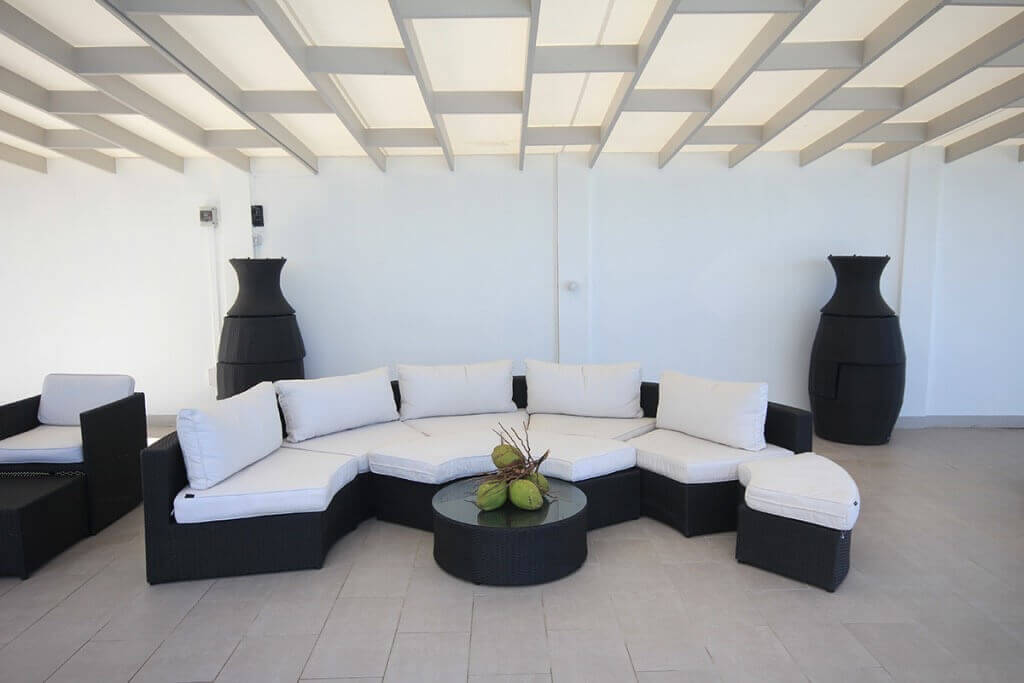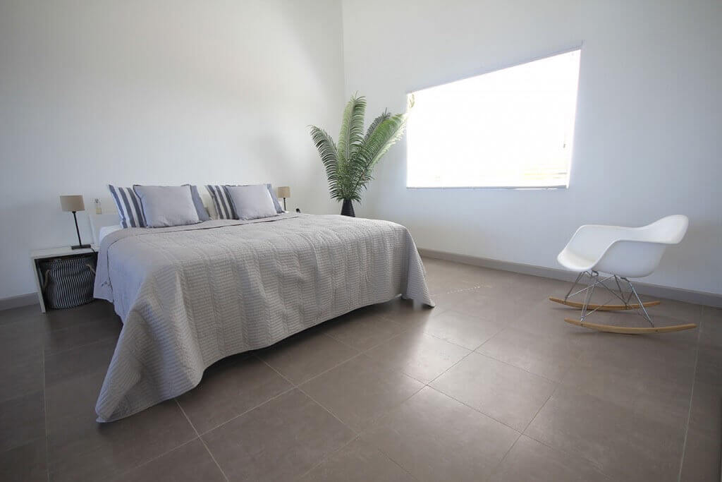 The bedrooms are pristine with masses of space, cool tiled floors, AC, blinds, chic minimal furniture and views over the bay.