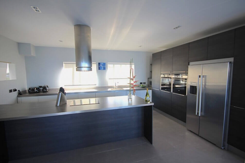 The kitchen is state of the art and contains stainless steel American style appliances, a microwave, integral oven, hob, acres of work surfaces and a central isle.