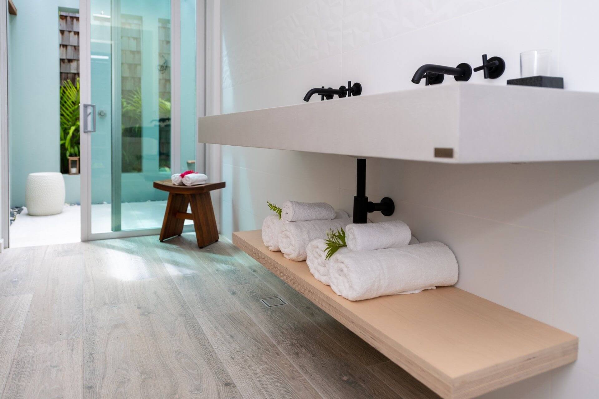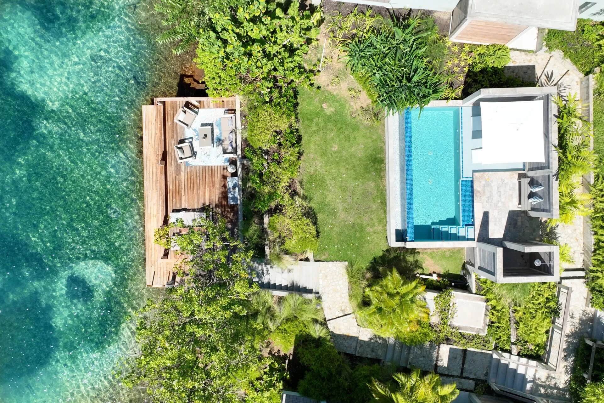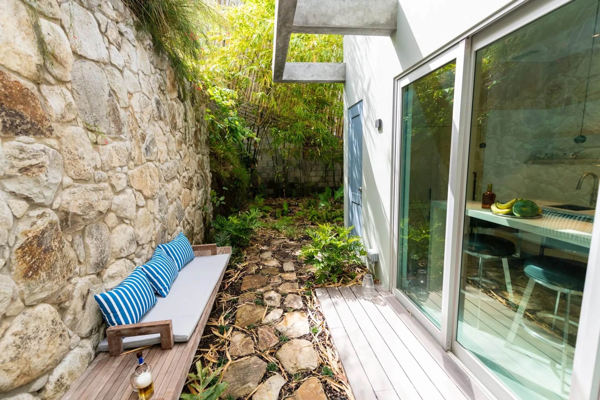 - The Boathouse Villa – King bed, open-air shower & tub, garden grill