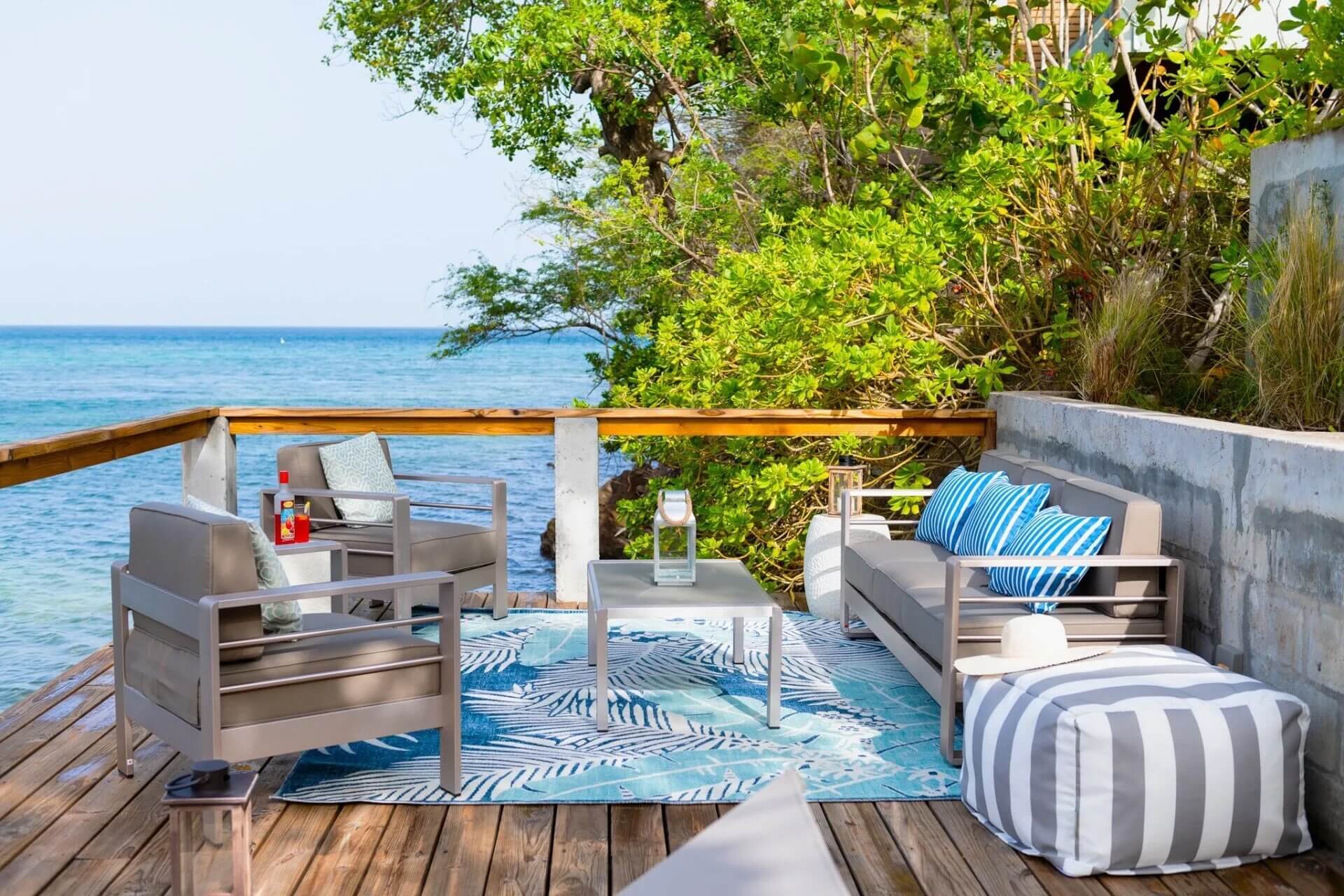 - Coral Reef Suite – Queen bed, seafront terrace