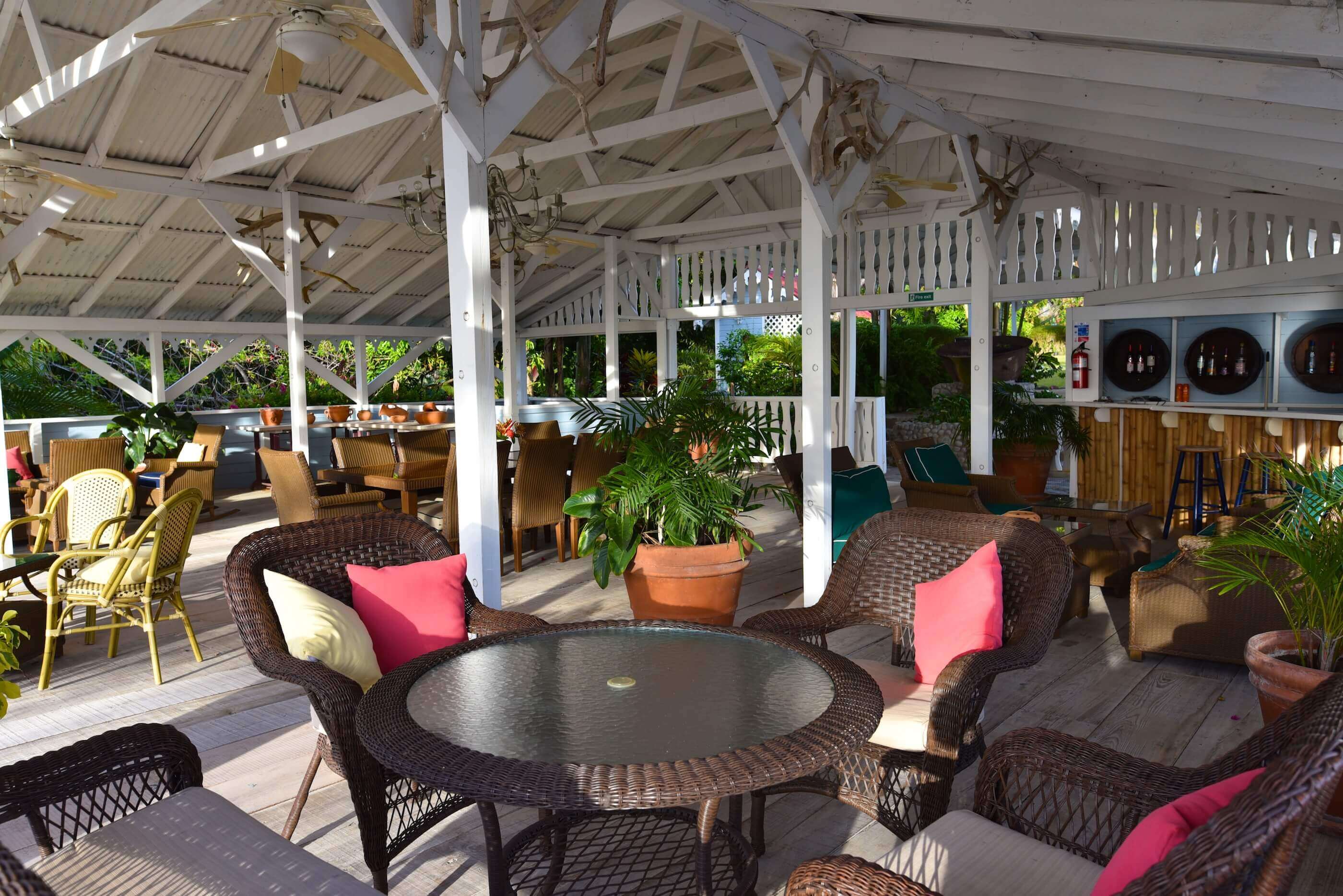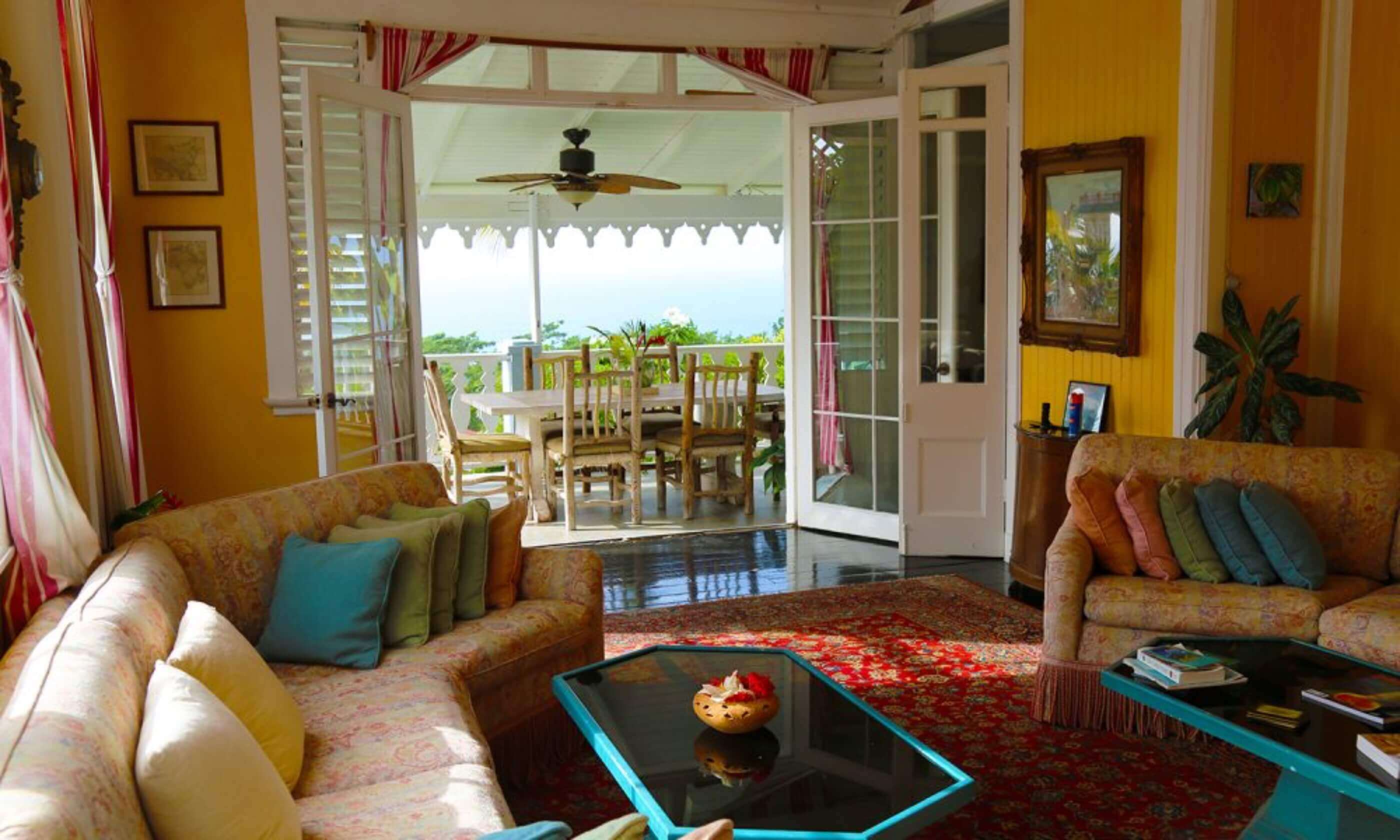 The most stunning feature of the Plantation House is the extensive, wrap around, covered living/dining verandah offering 180 degree views of the Caribbean Sea, just 100 metres (109 yards) away with the tropical gardens in the foreground.