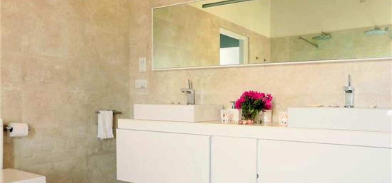 There are five comfortable bedrooms at Villa Stella - 3 of these are located on the upper level and 2 on the lower level opening out onto the Greenheart decking. The lower level has the luxury of a private lounge area and private kitchen. The 5 en suite bathrooms are all large and well appointed with lots of natural light, looking out onto the gardens and the Bay.