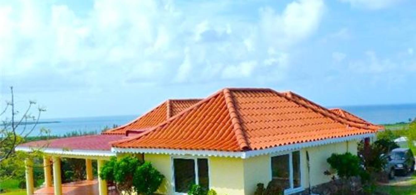 The beach is about a 5 minute walk away. It is not crowded. The beach has a very exclusive feel as it is also that used by the exclusive Sandals resort guests. Pinquin cottage is on a hilltop therefore the view is panoramic. It looks down on the Sandals resort and the neighboring area. There are not many houses nearby