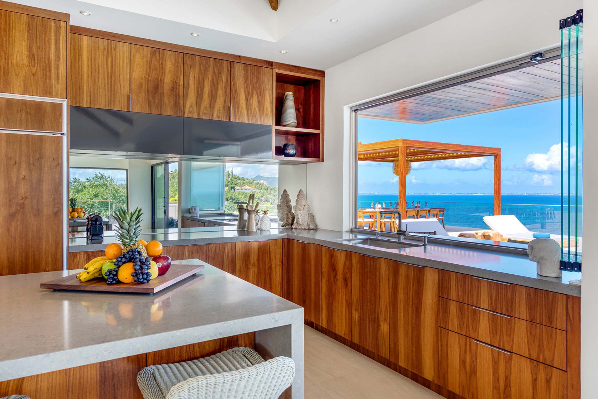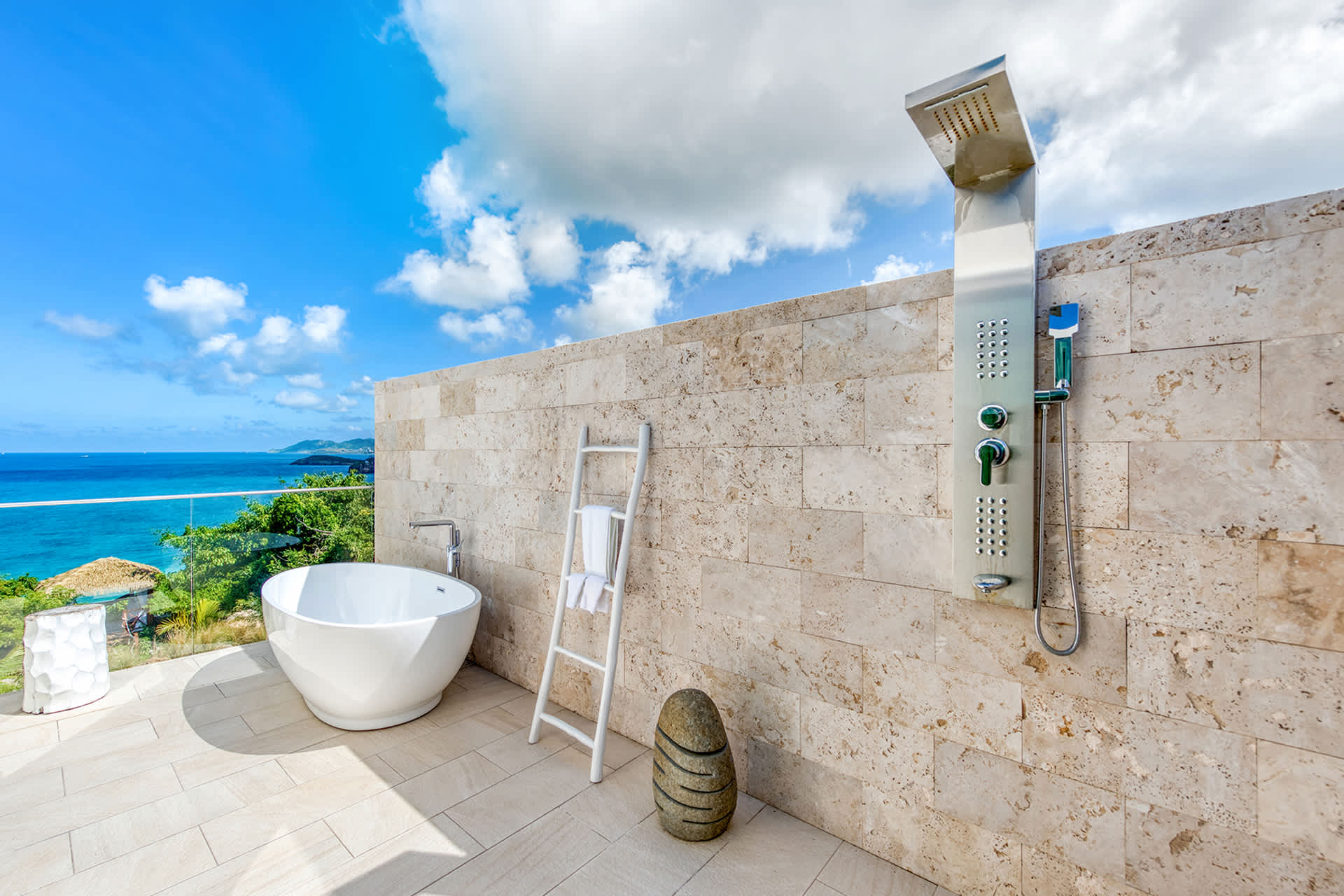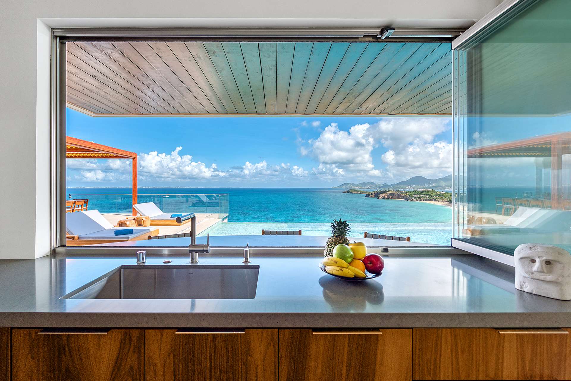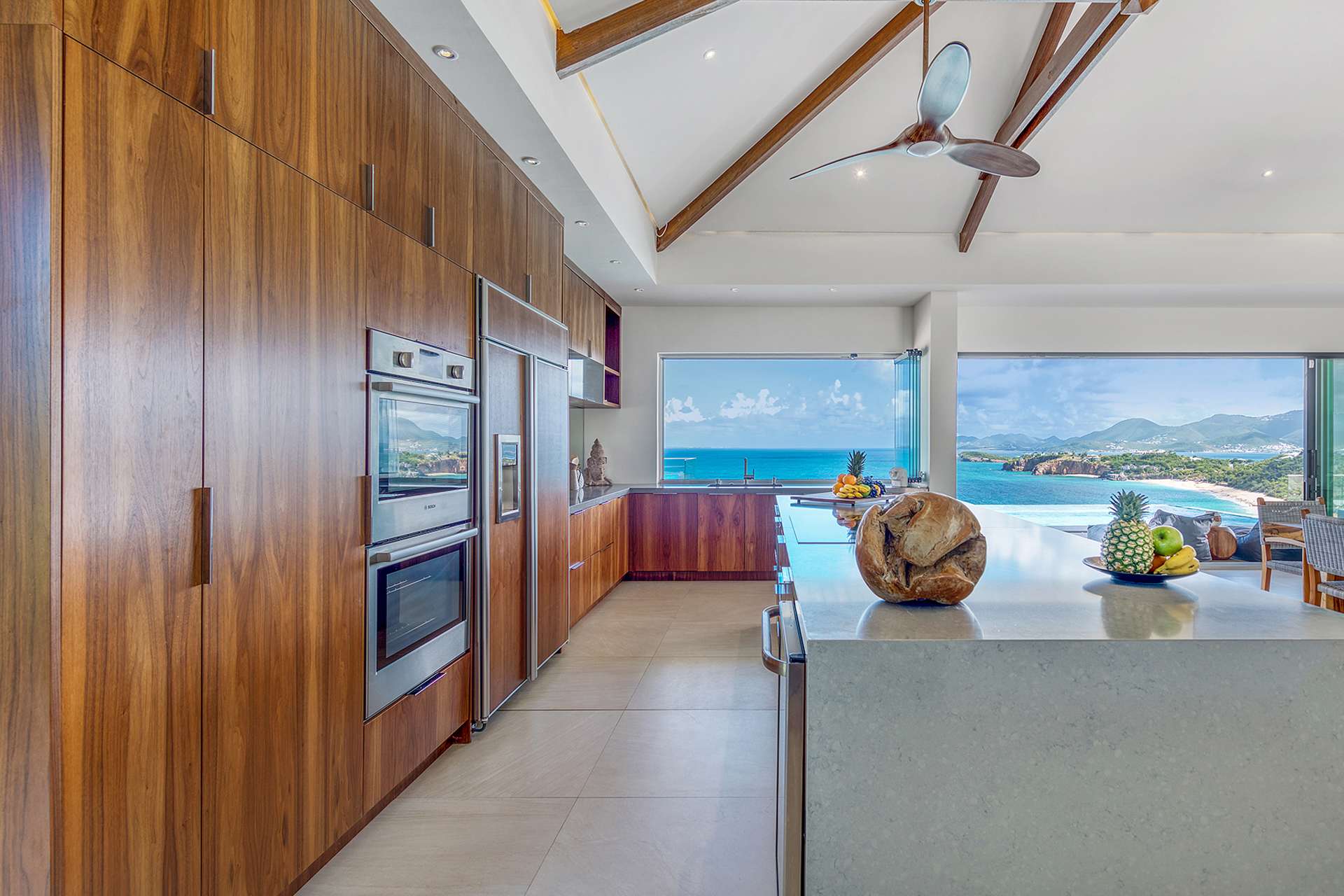 Villa Amandara is a modern-chic property with some of the best views on the island based in Terres Basses, St.Martin.Villa Amandara is one of the most stunning and desirable villas in St. Martin. This estate offers world-class views from all 5 bedrooms and its many communal spaces. You won’t need anything else once you see the villa's private Bali massage house with a carved stone Balinese tub, bar, and cinema with a window into the pool, as well as a regulation Petanque/Bocce ball court, a volleyball court with a basketball hoop, and a gym. This exceptional villa sits on 2.5 secluded acres. There is an incredible chef available for bookings, and six days a week of housekeeping and laundry are included with each booking. This estate was featured in a magazine article called, "10 Places to Stay Before You Die..” and Villa Amandara lives up to that reputation.Upon arrival, the gates open and reveal the tropical plants before greeting you to a spacious courtyard with a dazzling solid glass door entrance revealing breathtaking views. The exterior showcases an infinity pool that mimics the color of the ocean with its turquoise mosaic-lined details. The spacious terrace, with discrete and open spaces, extends the length of the villa. It is filled with private spots and gathering areas for lounging, sunning, and dining. The terrace is a perfect place to watch the ever-changing tropical sky; The true Caribbean dream. There is a little hanging bridge that leads you to the gazebo and is perfect for a massage. The Indonesian river pebbles define the spaces around them along with a beautiful teak pergola that establishes harmony in the terrace. For a quiet escape, a Thai pavilion awaits in the lower garden. The American-style interior opens to the modern and spacious living room with an airy feel lined with unique beamed ceilings. This room very quickly resembles a home all thanks to the wonderful wood details, exotic touches of teak and rattan furniture, and its neutral fabrics. The expansive great room seamlessly blends the lounging and dining areas with a beautiful modern kitchen in elegant woods, upscale appliances, and an unforgettable view.Four bedrooms, two masters, and two smaller rooms are all under one roof. Each room includes a brilliant view, internal access to the room, and serene white decor with gentle pops of color. The en-suite bathrooms exude a beautiful spa-style attitude. The two masters have fabulous outdoor showers and bathtubs open to the sky. The fifth bedroom is a huge apartment on the lower level with an interior and exterior entrance together with a kitchenette and a private terrace. The villa has a large game room on the lower level with a foosball and ping pong table for fun activities. In addition, there is a bar with a window view into the swimming pool.You are secluded, yet close to amenities with this prime spot. The fabulous restaurants and food purveyors in Porto Cupecoy are a few minutes' drive. You are 8 minutes to the French capital of Marigot, with its shops, restaurants, markets, and galleries, and 10 minutes to the airport. Grand Case and Philipsburg are 30 minutes away. The Location of the villa demonstrates a breathtaking view of the sapphire sea, the green mountains, and Baie Rouge Beach overlooking the edge of Grand Case. This makes the villa the perfect place to stay to gain an authentic experience of the friendly island.