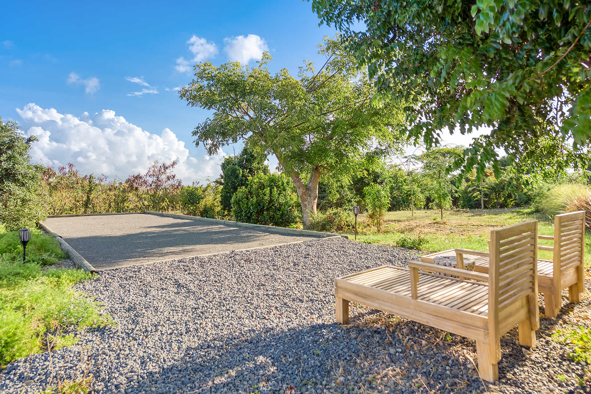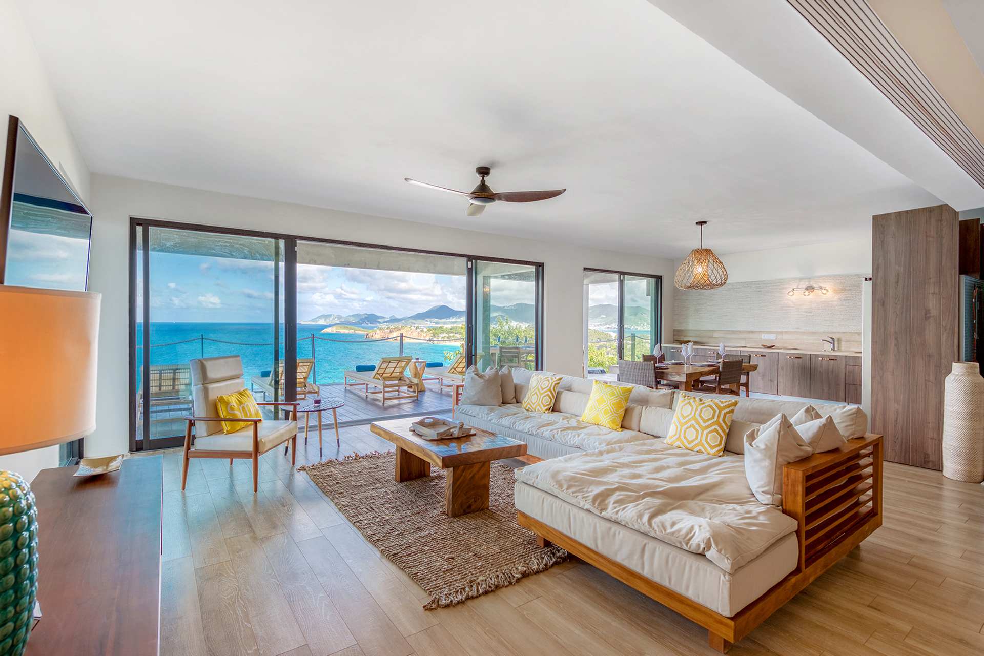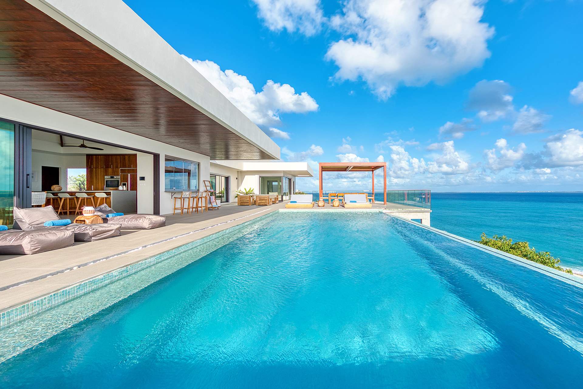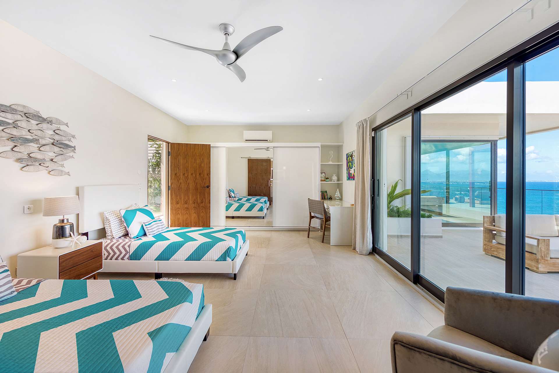 Villa Amandara is a modern-chic property with some of the best views on the island based in Terres Basses, St.Martin.Villa Amandara is one of the most stunning and desirable villas in St. Martin. This estate offers world-class views from all 5 bedrooms and its many communal spaces. You won’t need anything else once you see the villa's private Bali massage house with a carved stone Balinese tub, bar, and cinema with a window into the pool, as well as a regulation Petanque/Bocce ball court, a volleyball court with a basketball hoop, and a gym. This exceptional villa sits on 2.5 secluded acres. There is an incredible chef available for bookings, and six days a week of housekeeping and laundry are included with each booking. This estate was featured in a magazine article called, "10 Places to Stay Before You Die..” and Villa Amandara lives up to that reputation.Upon arrival, the gates open and reveal the tropical plants before greeting you to a spacious courtyard with a dazzling solid glass door entrance revealing breathtaking views. The exterior showcases an infinity pool that mimics the color of the ocean with its turquoise mosaic-lined details. The spacious terrace, with discrete and open spaces, extends the length of the villa. It is filled with private spots and gathering areas for lounging, sunning, and dining. The terrace is a perfect place to watch the ever-changing tropical sky; The true Caribbean dream. There is a little hanging bridge that leads you to the gazebo and is perfect for a massage. The Indonesian river pebbles define the spaces around them along with a beautiful teak pergola that establishes harmony in the terrace. For a quiet escape, a Thai pavilion awaits in the lower garden. The American-style interior opens to the modern and spacious living room with an airy feel lined with unique beamed ceilings. This room very quickly resembles a home all thanks to the wonderful wood details, exotic touches of teak and rattan furniture, and its neutral fabrics. The expansive great room seamlessly blends the lounging and dining areas with a beautiful modern kitchen in elegant woods, upscale appliances, and an unforgettable view.Four bedrooms, two masters, and two smaller rooms are all under one roof. Each room includes a brilliant view, internal access to the room, and serene white decor with gentle pops of color. The en-suite bathrooms exude a beautiful spa-style attitude. The two masters have fabulous outdoor showers and bathtubs open to the sky. The fifth bedroom is a huge apartment on the lower level with an interior and exterior entrance together with a kitchenette and a private terrace. The villa has a large game room on the lower level with a foosball and ping pong table for fun activities. In addition, there is a bar with a window view into the swimming pool.You are secluded, yet close to amenities with this prime spot. The fabulous restaurants and food purveyors in Porto Cupecoy are a few minutes' drive. You are 8 minutes to the French capital of Marigot, with its shops, restaurants, markets, and galleries, and 10 minutes to the airport. Grand Case and Philipsburg are 30 minutes away. The Location of the villa demonstrates a breathtaking view of the sapphire sea, the green mountains, and Baie Rouge Beach overlooking the edge of Grand Case. This makes the villa the perfect place to stay to gain an authentic experience of the friendly island.