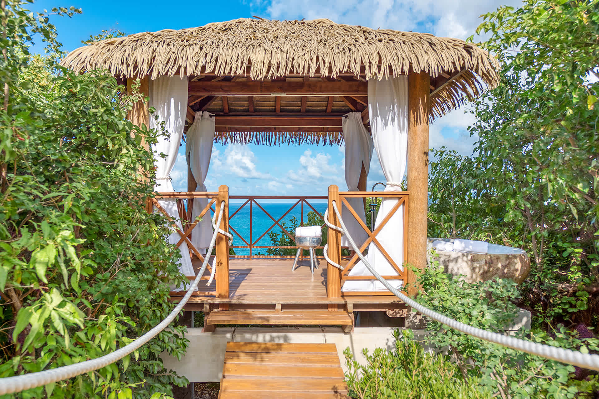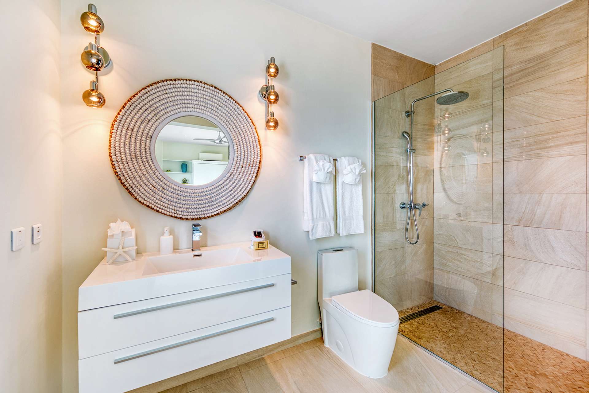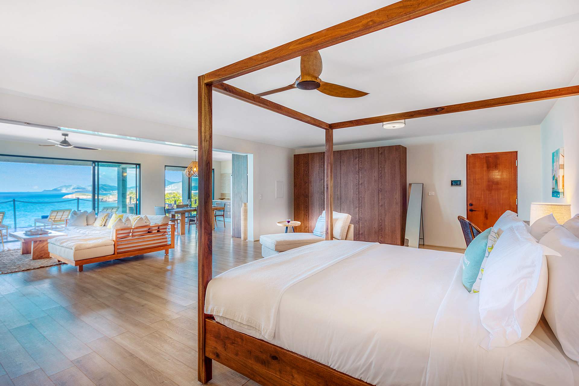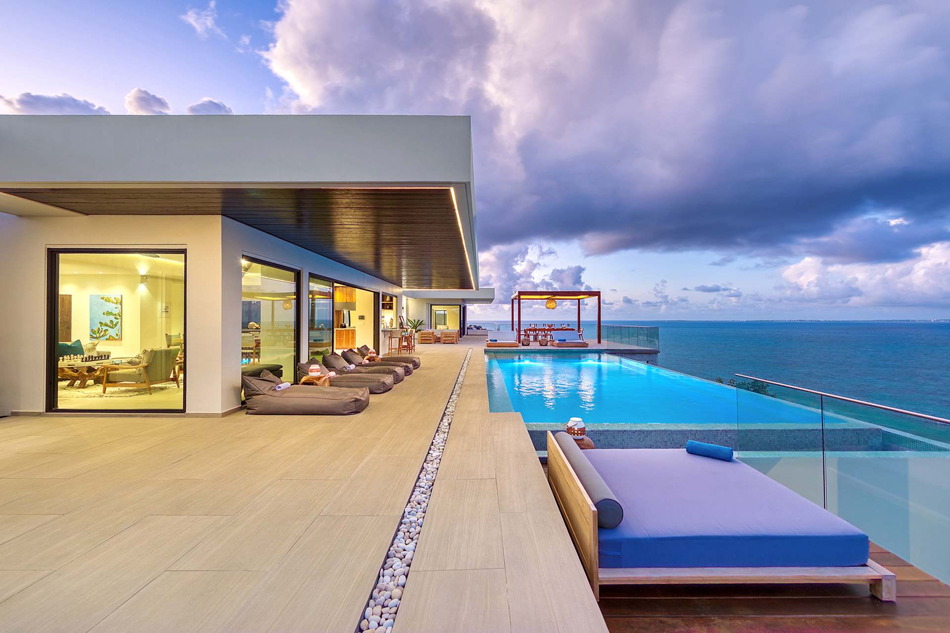 Villa Amandara is a modern-chic property with some of the best views on the island based in Terres Basses, St.Martin.Villa Amandara is one of the most stunning and desirable villas in St. Martin. This estate offers world-class views from all 5 bedrooms and its many communal spaces. You won’t need anything else once you see the villa's private Bali massage house with a carved stone Balinese tub, bar, and cinema with a window into the pool, as well as a regulation Petanque/Bocce ball court, a volleyball court with a basketball hoop, and a gym. This exceptional villa sits on 2.5 secluded acres. There is an incredible chef available for bookings, and six days a week of housekeeping and laundry are included with each booking. This estate was featured in a magazine article called, "10 Places to Stay Before You Die..” and Villa Amandara lives up to that reputation.Upon arrival, the gates open and reveal the tropical plants before greeting you to a spacious courtyard with a dazzling solid glass door entrance revealing breathtaking views. The exterior showcases an infinity pool that mimics the color of the ocean with its turquoise mosaic-lined details. The spacious terrace, with discrete and open spaces, extends the length of the villa. It is filled with private spots and gathering areas for lounging, sunning, and dining. The terrace is a perfect place to watch the ever-changing tropical sky; The true Caribbean dream. There is a little hanging bridge that leads you to the gazebo and is perfect for a massage. The Indonesian river pebbles define the spaces around them along with a beautiful teak pergola that establishes harmony in the terrace. For a quiet escape, a Thai pavilion awaits in the lower garden. The American-style interior opens to the modern and spacious living room with an airy feel lined with unique beamed ceilings. This room very quickly resembles a home all thanks to the wonderful wood details, exotic touches of teak and rattan furniture, and its neutral fabrics. The expansive great room seamlessly blends the lounging and dining areas with a beautiful modern kitchen in elegant woods, upscale appliances, and an unforgettable view.Four bedrooms, two masters, and two smaller rooms are all under one roof. Each room includes a brilliant view, internal access to the room, and serene white decor with gentle pops of color. The en-suite bathrooms exude a beautiful spa-style attitude. The two masters have fabulous outdoor showers and bathtubs open to the sky. The fifth bedroom is a huge apartment on the lower level with an interior and exterior entrance together with a kitchenette and a private terrace. The villa has a large game room on the lower level with a foosball and ping pong table for fun activities. In addition, there is a bar with a window view into the swimming pool.You are secluded, yet close to amenities with this prime spot. The fabulous restaurants and food purveyors in Porto Cupecoy are a few minutes' drive. You are 8 minutes to the French capital of Marigot, with its shops, restaurants, markets, and galleries, and 10 minutes to the airport. Grand Case and Philipsburg are 30 minutes away. The Location of the villa demonstrates a breathtaking view of the sapphire sea, the green mountains, and Baie Rouge Beach overlooking the edge of Grand Case. This makes the villa the perfect place to stay to gain an authentic experience of the friendly island.