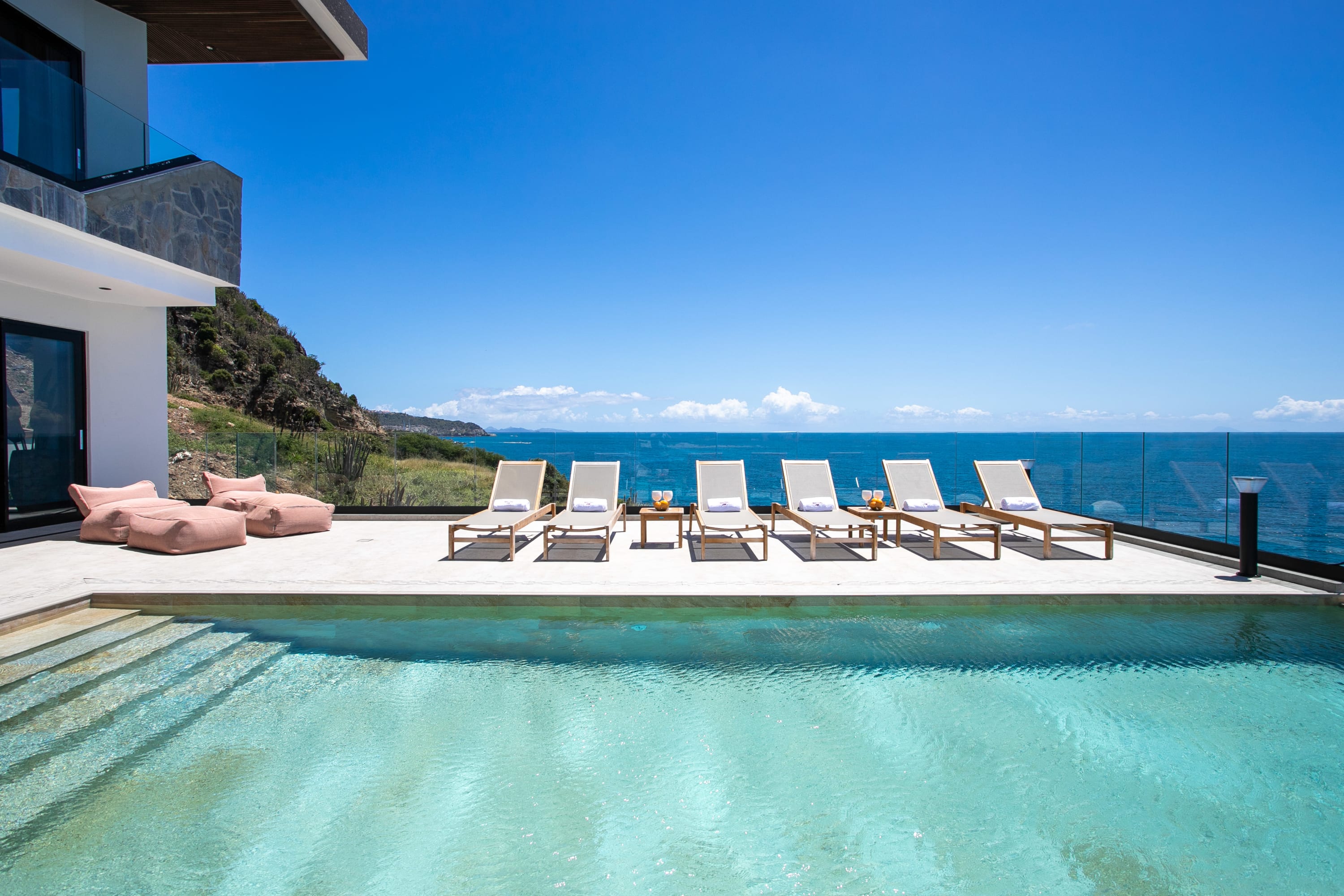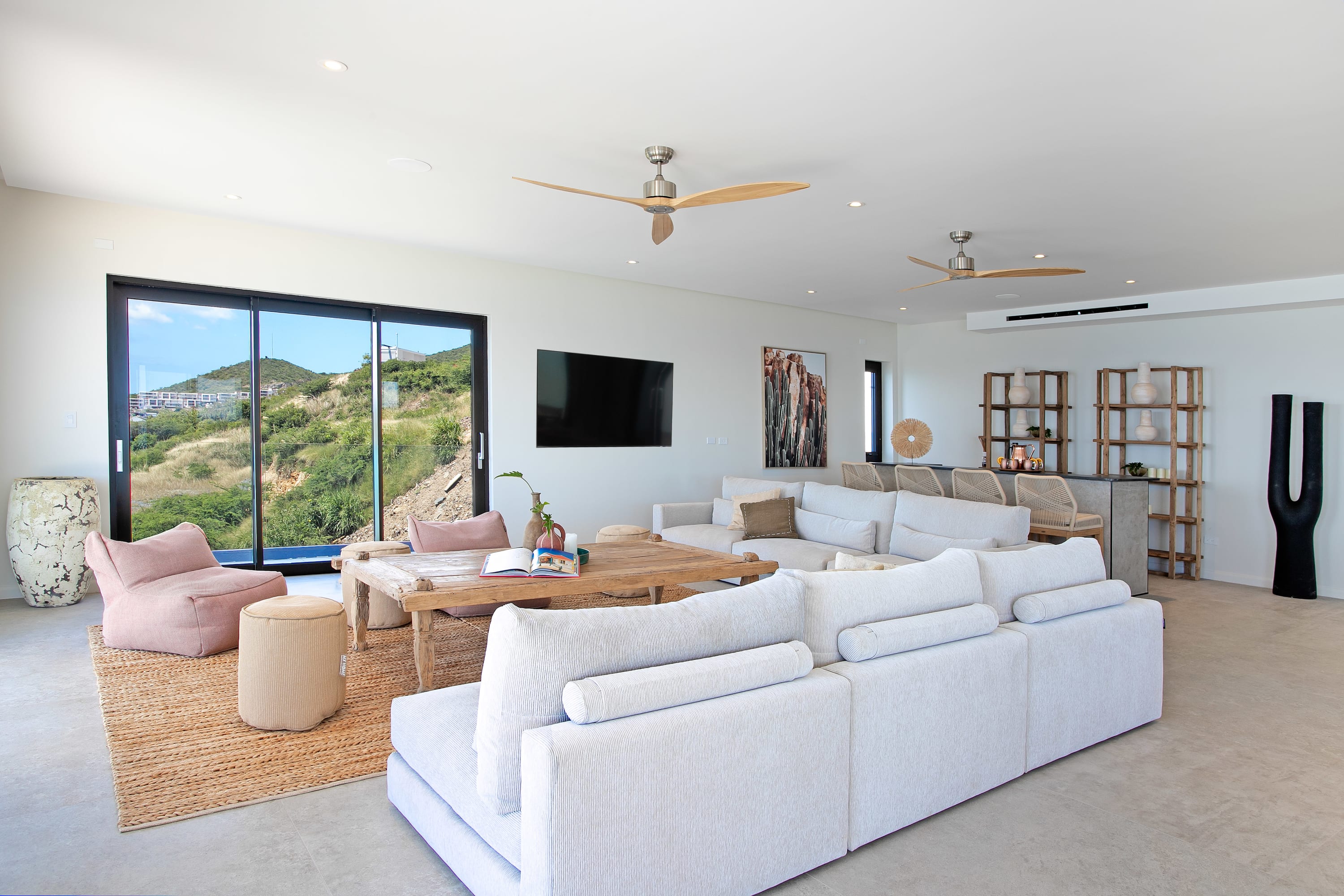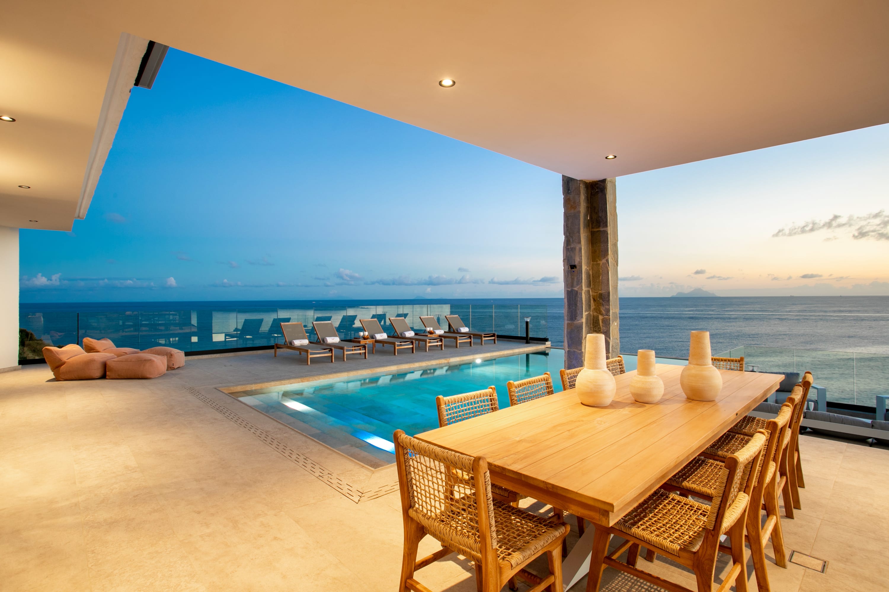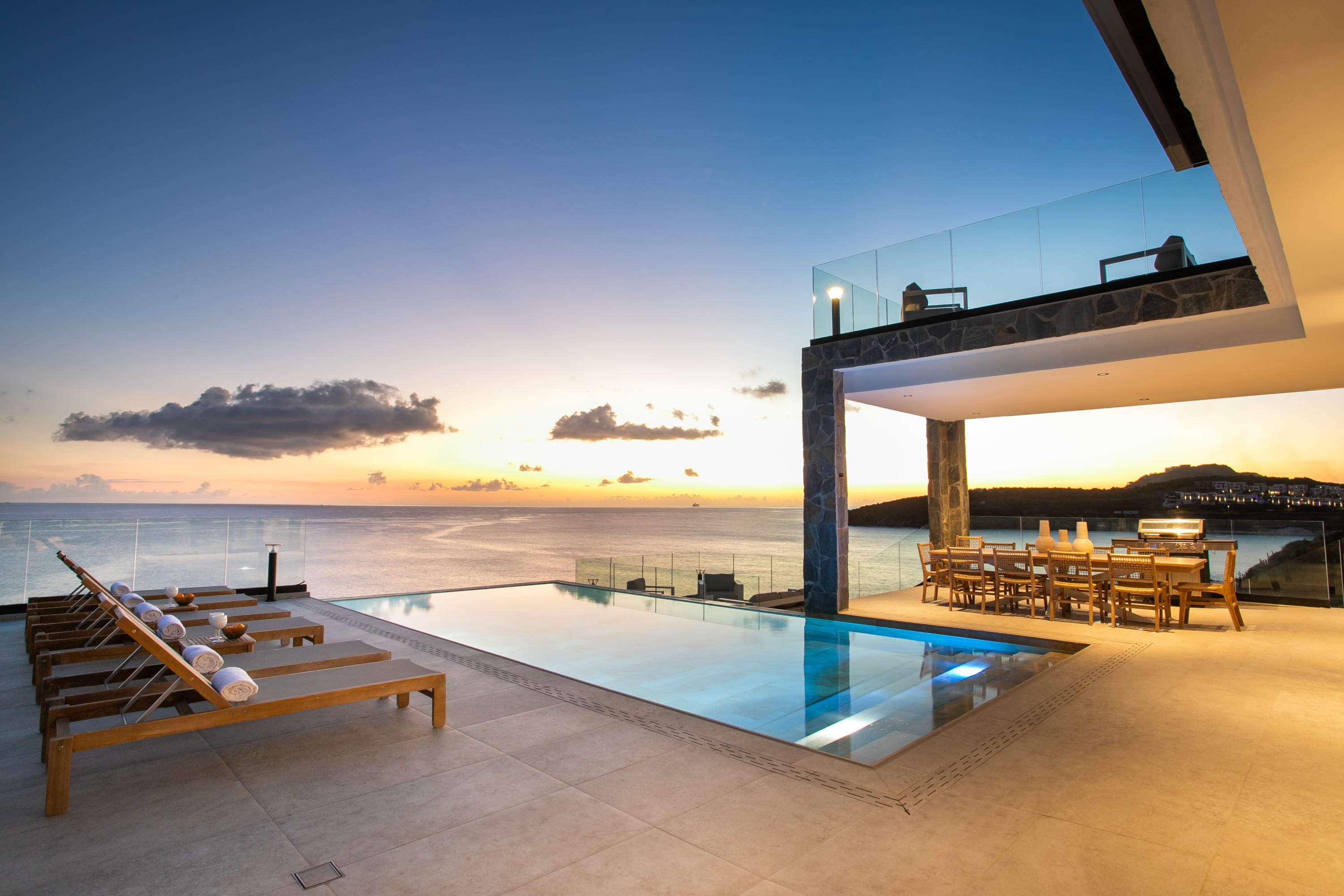 Villa Aqua Vista is a newly built luxurious oasis in Indigo Bay, St. Maarten.The newly constructed Villa Aqua Vista stands as a contemporary gem, effortlessly balancing contemporary elegance with island luxury. This stunning 6-bedroom villa is located in the peaceful Indigo Bay of Sint Maarten, offering an unforgettable Caribbean getaway just steps away from its sister villa, Villa Aqua Dream.Villa Aqua Vista's enchanting sleek lines and polished architecture, leaving guests with immediate amazement. Villa Aqua Vista compliments the minimalist design and modernism of its sister villa, Villa Aqua Dream, creating a harmonious transition between these two villa rentals.Walking through the entrance, guests will find themselves welcomed by a sense of openness and splendor. Villa Aqua Vista's open-concept design offers guests panoramic 270° views of the expansive indigo Caribbean waters through large windows. Vogue yet refined interior decor, featuring neutral tones and top-of-the-line furnishings, complement Villa Aqua Vista's modern aesthetic.With six luxurious bedrooms, Villa Aqua Vista offers immaculate design to provide guests with unparalleled comfort and relaxation. Villa Aqua Vista's master bedroom oozes beauty with an en-suite bathroom and tremendous sea views. The villa's other 5 bedrooms are equally inviting, offering top notch furnishings, en-suite bathrooms, closet space, and direct access to the property's outdoor spaces.Whether you're planning a romantic vacation, a family get together, or a trip for friends, Villa Aqua Vista ensures guests have an unforgettable St. Maarten experience. Villa Aqua Vista's contemporary, sleek design effortlessly amazes guests with the natural beauty of Indigo Bay and views of Saba, offering the ultimate setting for creating long lasting memories.