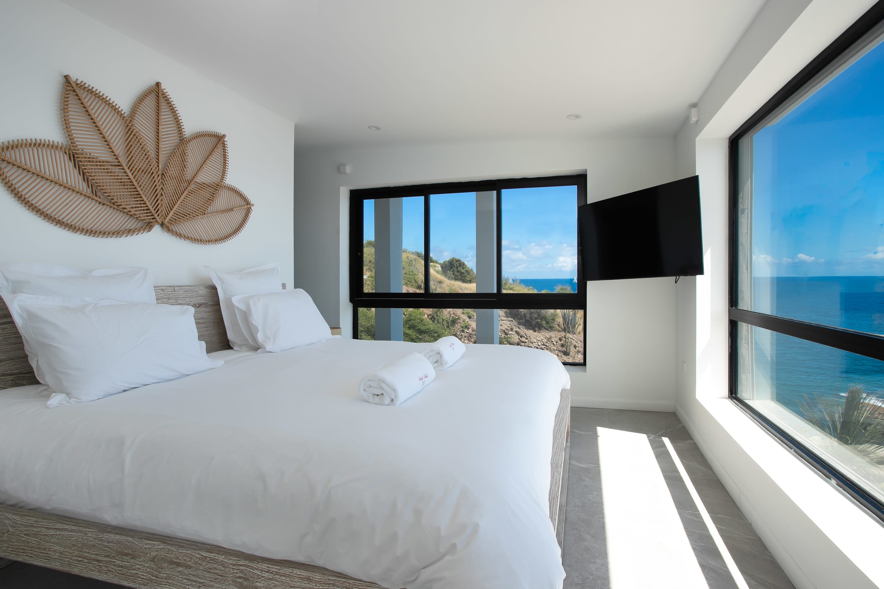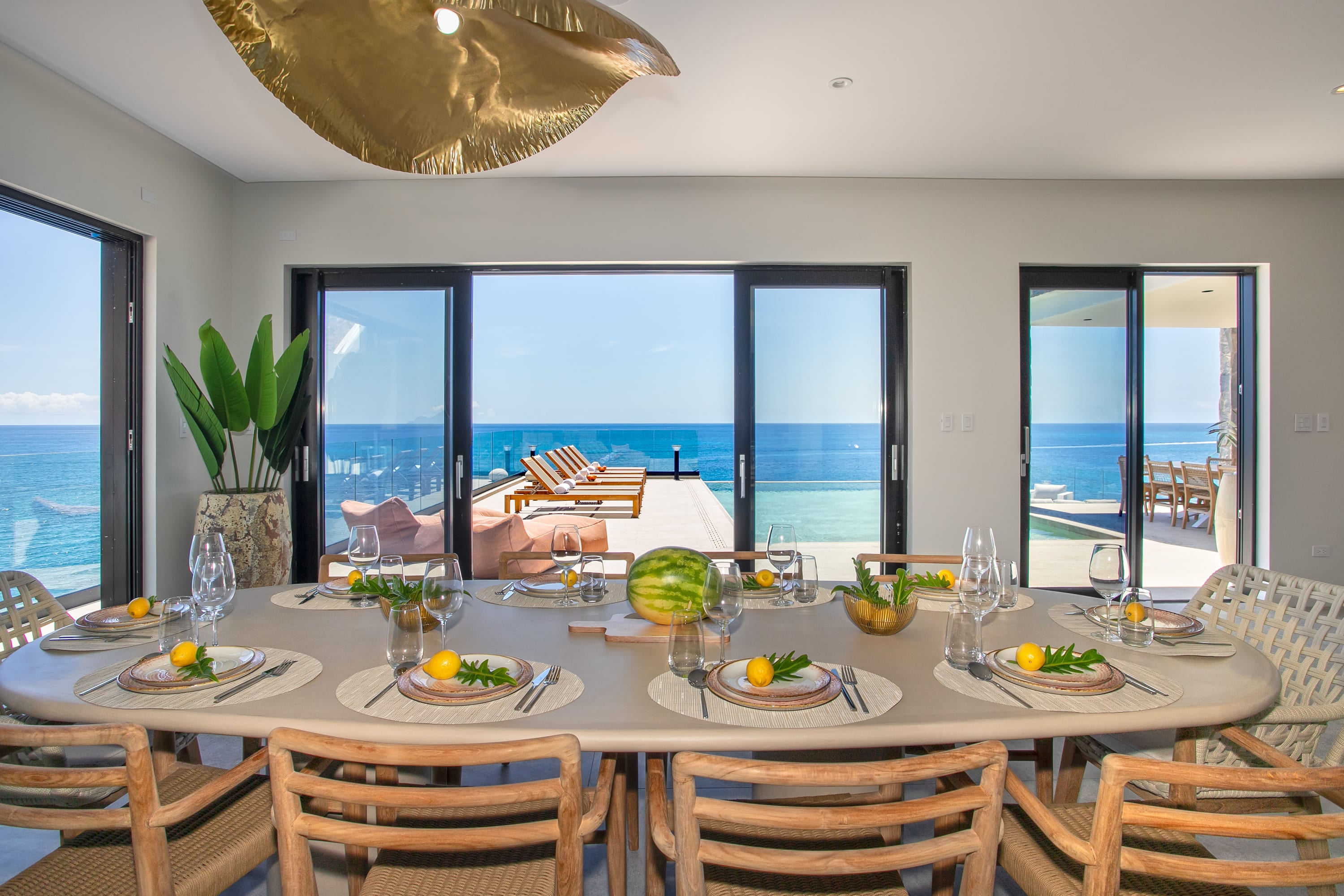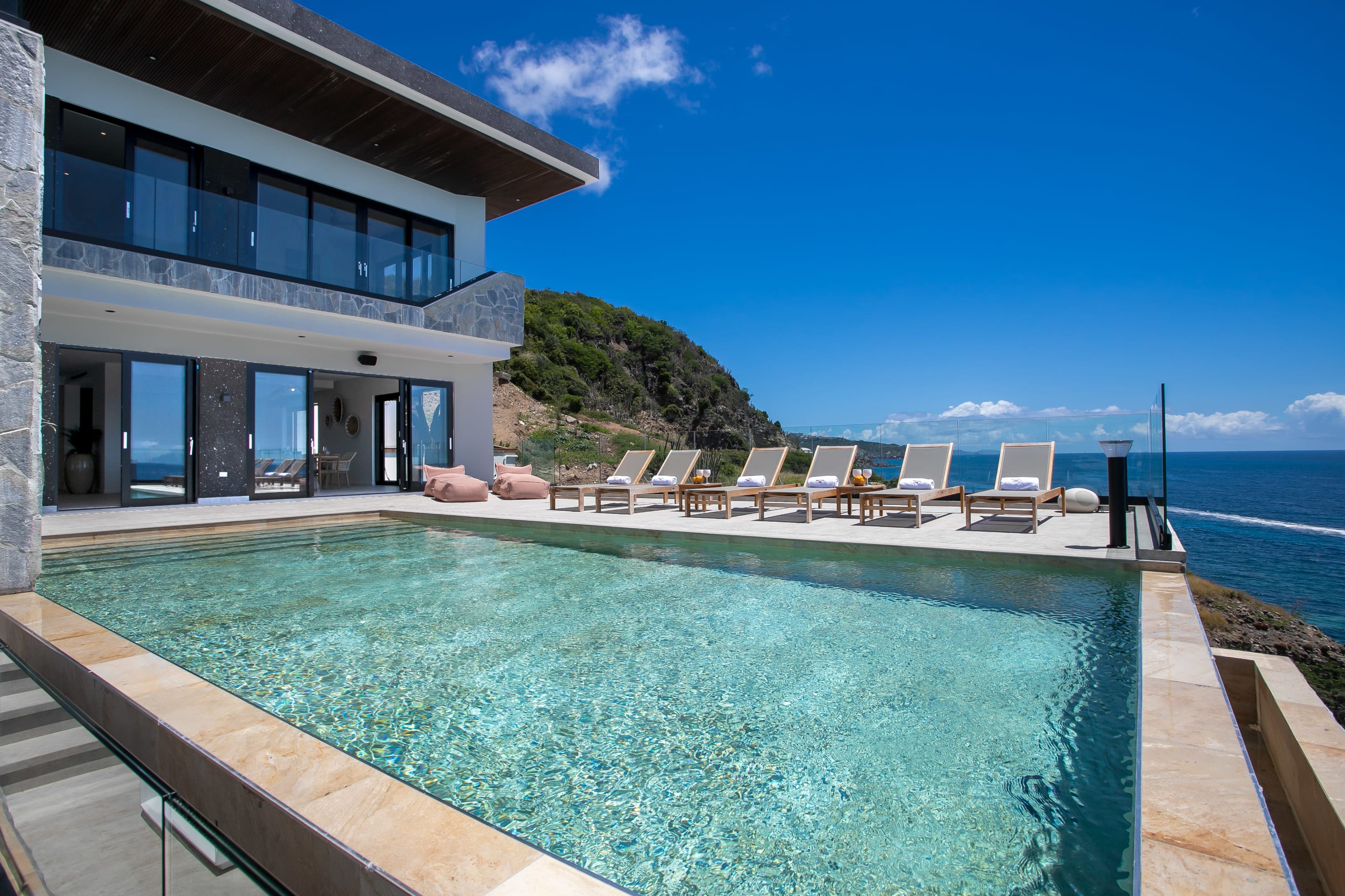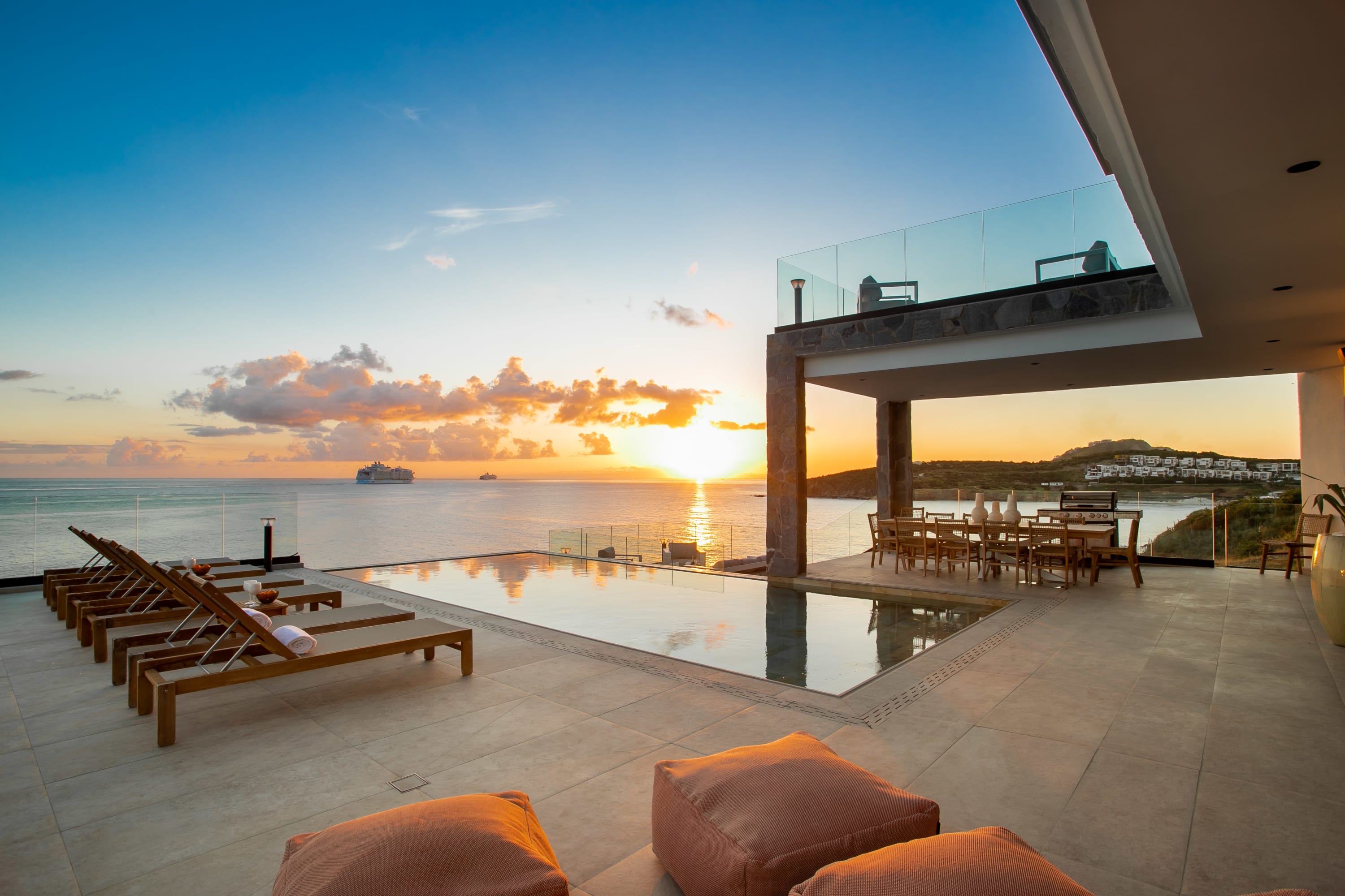 Villa Aqua Vista is a newly built luxurious oasis in Indigo Bay, St. Maarten.The newly constructed Villa Aqua Vista stands as a contemporary gem, effortlessly balancing contemporary elegance with island luxury. This stunning 6-bedroom villa is located in the peaceful Indigo Bay of Sint Maarten, offering an unforgettable Caribbean getaway just steps away from its sister villa, Villa Aqua Dream.Villa Aqua Vista's enchanting sleek lines and polished architecture, leaving guests with immediate amazement. Villa Aqua Vista compliments the minimalist design and modernism of its sister villa, Villa Aqua Dream, creating a harmonious transition between these two villa rentals.Walking through the entrance, guests will find themselves welcomed by a sense of openness and splendor. Villa Aqua Vista's open-concept design offers guests panoramic 270° views of the expansive indigo Caribbean waters through large windows. Vogue yet refined interior decor, featuring neutral tones and top-of-the-line furnishings, complement Villa Aqua Vista's modern aesthetic.With six luxurious bedrooms, Villa Aqua Vista offers immaculate design to provide guests with unparalleled comfort and relaxation. Villa Aqua Vista's master bedroom oozes beauty with an en-suite bathroom and tremendous sea views. The villa's other 5 bedrooms are equally inviting, offering top notch furnishings, en-suite bathrooms, closet space, and direct access to the property's outdoor spaces.Whether you're planning a romantic vacation, a family get together, or a trip for friends, Villa Aqua Vista ensures guests have an unforgettable St. Maarten experience. Villa Aqua Vista's contemporary, sleek design effortlessly amazes guests with the natural beauty of Indigo Bay and views of Saba, offering the ultimate setting for creating long lasting memories.