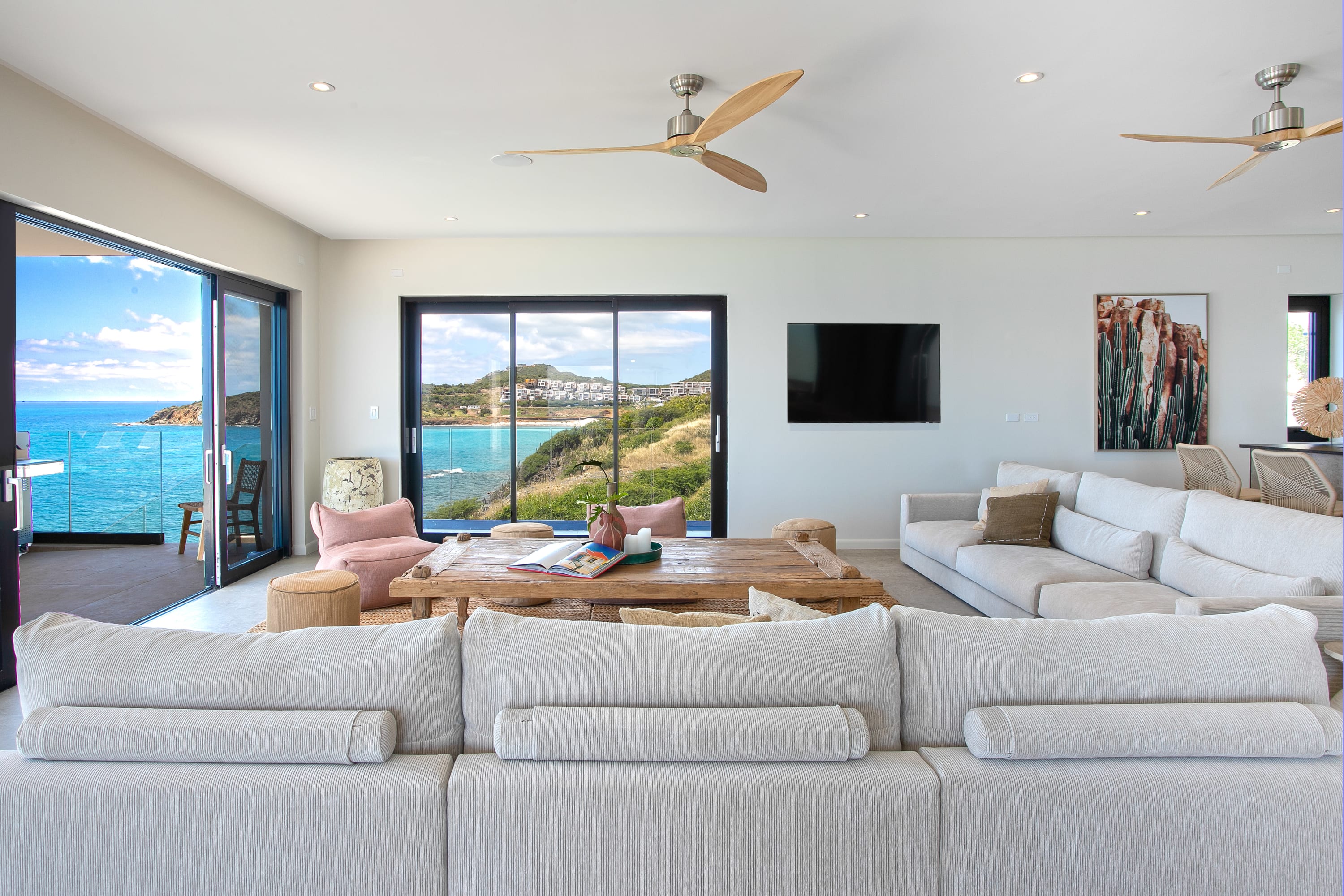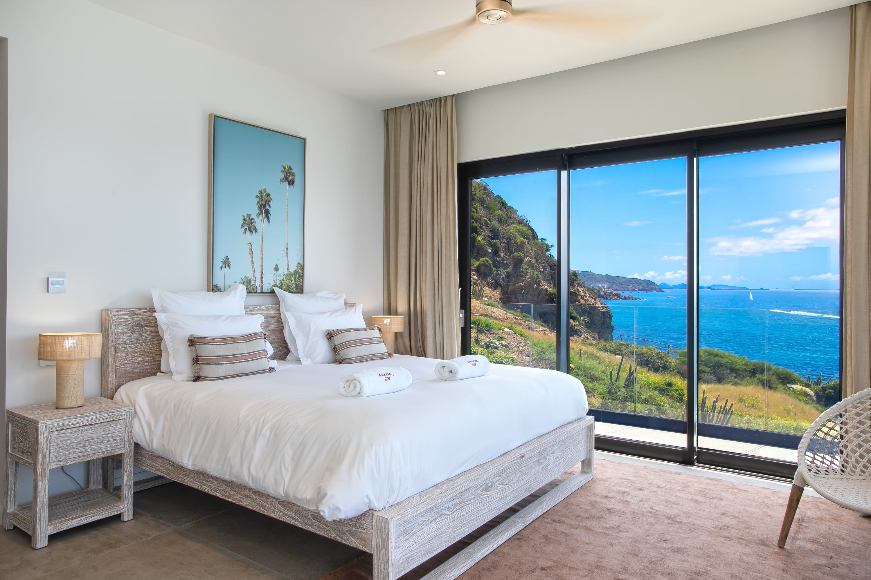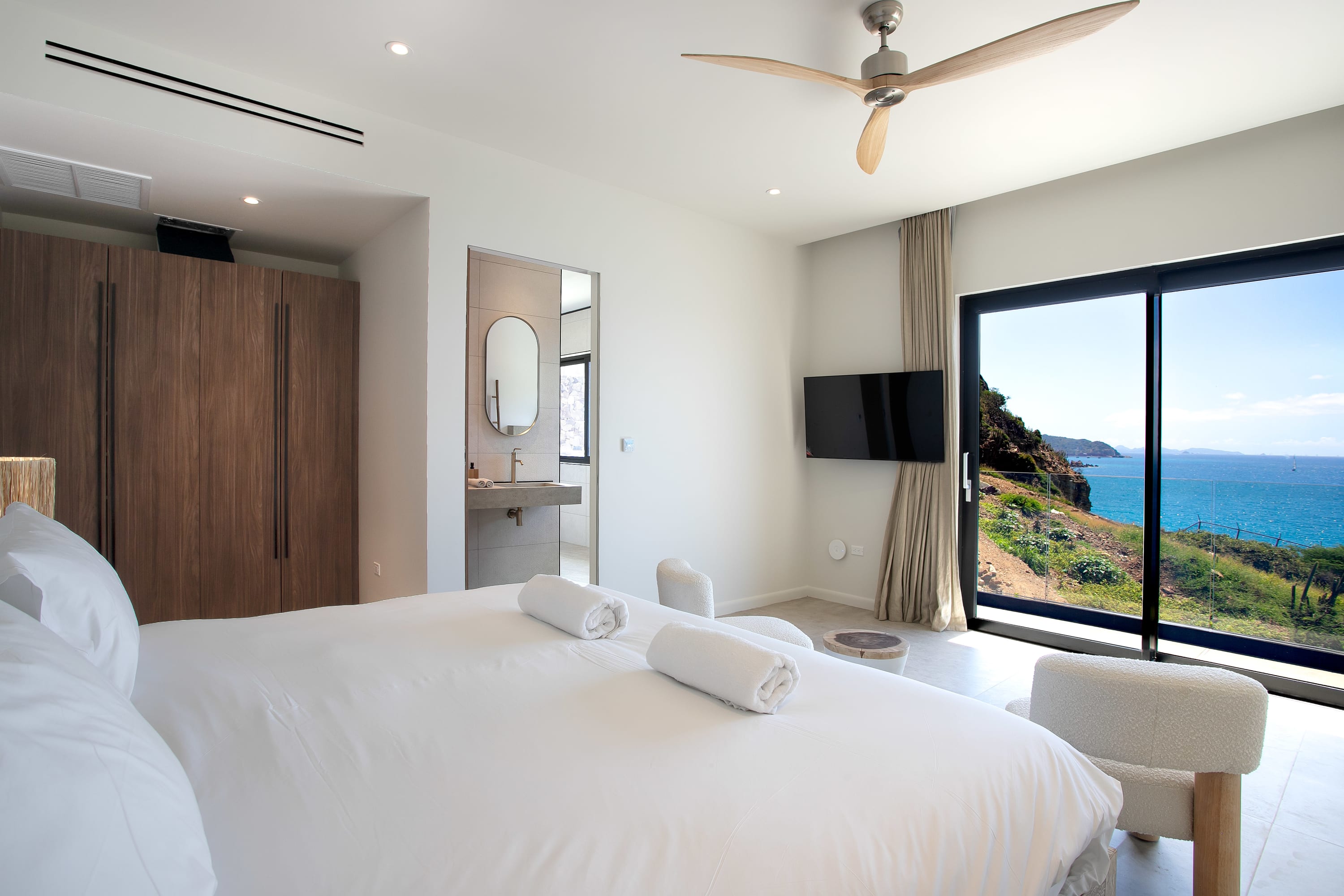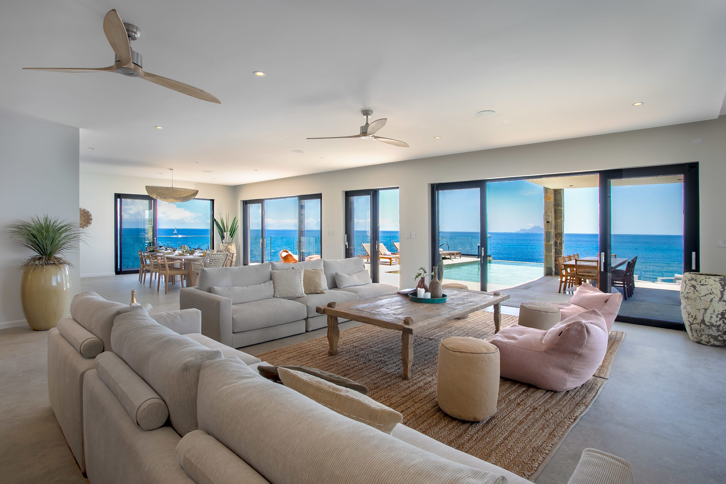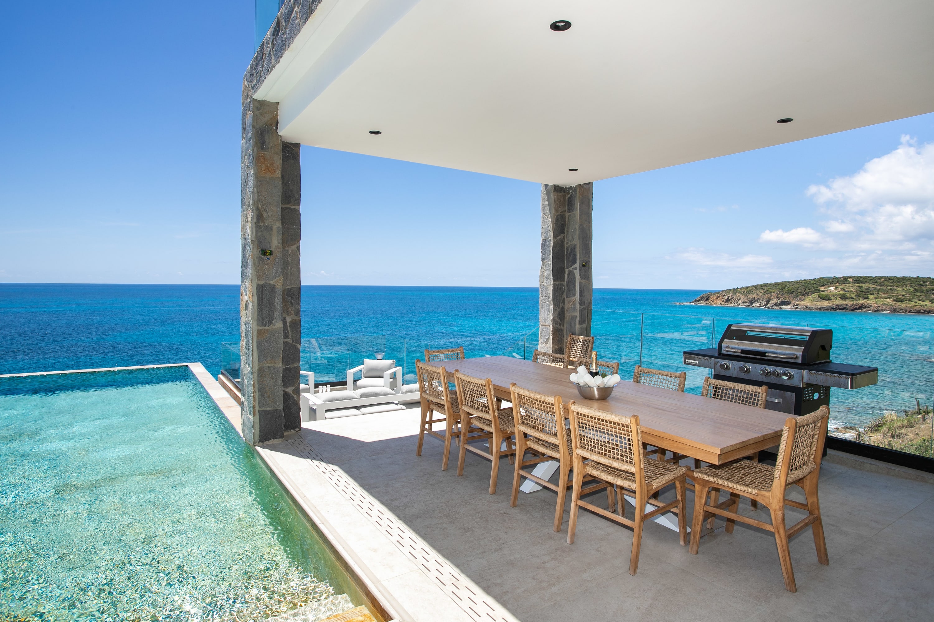 Villa Aqua Vista is a newly built luxurious oasis in Indigo Bay, St. Maarten.The newly constructed Villa Aqua Vista stands as a contemporary gem, effortlessly balancing contemporary elegance with island luxury. This stunning 6-bedroom villa is located in the peaceful Indigo Bay of Sint Maarten, offering an unforgettable Caribbean getaway just steps away from its sister villa, Villa Aqua Dream.Villa Aqua Vista's enchanting sleek lines and polished architecture, leaving guests with immediate amazement. Villa Aqua Vista compliments the minimalist design and modernism of its sister villa, Villa Aqua Dream, creating a harmonious transition between these two villa rentals.Walking through the entrance, guests will find themselves welcomed by a sense of openness and splendor. Villa Aqua Vista's open-concept design offers guests panoramic 270° views of the expansive indigo Caribbean waters through large windows. Vogue yet refined interior decor, featuring neutral tones and top-of-the-line furnishings, complement Villa Aqua Vista's modern aesthetic.With six luxurious bedrooms, Villa Aqua Vista offers immaculate design to provide guests with unparalleled comfort and relaxation. Villa Aqua Vista's master bedroom oozes beauty with an en-suite bathroom and tremendous sea views. The villa's other 5 bedrooms are equally inviting, offering top notch furnishings, en-suite bathrooms, closet space, and direct access to the property's outdoor spaces.Whether you're planning a romantic vacation, a family get together, or a trip for friends, Villa Aqua Vista ensures guests have an unforgettable St. Maarten experience. Villa Aqua Vista's contemporary, sleek design effortlessly amazes guests with the natural beauty of Indigo Bay and views of Saba, offering the ultimate setting for creating long lasting memories.