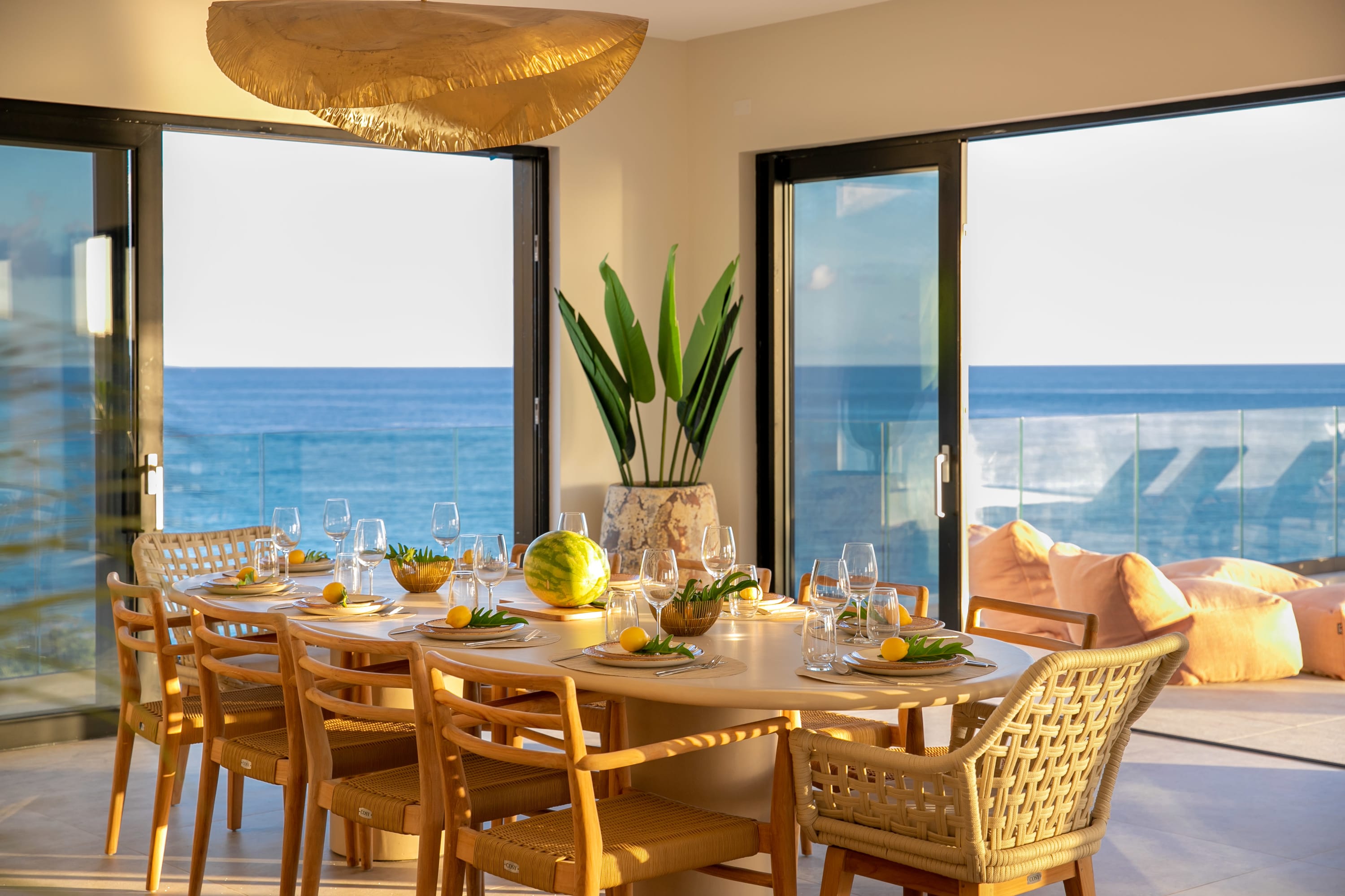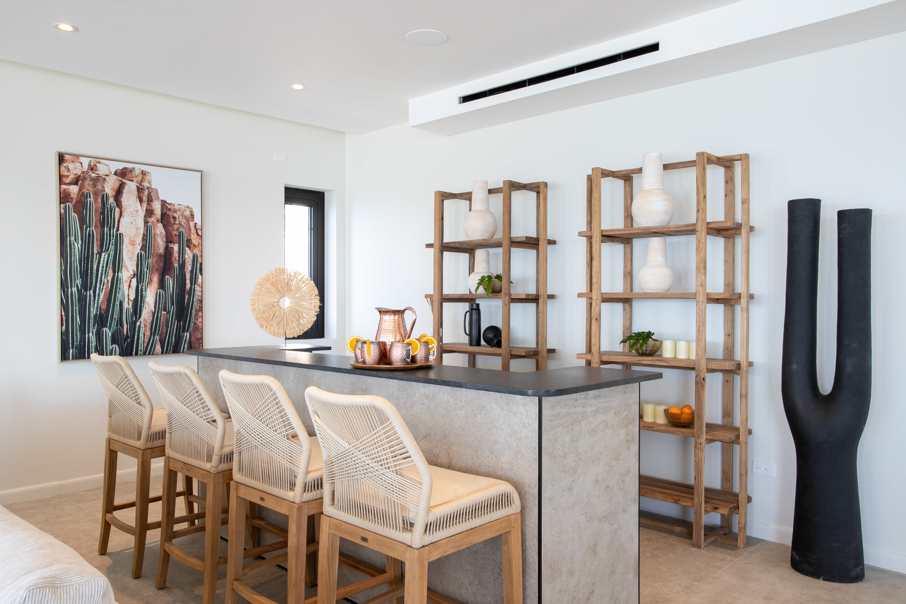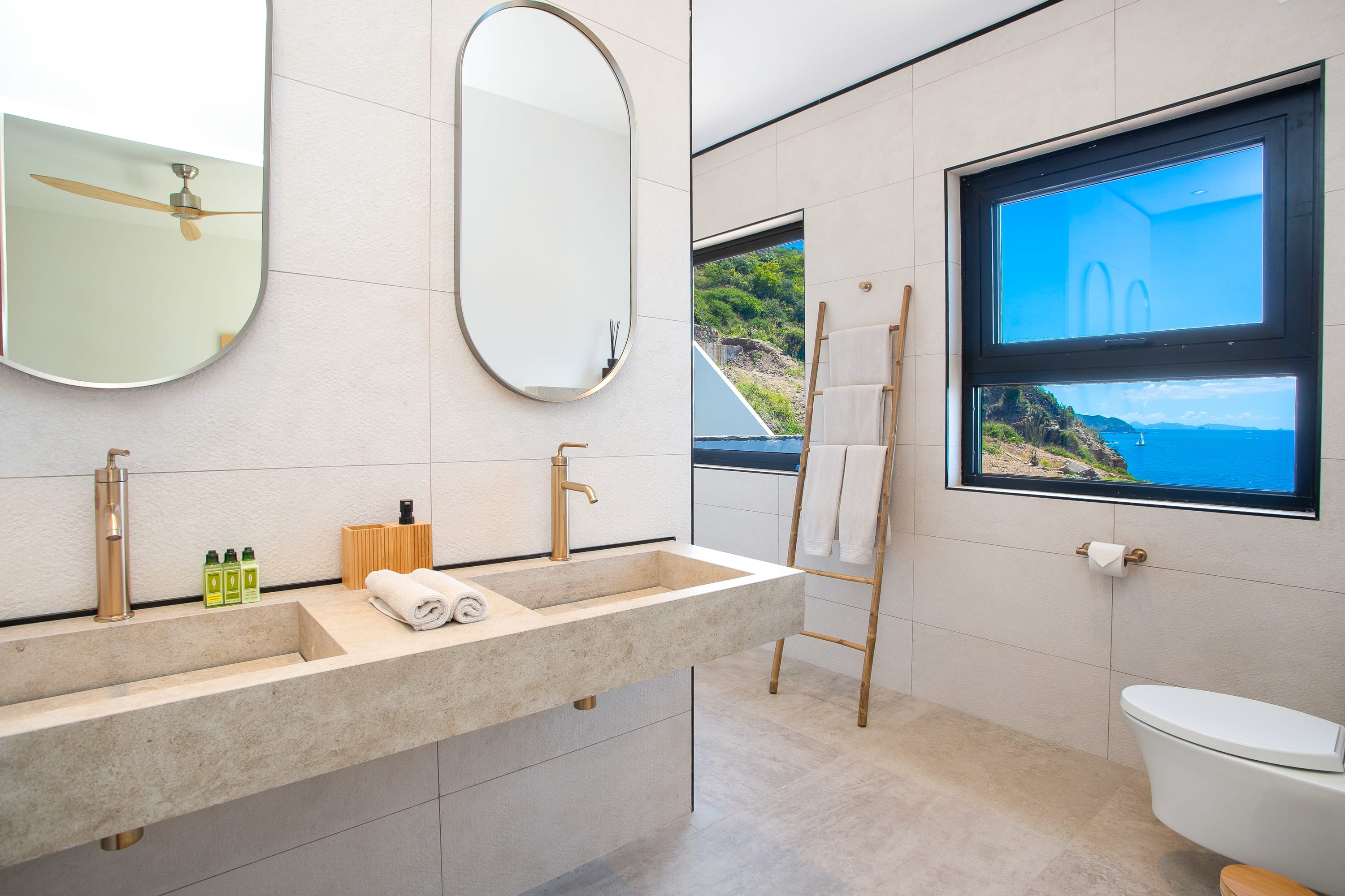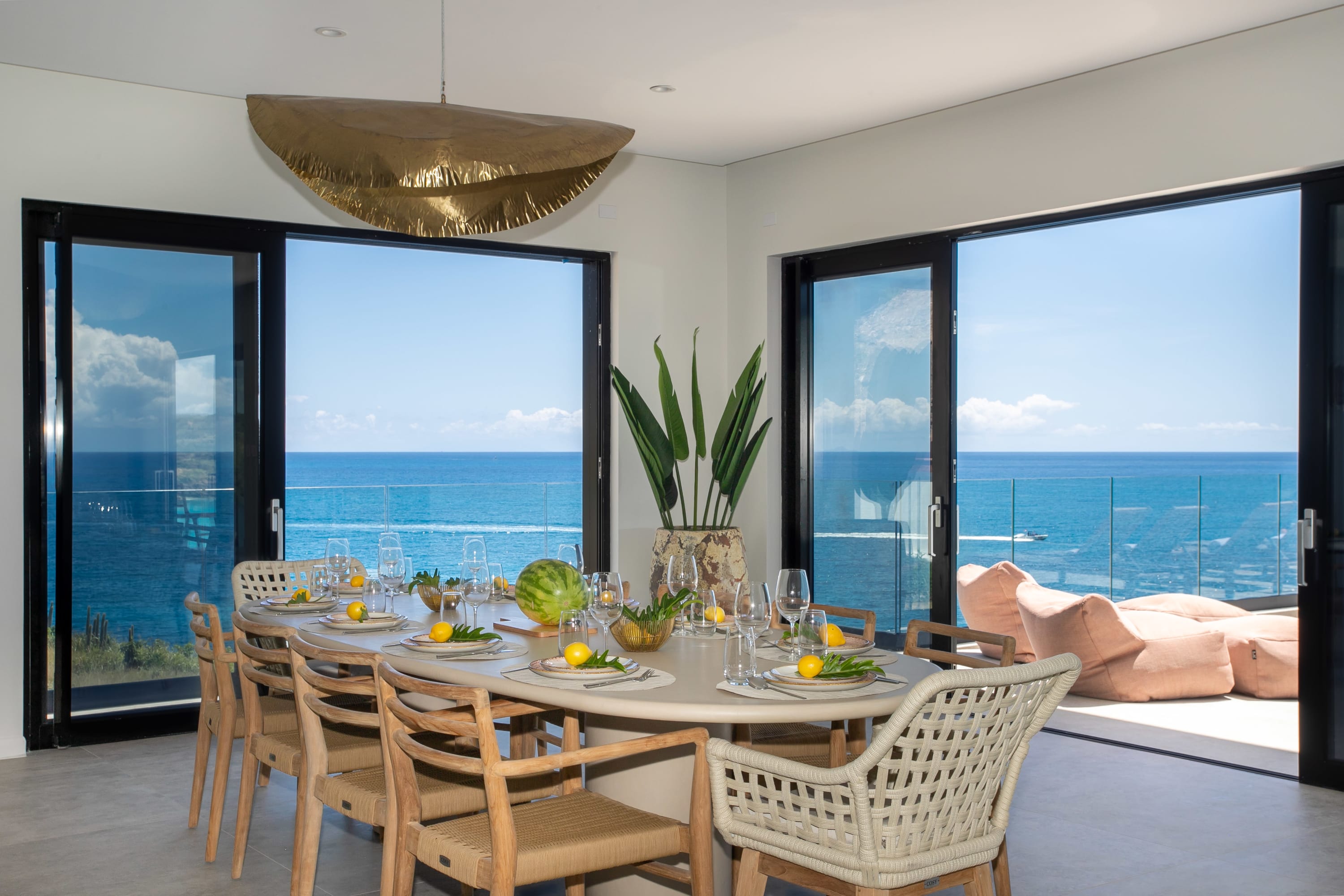 Villa Aqua Vista is a newly built luxurious oasis in Indigo Bay, St. Maarten.The newly constructed Villa Aqua Vista stands as a contemporary gem, effortlessly balancing contemporary elegance with island luxury. This stunning 6-bedroom villa is located in the peaceful Indigo Bay of Sint Maarten, offering an unforgettable Caribbean getaway just steps away from its sister villa, Villa Aqua Dream.Villa Aqua Vista's enchanting sleek lines and polished architecture, leaving guests with immediate amazement. Villa Aqua Vista compliments the minimalist design and modernism of its sister villa, Villa Aqua Dream, creating a harmonious transition between these two villa rentals.Walking through the entrance, guests will find themselves welcomed by a sense of openness and splendor. Villa Aqua Vista's open-concept design offers guests panoramic 270° views of the expansive indigo Caribbean waters through large windows. Vogue yet refined interior decor, featuring neutral tones and top-of-the-line furnishings, complement Villa Aqua Vista's modern aesthetic.With six luxurious bedrooms, Villa Aqua Vista offers immaculate design to provide guests with unparalleled comfort and relaxation. Villa Aqua Vista's master bedroom oozes beauty with an en-suite bathroom and tremendous sea views. The villa's other 5 bedrooms are equally inviting, offering top notch furnishings, en-suite bathrooms, closet space, and direct access to the property's outdoor spaces.Whether you're planning a romantic vacation, a family get together, or a trip for friends, Villa Aqua Vista ensures guests have an unforgettable St. Maarten experience. Villa Aqua Vista's contemporary, sleek design effortlessly amazes guests with the natural beauty of Indigo Bay and views of Saba, offering the ultimate setting for creating long lasting memories.