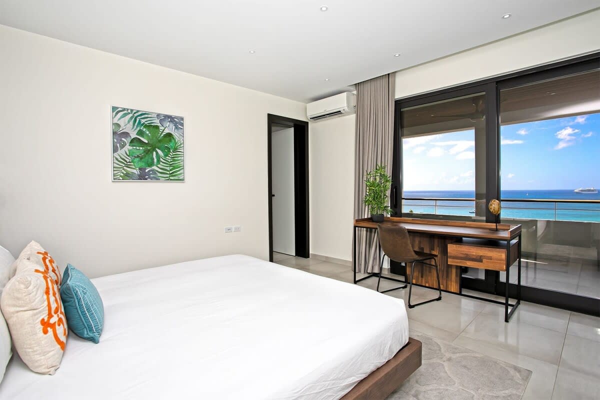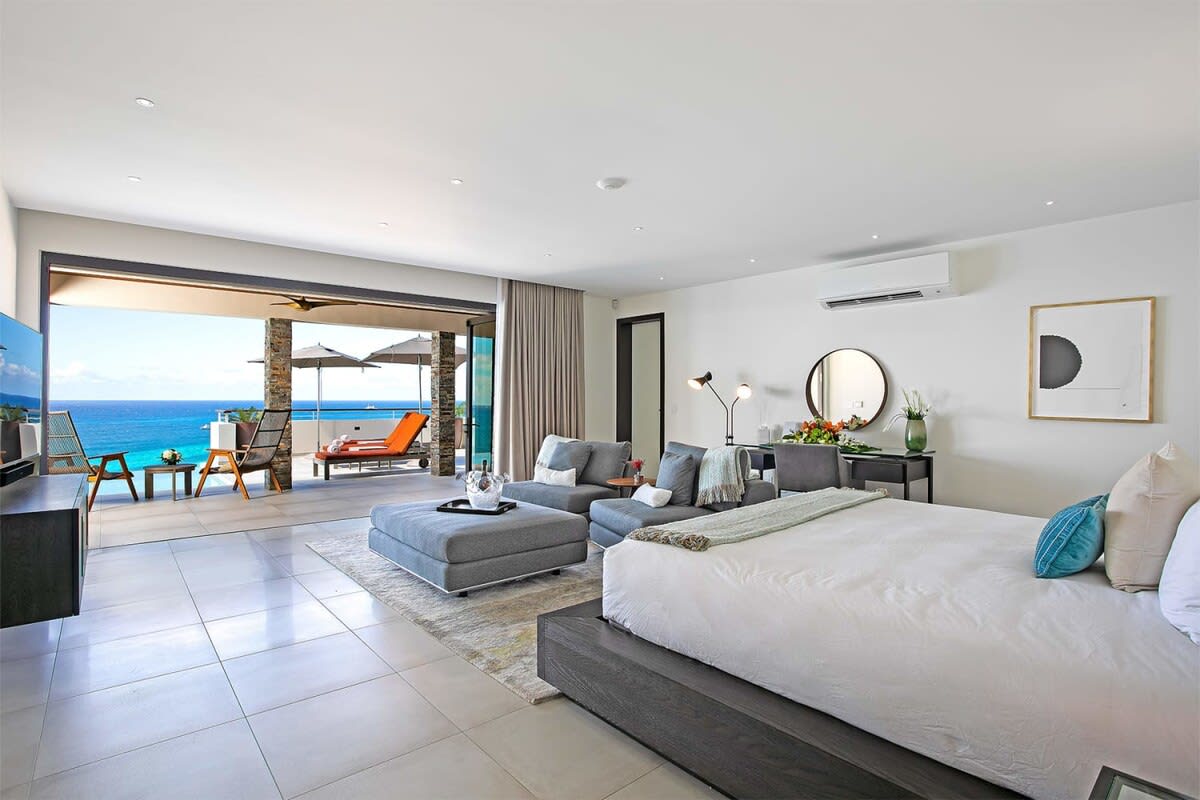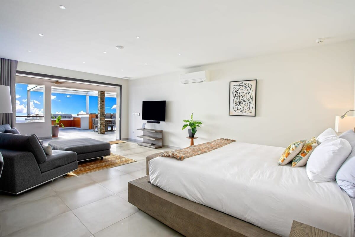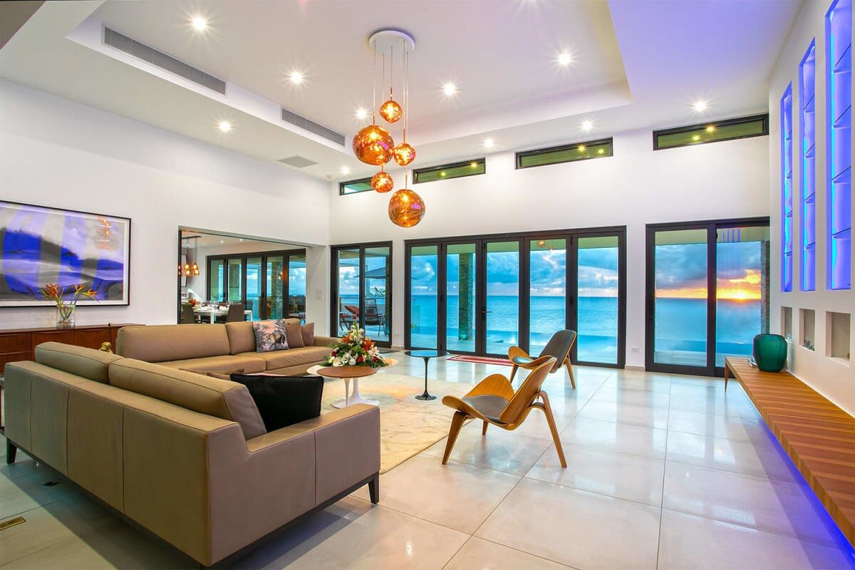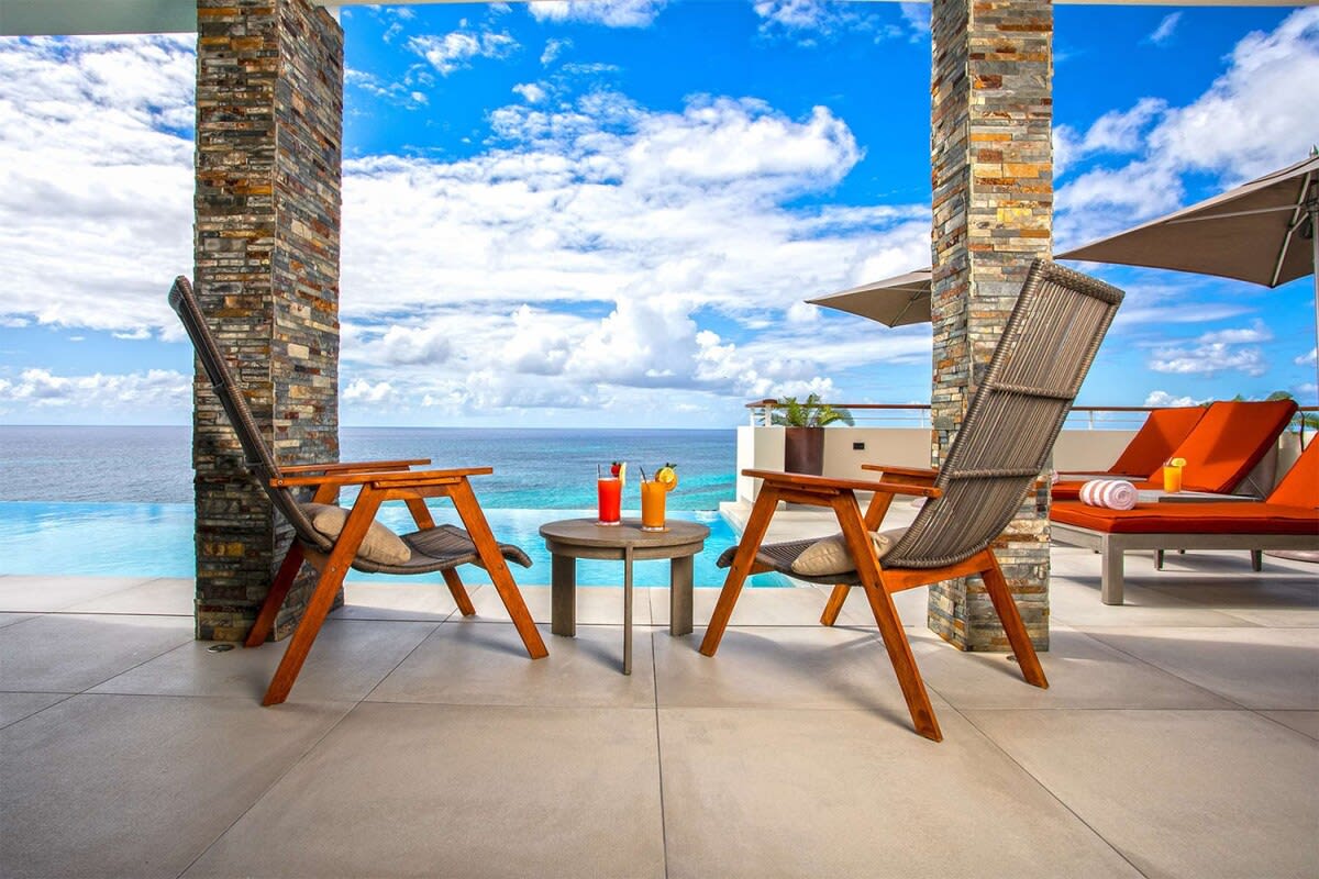 Villa Bella Vita features exquisite amenities and epic Caribbean sunset views over Pelican Key, St. Maarten.Life is good at Villa Bella Vita, a sumptuous 7-bedroom contemporary home located in the residential enclave of Pelican Key on the Dutch side of Sint Maarten. Just recently renovated, this spectacular home offers five-star amenities and unparalleled views over the Caribbean from its privileged cliffside position. From the beautiful infinity pool and spacious sun terrace, the unforgettable panorama unfolds of the Caribbean with the islands of Saba, St. Eustatius, and St. Kitts in the distance and picturesque Pelican Key just below. This beautifully appointed Villa Bella Vita with over 10,000 sq. ft of living space, includes 7 bedrooms, 8 ½ bathrooms, a large living room, a dining room, and a state-of-the-art gourmet kitchen, the villa also features a media room, a fitness room, and a roof-top terrace with summer kitchen. The seven-bedroom suites each have en-suite luxury bathrooms, six have king-size beds and the seventh has 2 full-size beds. Villa Bella Vita is eco-conscious, powered entirely by solar energy during the day and Tesla Powerwall technology in the evenings. All appliances have been chosen with this energy-saving philosophy in mind. The villa is powered by an AI home system that makes Villa Bella Vita unique in St. Maarten. The villa is conveniently located close to restaurants and nightlife in Simpson Bay and provides a dedicated onsite concierge to take advantage of the many activities that the island has to offer.