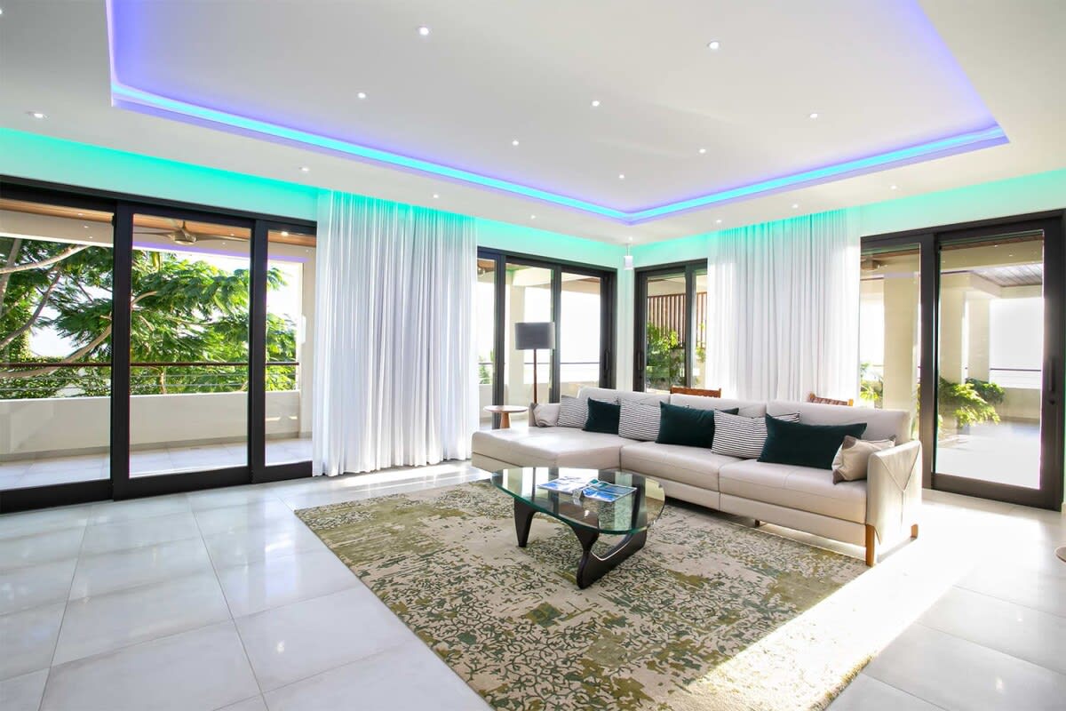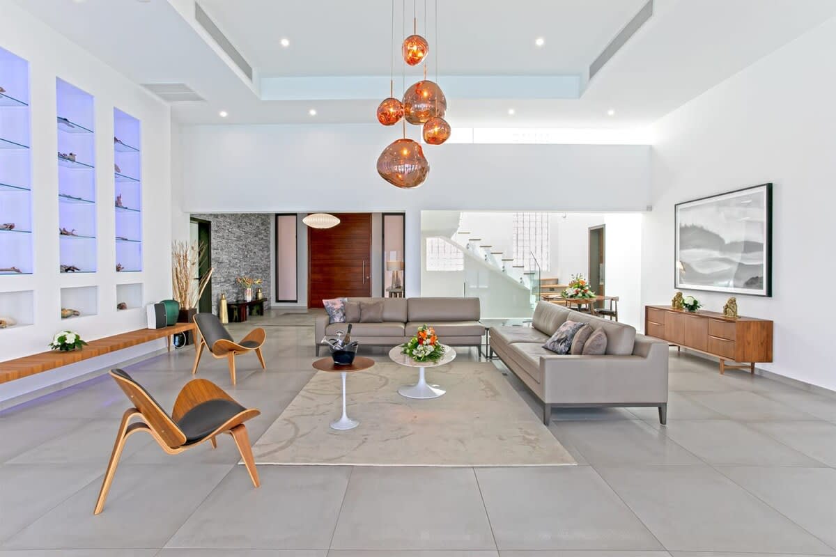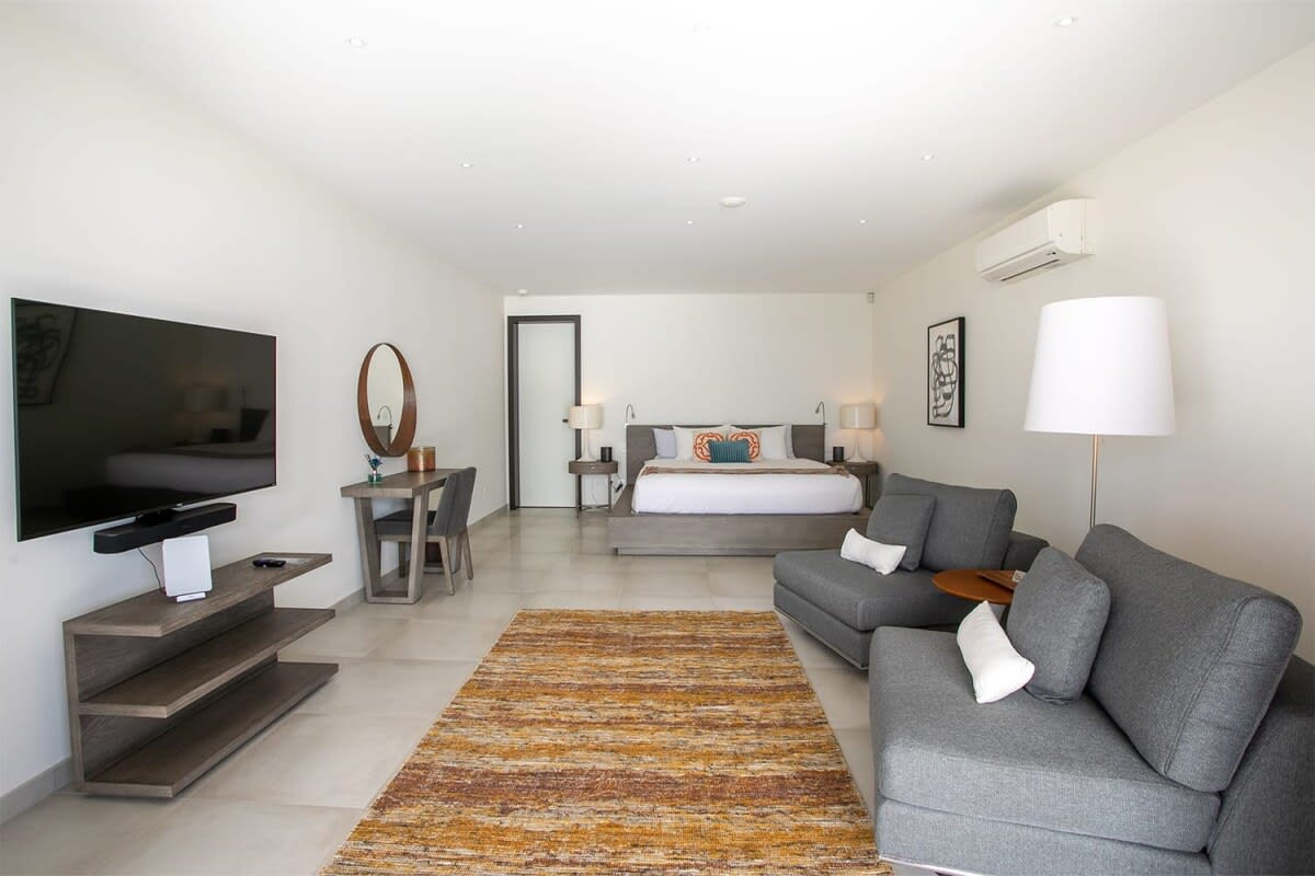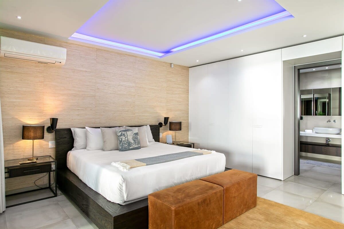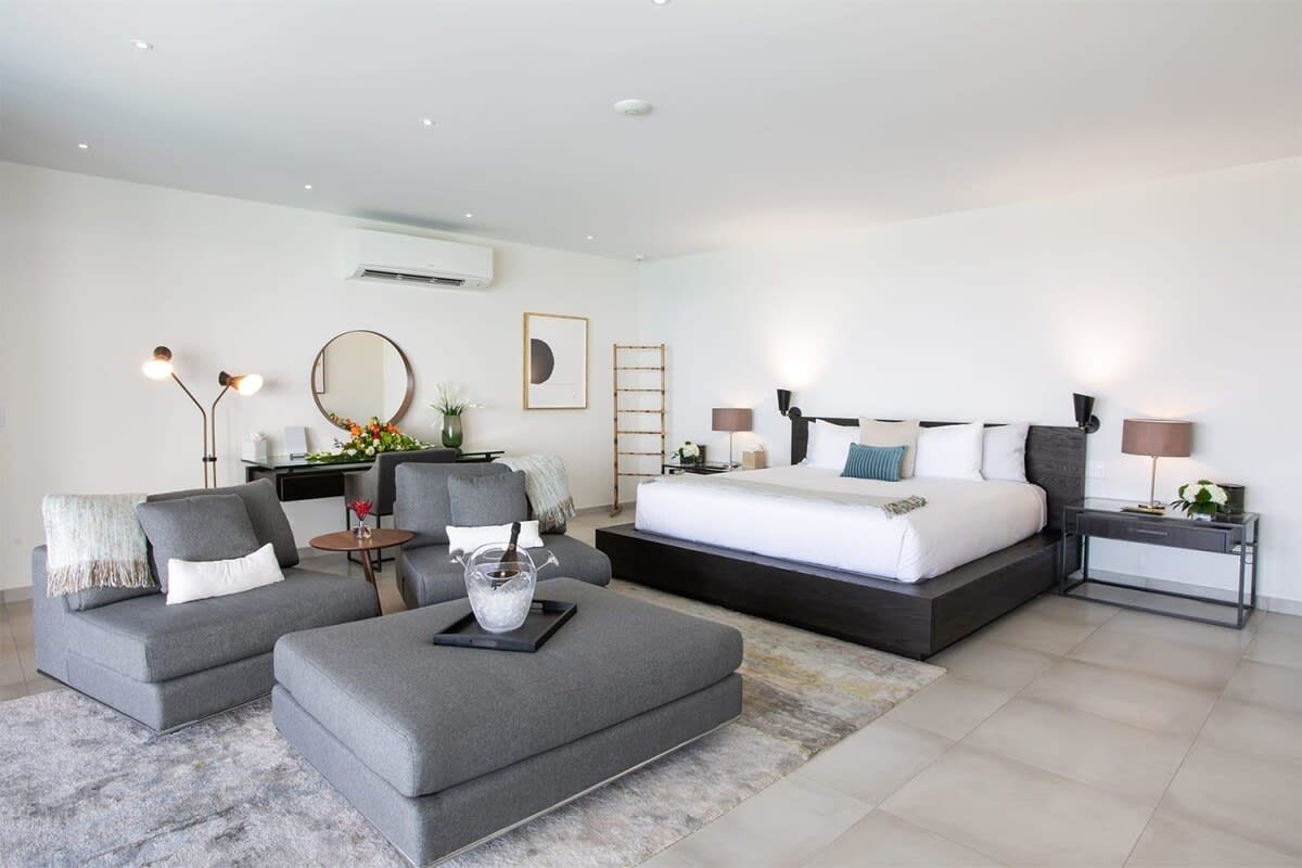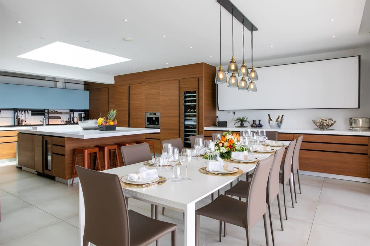 Villa Bella Vita features exquisite amenities and epic Caribbean sunset views over Pelican Key, St. Maarten.Life is good at Villa Bella Vita, a sumptuous 7-bedroom contemporary home located in the residential enclave of Pelican Key on the Dutch side of Sint Maarten. Just recently renovated, this spectacular home offers five-star amenities and unparalleled views over the Caribbean from its privileged cliffside position. From the beautiful infinity pool and spacious sun terrace, the unforgettable panorama unfolds of the Caribbean with the islands of Saba, St. Eustatius, and St. Kitts in the distance and picturesque Pelican Key just below. This beautifully appointed Villa Bella Vita with over 10,000 sq. ft of living space, includes 7 bedrooms, 8 ½ bathrooms, a large living room, a dining room, and a state-of-the-art gourmet kitchen, the villa also features a media room, a fitness room, and a roof-top terrace with summer kitchen. The seven-bedroom suites each have en-suite luxury bathrooms, six have king-size beds and the seventh has 2 full-size beds. Villa Bella Vita is eco-conscious, powered entirely by solar energy during the day and Tesla Powerwall technology in the evenings. All appliances have been chosen with this energy-saving philosophy in mind. The villa is powered by an AI home system that makes Villa Bella Vita unique in St. Maarten. The villa is conveniently located close to restaurants and nightlife in Simpson Bay and provides a dedicated onsite concierge to take advantage of the many activities that the island has to offer.