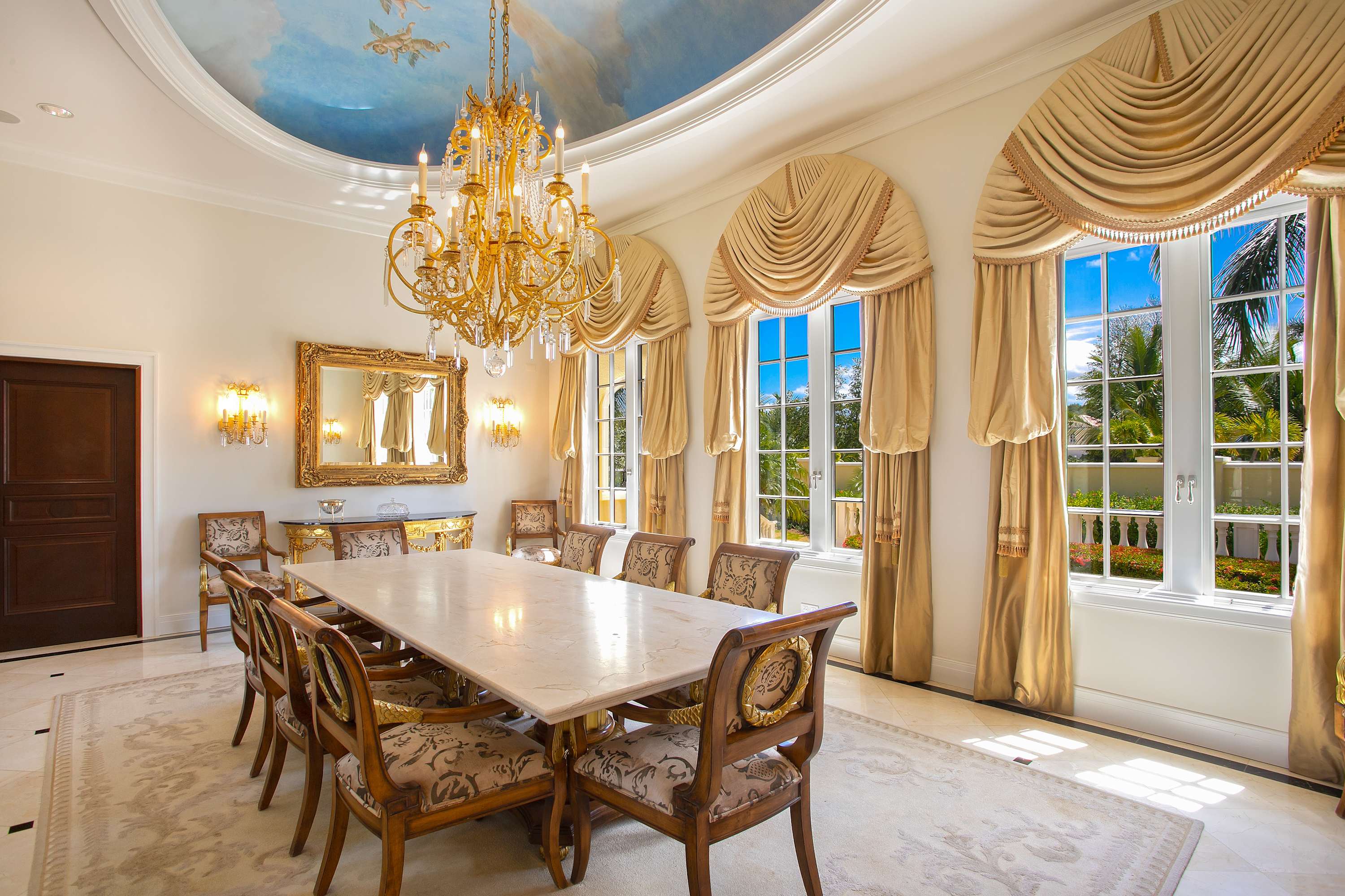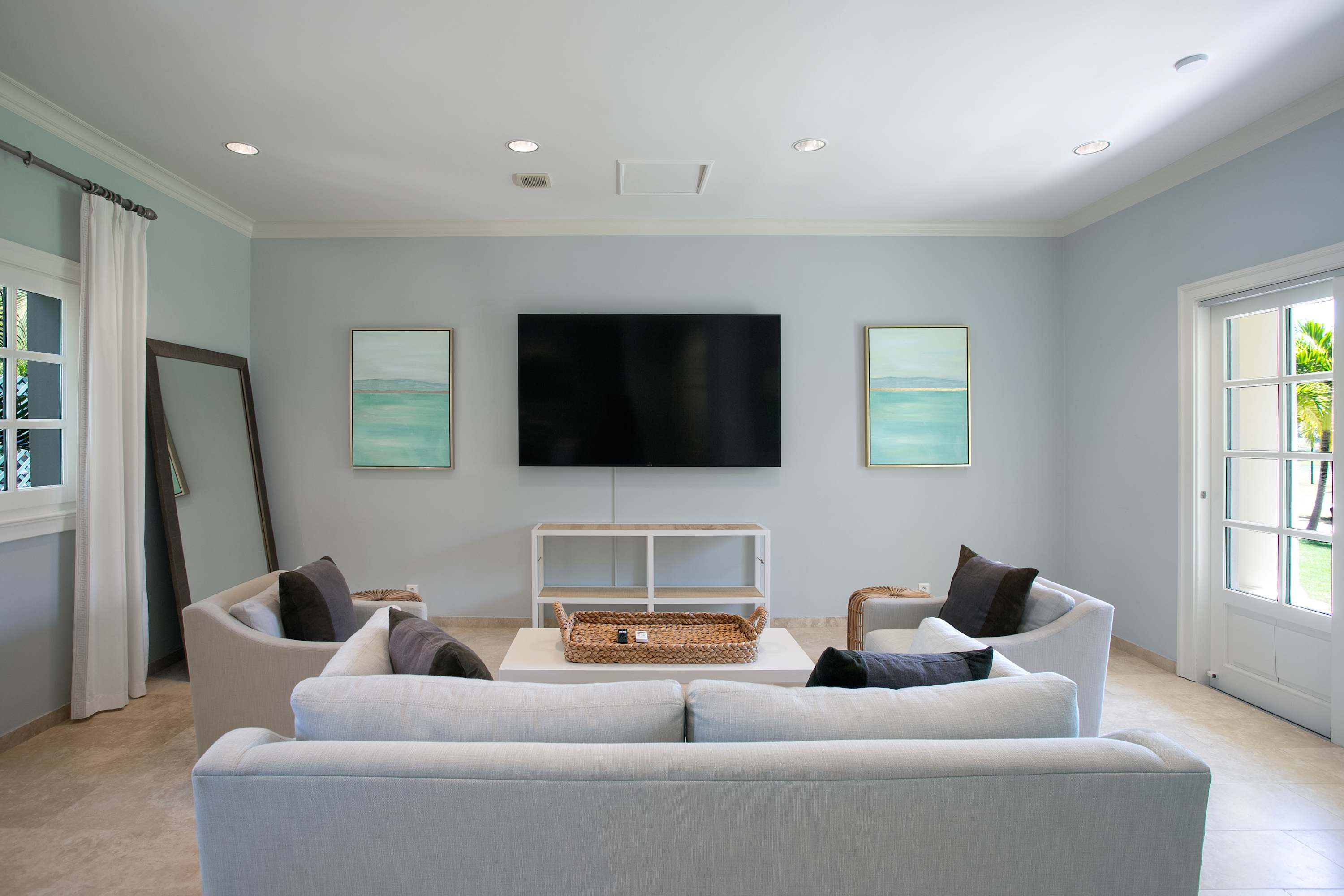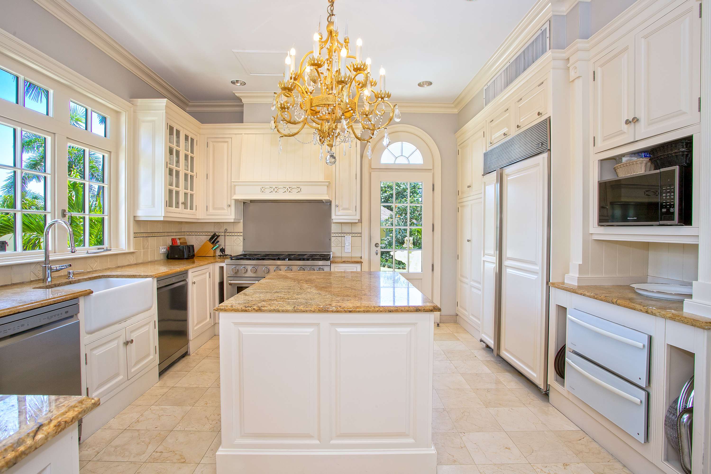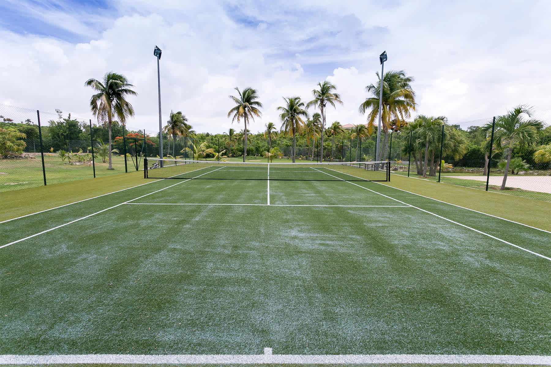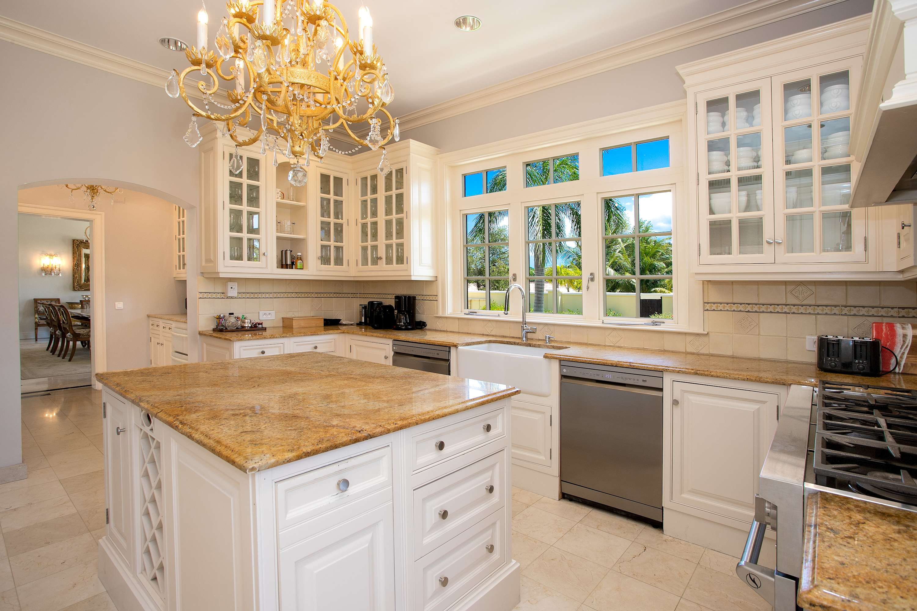 Villa Chateau des Palmiers is a fully staffed beachfront estate on Plum Bay in Terres Basses, St. Martin.Le Chateau des Palmiers is a world-class beachfront estate that includes a 6-bedroom ocean-side villa and a 4-bedroom garden-side villa in Terres Basses, Saint Martin. Situated on the white sand beach at Plum Bay, this fabulous property provides an intimate, relaxed, and attentive environment within the walls of a gated enclave. The many amenities include a huge heated pool, an open-air and air-conditioned fitness center, a tennis court, and a covered outdoor bar, billiards, and dining areas. The oceanside villa features 6 king size bedrooms with full private baths including a two-story master suite with a master bath with a jacuzzi tub and two private balconies facing the pool and ocean. The remaining interior spaces include a fully equipped kitchen, a formal living room, a formal dining room seating 10, and a casual outside dining area and a media room. The 4 bedroom garden side villa features the "Jungle Room” with a king-size bed and small living room, the “Palm Room” with a king-size mahogany bed, and a 2 bedroom suite with queen size beds, a shared living room, and a cozy dining room. There is also a huge commercial catering kitchen. Other amenities include air conditioning in all rooms, an outdoor sound system, and internet access. All bedrooms have independent TV receiver & DVD, the media room and master bedroom have a large satellite dish & DVD. There is an on-site Chef and experienced security staff available along with a state-of-the-art security system. Enjoy the beautiful Caribbean sunsets from this stunning one-of-a-kind Château and experience the vacation of a lifetime.Featured Amenities include Housekeeping 7 days a week, Turn down service, Chef service 3 meals per day, Onsite property manager and assistance, Daily concierge service. In addition to being available for rental, Villa Chateau des Palmiers is listed for sale.