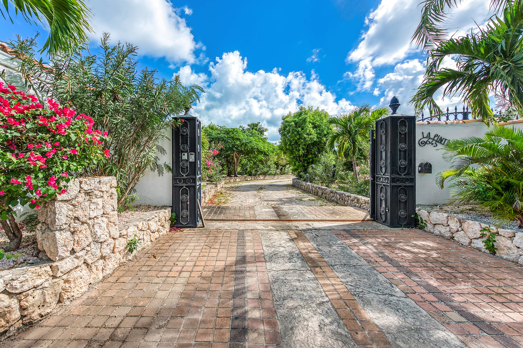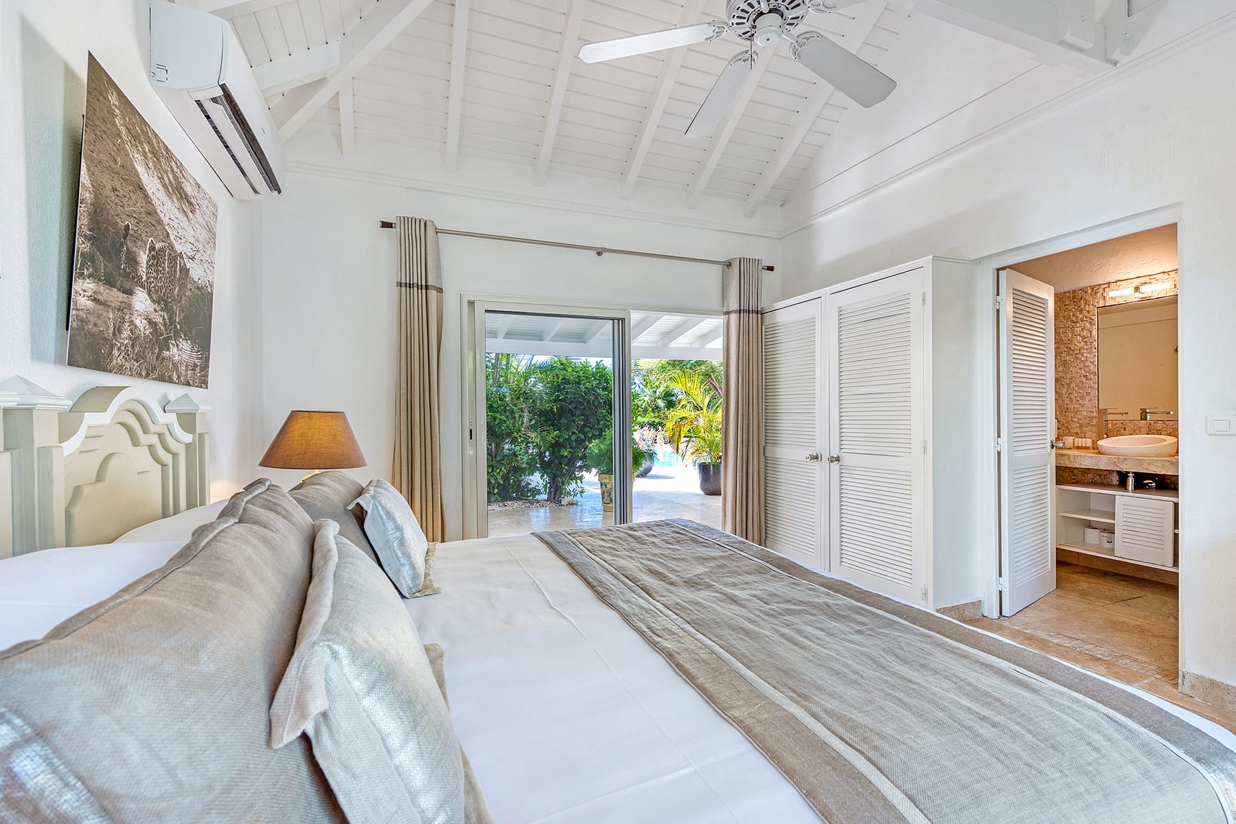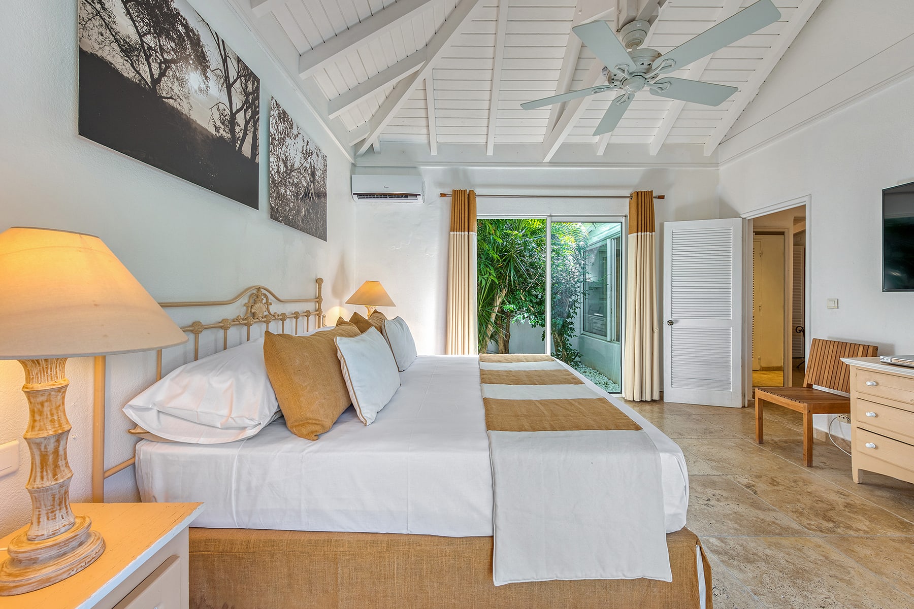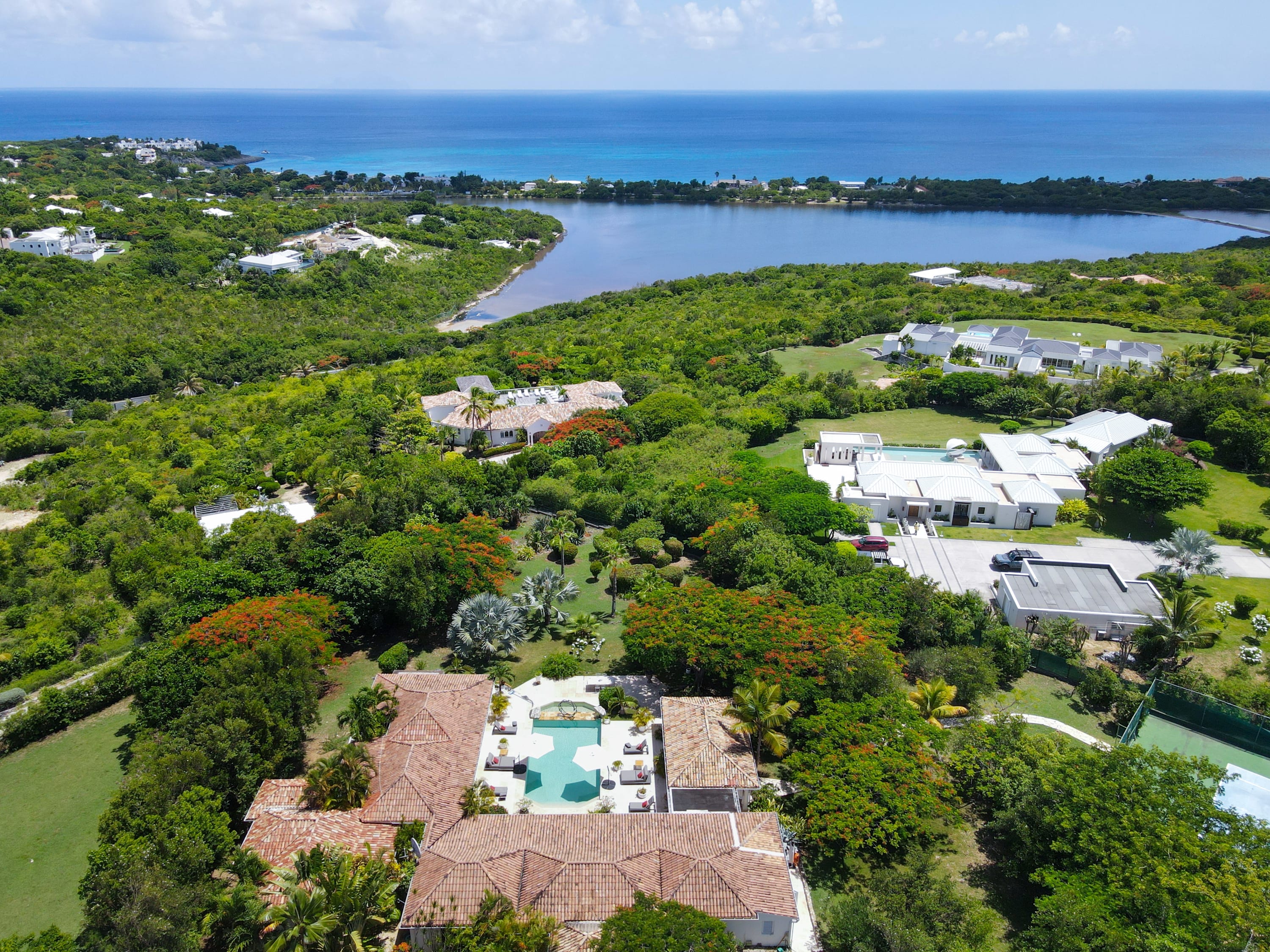 Villa La Pinta has tropical features with a tennis court and ocean view in Terres Basses, St. Martin.Down the long driveway lined with coral stone walls and flamboyant, you arrive in the courtyard of the elegant Creole style Villa La Pinta. It is a quiet, private oasis that sets the stage for relaxing outdoor living and a lush tropical view that begins the moment you enter the villa. The large turquoise pool, accented with a visually pleasing sculpture, draws your eye straight to the stately palms and beyond to the cerulean sea. There is a beautiful flow to the house; an almost seamless connection inside to outside. Although very open, it is private. Large covered galleries create multiple options for dining, lounging, and sunning. It also creates a cool space for firing up the barbeque. Sleek, yet comfortable, new loungers surround the pool. The decor is serene and tasteful, both inside and outside. Villa La Pinta's open plan interior living area contains comfortable oversized seating and inside dining. Adjacent to the main living area is the well-equipped, modern kitchen in sleek white, steel, and black. All the interior living spaces open to the terrace and the view. The decor is eclectic, contemporary, and relaxed in white, beige, and taupe accented with driftwood and dark woods. Beautiful paintings, sculptures, and exotic African art add a very distinctive designer touch to the space. Four bedrooms are set off the pool terrace. The decor is in the mood of a luxe boutique hotel; elegant and serene, each room in a different, yet connective, rich neutral color palette; taupe, cream, charcoal, driftwood, and metallic. The en suite bathrooms are works of art with travertine tiles, dark stone, marble countertops, sculpted sinks, and beautiful fixtures. Several bathrooms overlook the gardens; one overlooks the sea. For larger gatherings, the sister villa, La Nina, shares the same lot and provides an additional two bedrooms. The two also share a tennis court and gym. Although secluded, you are close to amenities. It's a short drive to two of St. Martin's best beaches - Plum Bay and Baie Longue. Villa La Pinta is located just ten minutes from Princess Juliana International Airport (SXM). Baie Nettle's new restaurants are 5 minutes away and a further 5 minutes you reach the charming French capital of Marigot with shops and galleries, historic buildings, and the Creole Market. Drive 25 minutes to Grand Case and Philipsburg's shopping haven.
