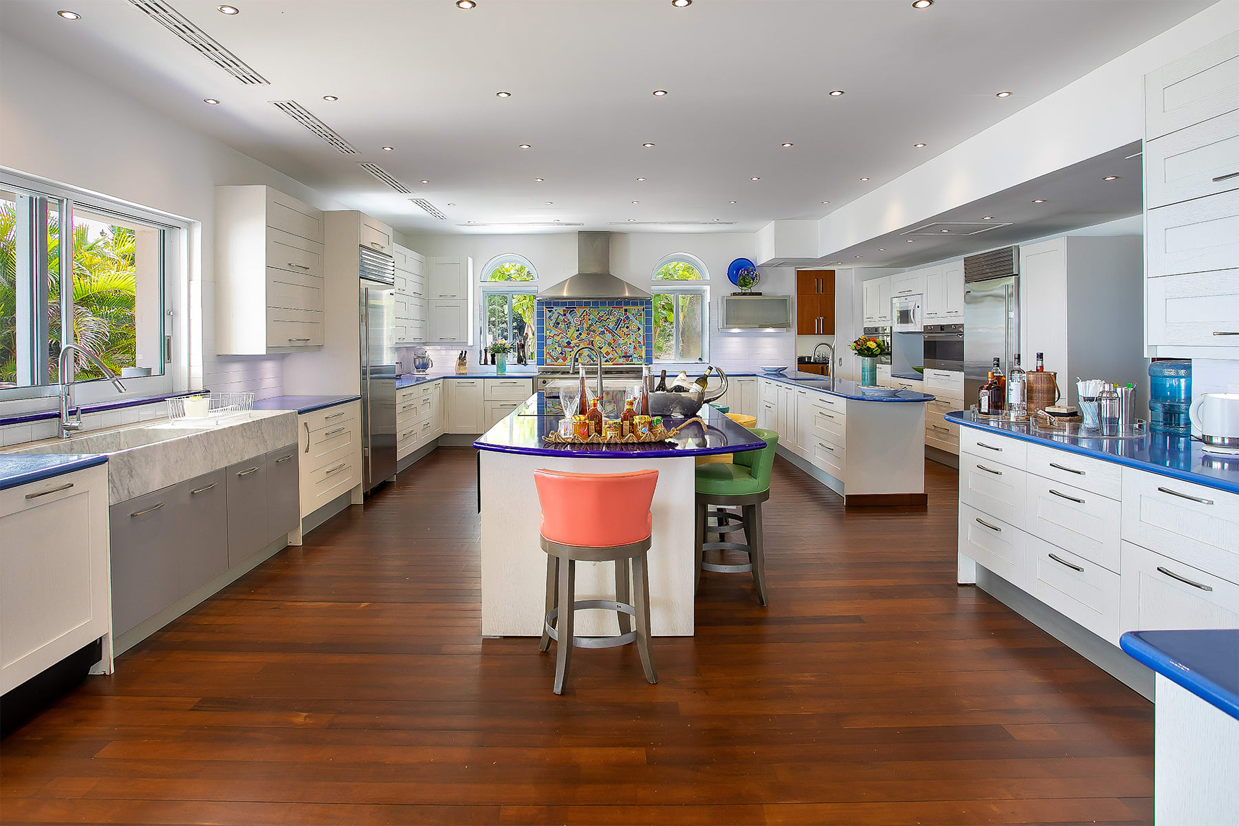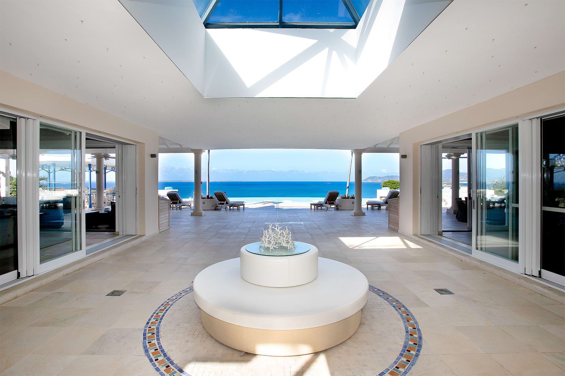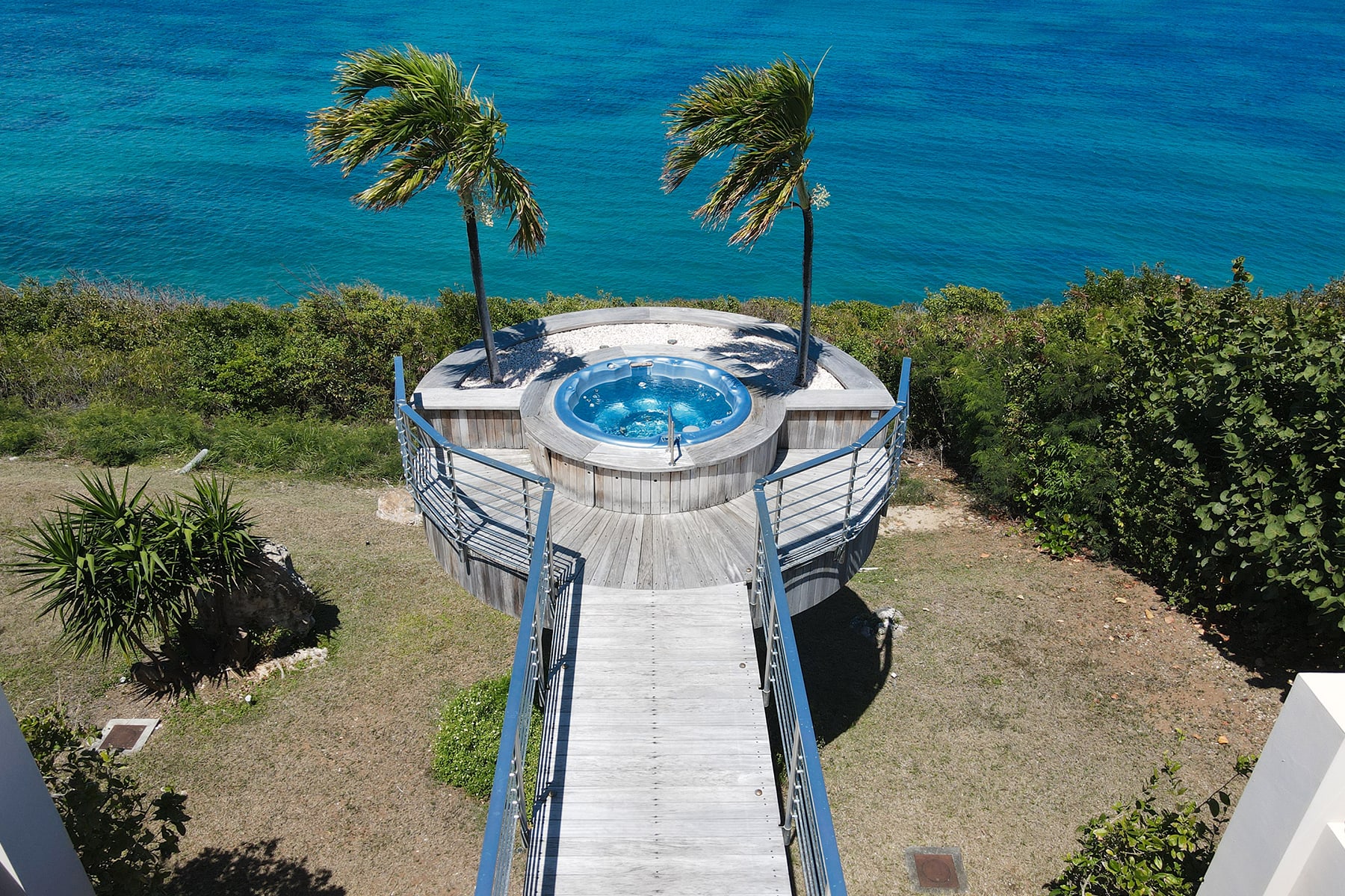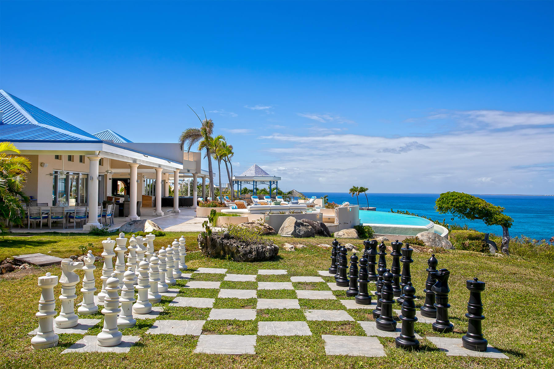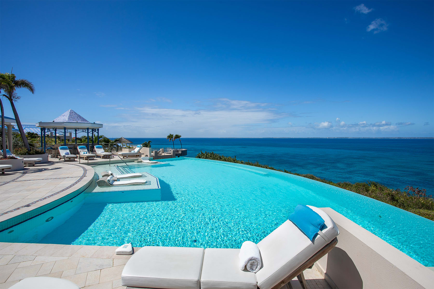 Villa Mes Amis is a massive cliffside estate with epic ocean views in Terres Basses, St. Martin.Welcome to Villa Mes Amis in Terres Basses, Saint Martin, a name that beautifully translates to "my friends" in French, perfectly encapsulating the essence of this expansive and inviting retreat, ideal for destination events or luxurious group getaways. Nestled on seven private acres in the scenic Falaise des Oiseaux area of Terres Basses, Villa Mes Amis is a true estate boasting an unobstructed cliffside view of the sea and the surrounding coastal landscape, divided among three magnificent structures.The primary villa features an impressive reception area and a spacious lounge, providing breathtaking views. Enhancing the experience, an infinity edge pool and Jacuzzi at the cliff's edge offer a seamless connection with the sky, sea, air, and light. Villa Mes Amis' Caribbean atmosphere permeates the indoor spaces, with casual lounge and dining areas leading to the formal dining space and gourmet kitchen, all framed by sliding glass doors.Within the main villa, seven of the thirteen bedroom suites are nestled, each equipped with en suite baths featuring indoor and outdoor showers. The master bath boasts a private terrace. The second villa offers three additional bedrooms, appealing living spaces, and a stepped swimming pool that stands as a destination in itself. Finally, the third villa houses the three newest bedrooms, each with a king-size bed and en-suite bathrooms.The entire Villa Mes Amis grants access to amenities such as a media room and gym in the main villa, complementing the impressive pool, lounge, and extensive acreage.For those seeking a pristine and private experience, Villa Mes Amis welcomes guests like old friends, offering the utmost comfort, peace, and relaxation for an unforgettable tropical getaway in the heart of St. Martin. Villa Mes Amis is located less than 15 minutes from the nearest grocery store, restaurants and shopping at Porto Cupecoy, and 20 minutes from Princess Juliana International Airport (SXM).
