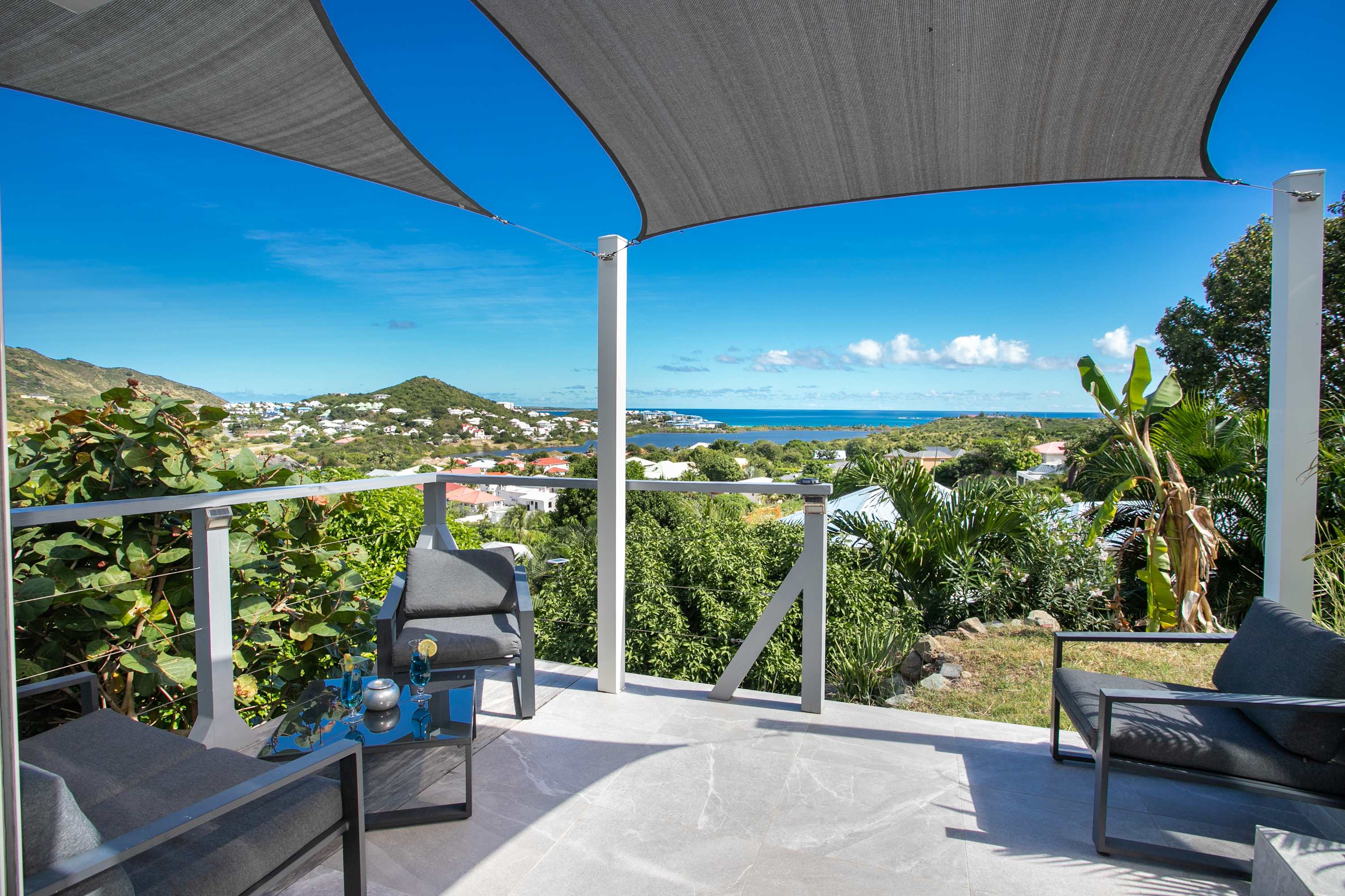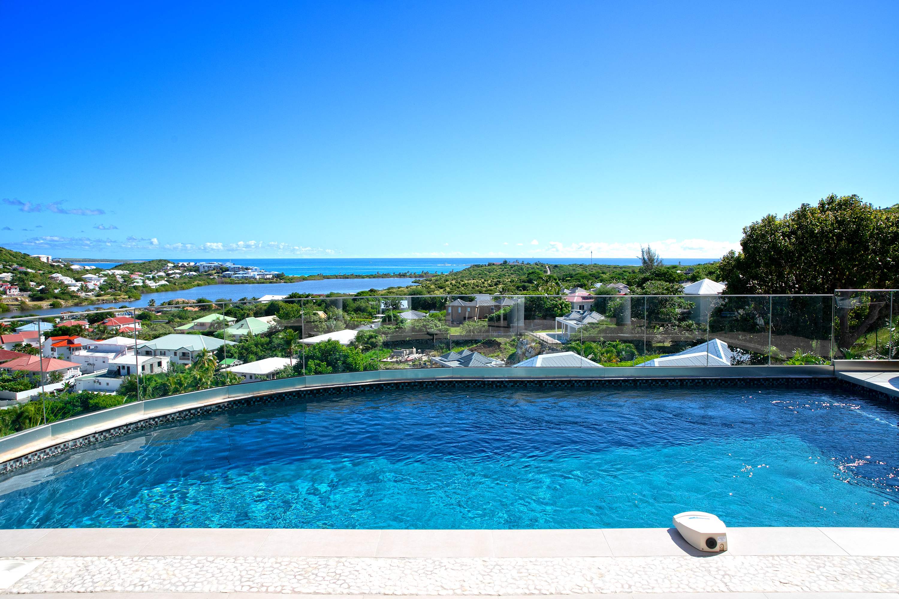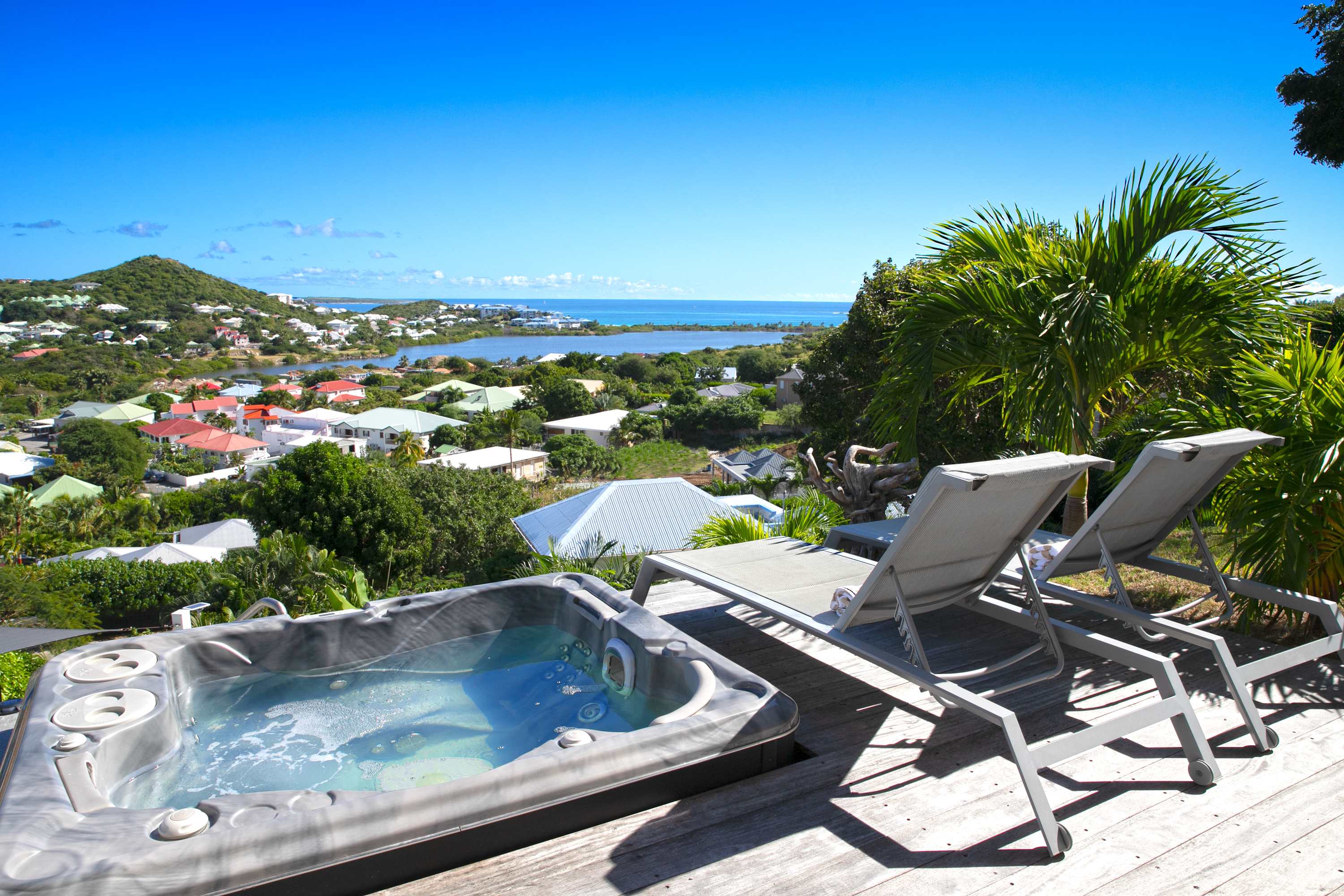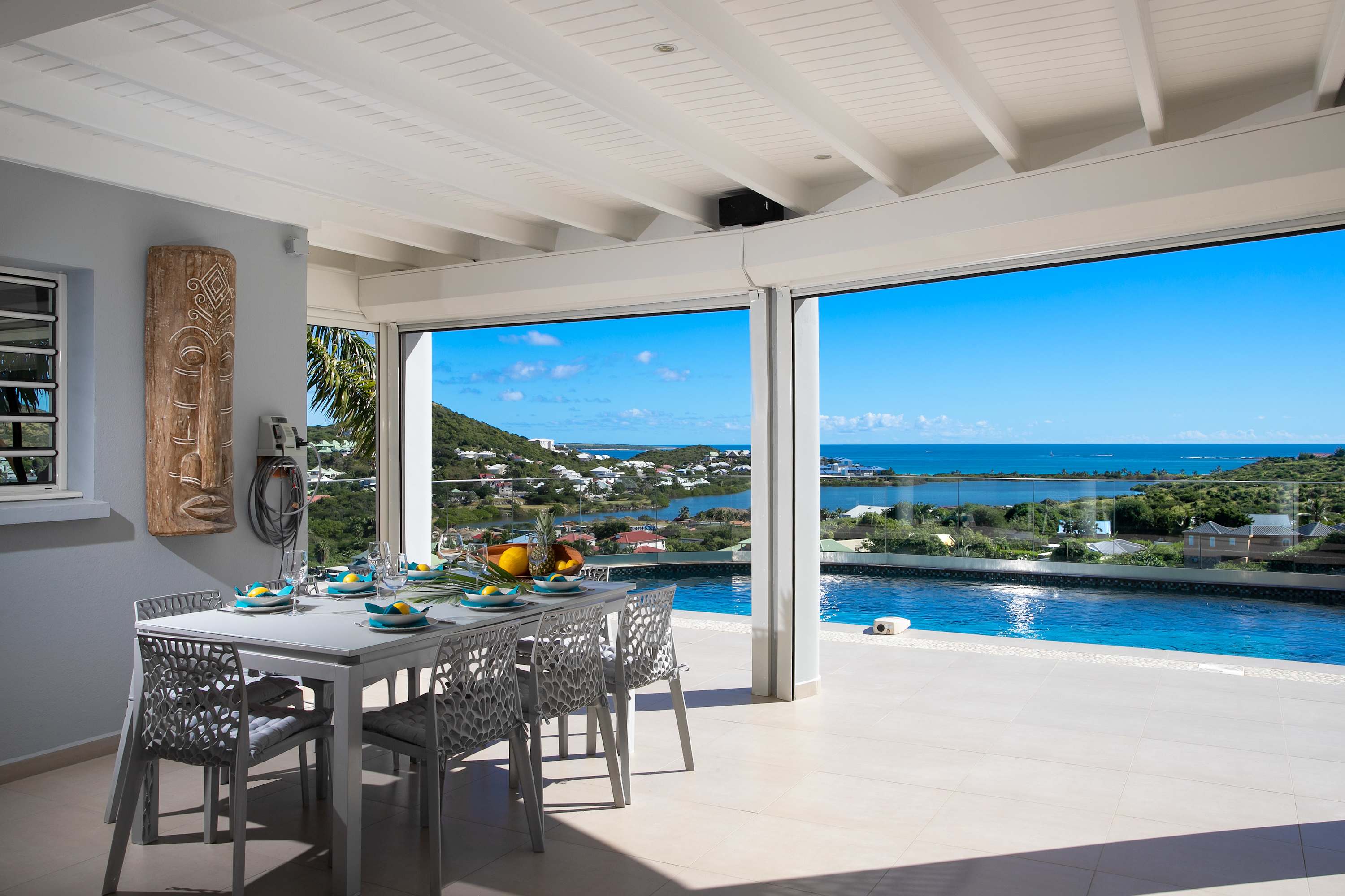 Nestled in the exclusive and gated community of Mont Vernon 3 in St. Martin, Villa Venus offers an elevated escape with breathtaking views of Orient Bay. Its prime location provides a tranquil sanctuary while keeping you close to the island’s vibrant attractions. As you enter the gated community, your private gate welcomes you to lush green gardens and the serene setting of this luxurious retreat. The villa boasts 200 square meters of wonderful interior living space, perfect for both relaxation and entertainment. Upon entering, you are greeted by an open-plan living area that seamlessly blends elegance and functionality. The stylish living room flows effortlessly into the fully equipped kitchen, where a pass-through window makes it easy to serve meals to the large covered outdoor dining area. Expansive sliding doors blur the boundaries between indoor and outdoor living, offering the best of both worlds. The villa’s outdoor terrace is an inviting space for al fresco dining or unwinding in the shaded lounge area. After a day of island adventures, you can take a refreshing dip in the private pool or relax in the jacuzzi, enjoying the serene ambiance and stunning views under the stars. The pool deck, furnished with four comfortable lounge chairs, and three floating bubble chairs provides the perfect setting to bask in the Caribbean sun. For added peace of mind, the pool is equipped with an alarm system. Villa Venus accommodates up to eight guests across four luxurious bedrooms, each designed for comfort and privacy. The Primary Suite offers both interior and exterior access, a king-sized bed, an en-suite bathroom with a rain shower, and breathtaking ocean views. This suite connects directly to the pool terrace, allowing seamless access to the outdoor space. Bedrooms two and three are located on the opposite side of the villa and feature king-sized beds, en-suite bathrooms, and both interior and exterior access. These two bedrooms share a terrace that connects directly to the pool and jacuzzi, creating a harmonious blend of privacy and shared space. Situated on the lower level, bedroom four, is a private studio ideal for guests seeking additional seclusion. This studio includes a king-sized bed, a fully equipped kitchenette (with a coffee machine, stove, fridge, etc.), an en-suite bathroom, and a secluded terrace. It is the perfect spot to sip your morning coffee while watching the sunrise in blissful solitude. With its thoughtful amenities, stunning views, and elegant design, Villa Venus is the ideal destination for a serene and sophisticated Caribbean getaway. The villa’s ample indoor and outdoor spaces make it perfect for families or groups of friends vacationing together. One of the island's finest beaches and loveliest restaurants are in Orient Beach, at just a short five minutes drive away. Villa Venus promises an unforgettable stay in paradise!This property is available to rent as a 3 and 4 bedroom villa.