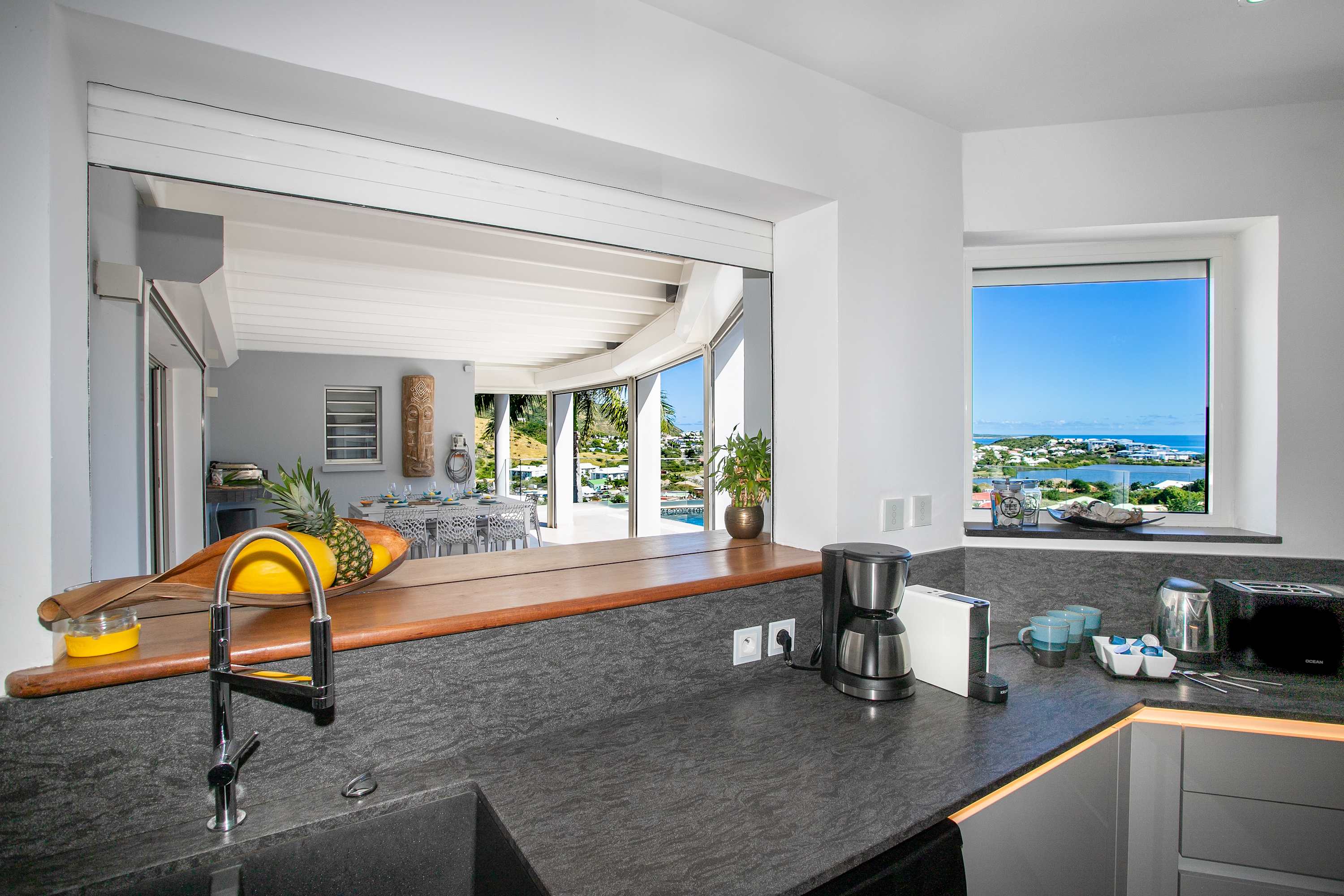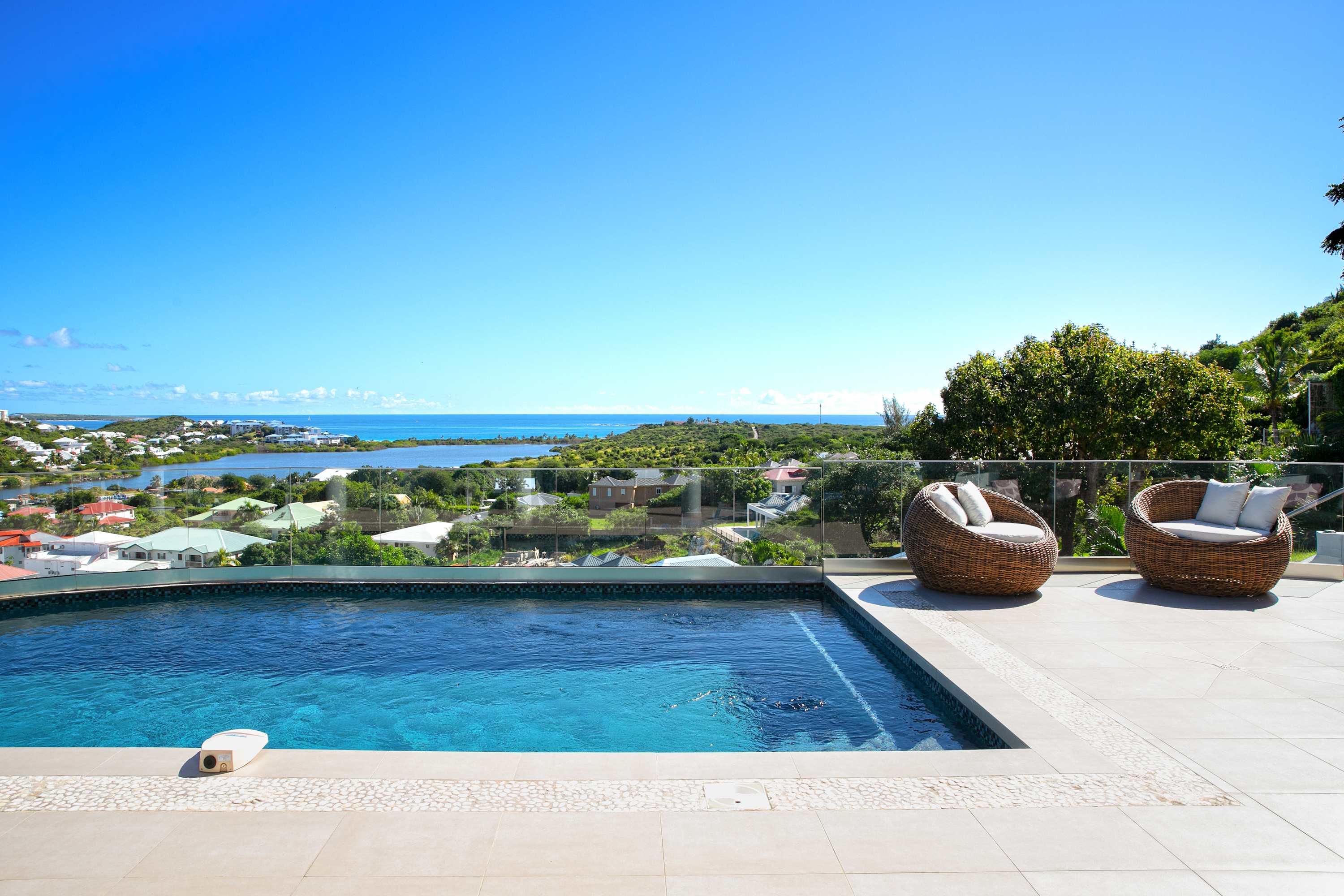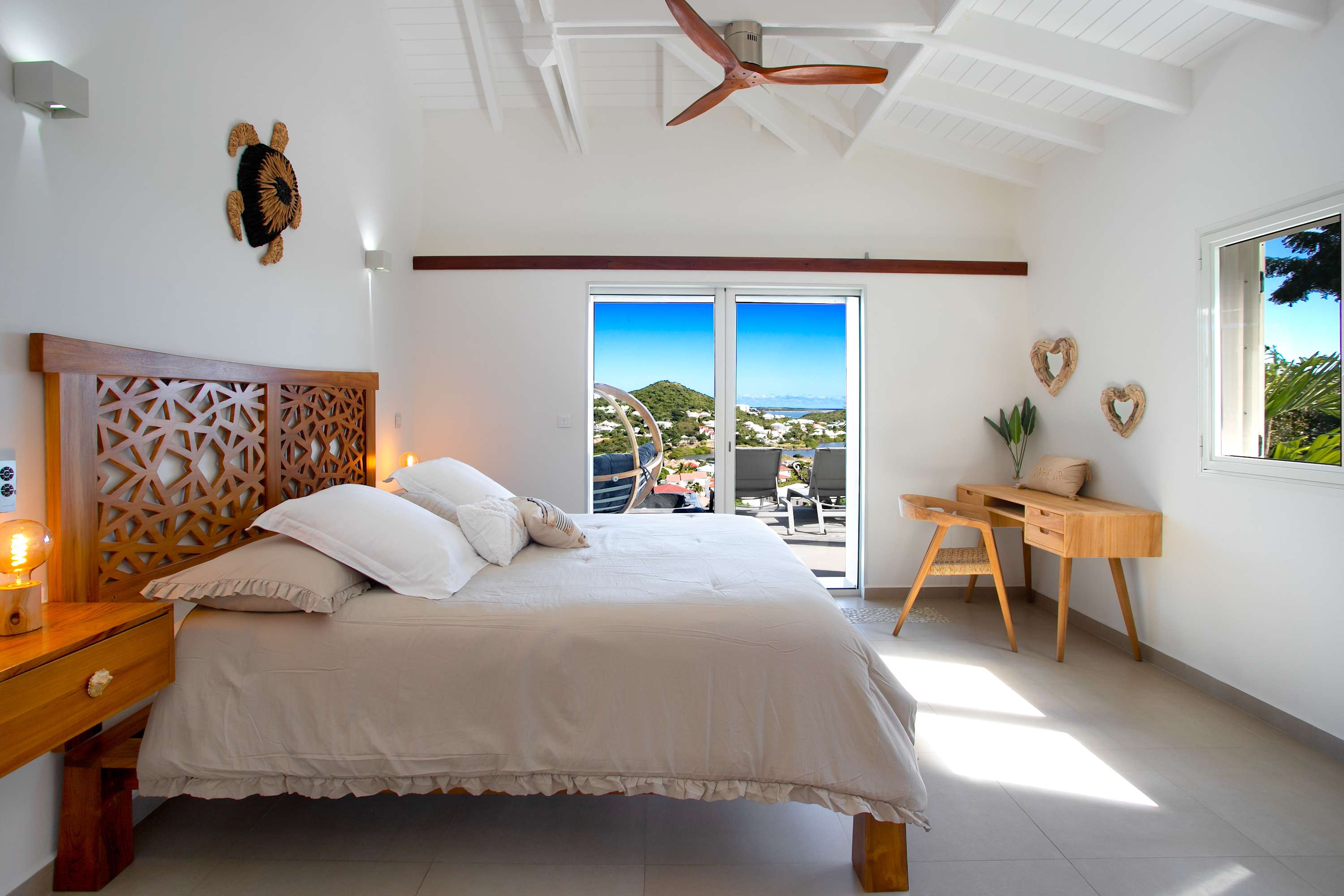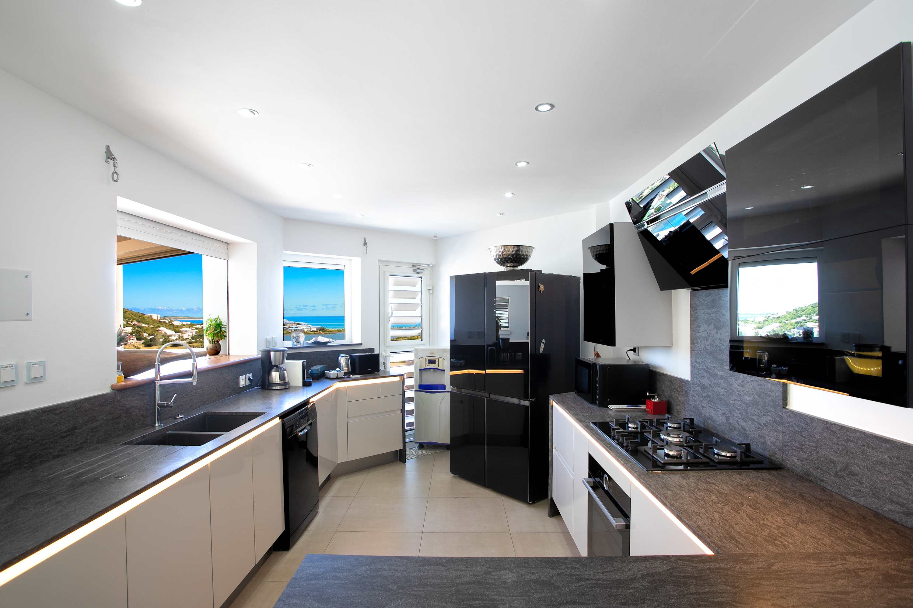 Nestled in the exclusive and gated community of Mont Vernon 3 in St. Martin, Villa Venus offers an elevated escape with breathtaking views of Orient Bay. Its prime location provides a tranquil sanctuary while keeping you close to the island’s vibrant attractions. As you enter the gated community, your private gate welcomes you to lush green gardens and the serene setting of this luxurious retreat. The villa boasts 200 square meters of wonderful interior living space, perfect for both relaxation and entertainment. Upon entering, you are greeted by an open-plan living area that seamlessly blends elegance and functionality. The stylish living room flows effortlessly into the fully equipped kitchen, where a pass-through window makes it easy to serve meals to the large covered outdoor dining area. Expansive sliding doors blur the boundaries between indoor and outdoor living, offering the best of both worlds. The villa’s outdoor terrace is an inviting space for al fresco dining or unwinding in the shaded lounge area. After a day of island adventures, you can take a refreshing dip in the private pool or relax in the jacuzzi, enjoying the serene ambiance and stunning views under the stars. The pool deck, furnished with four comfortable lounge chairs, and three floating bubble chairs provides the perfect setting to bask in the Caribbean sun. For added peace of mind, the pool is equipped with an alarm system. Villa Venus accommodates up to eight guests across four luxurious bedrooms, each designed for comfort and privacy. The Primary Suite offers both interior and exterior access, a king-sized bed, an en-suite bathroom with a rain shower, and breathtaking ocean views. This suite connects directly to the pool terrace, allowing seamless access to the outdoor space. Bedrooms two and three are located on the opposite side of the villa and feature king-sized beds, en-suite bathrooms, and both interior and exterior access. These two bedrooms share a terrace that connects directly to the pool and jacuzzi, creating a harmonious blend of privacy and shared space. Situated on the lower level, bedroom four, is a private studio ideal for guests seeking additional seclusion. This studio includes a king-sized bed, a fully equipped kitchenette (with a coffee machine, stove, fridge, etc.), an en-suite bathroom, and a secluded terrace. It is the perfect spot to sip your morning coffee while watching the sunrise in blissful solitude. With its thoughtful amenities, stunning views, and elegant design, Villa Venus is the ideal destination for a serene and sophisticated Caribbean getaway. The villa’s ample indoor and outdoor spaces make it perfect for families or groups of friends vacationing together. One of the island's finest beaches and loveliest restaurants are in Orient Beach, at just a short five minutes drive away. Villa Venus promises an unforgettable stay in paradise!This property is available to rent as a 3 and 4 bedroom villa.