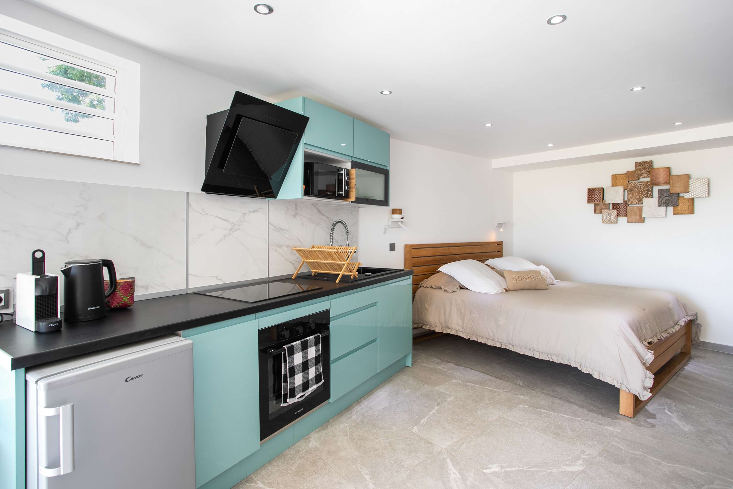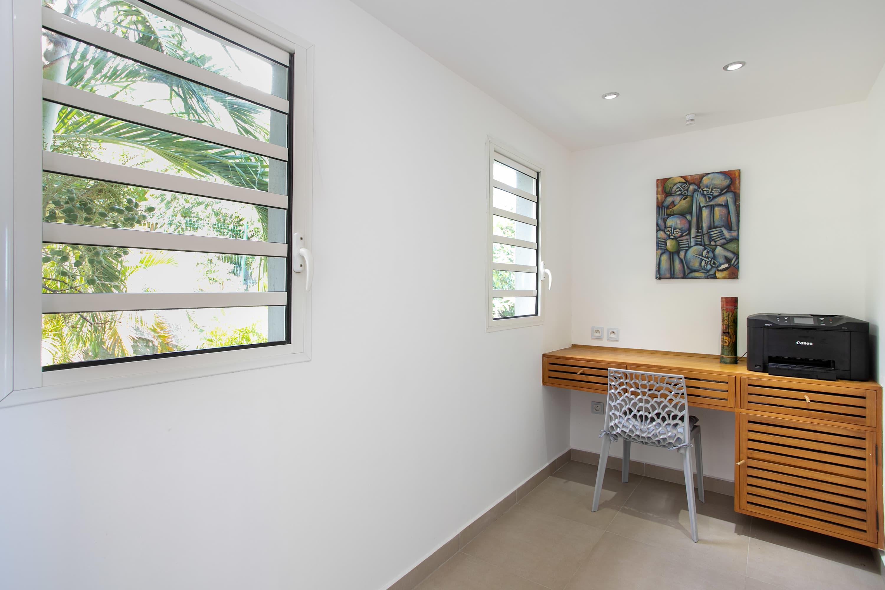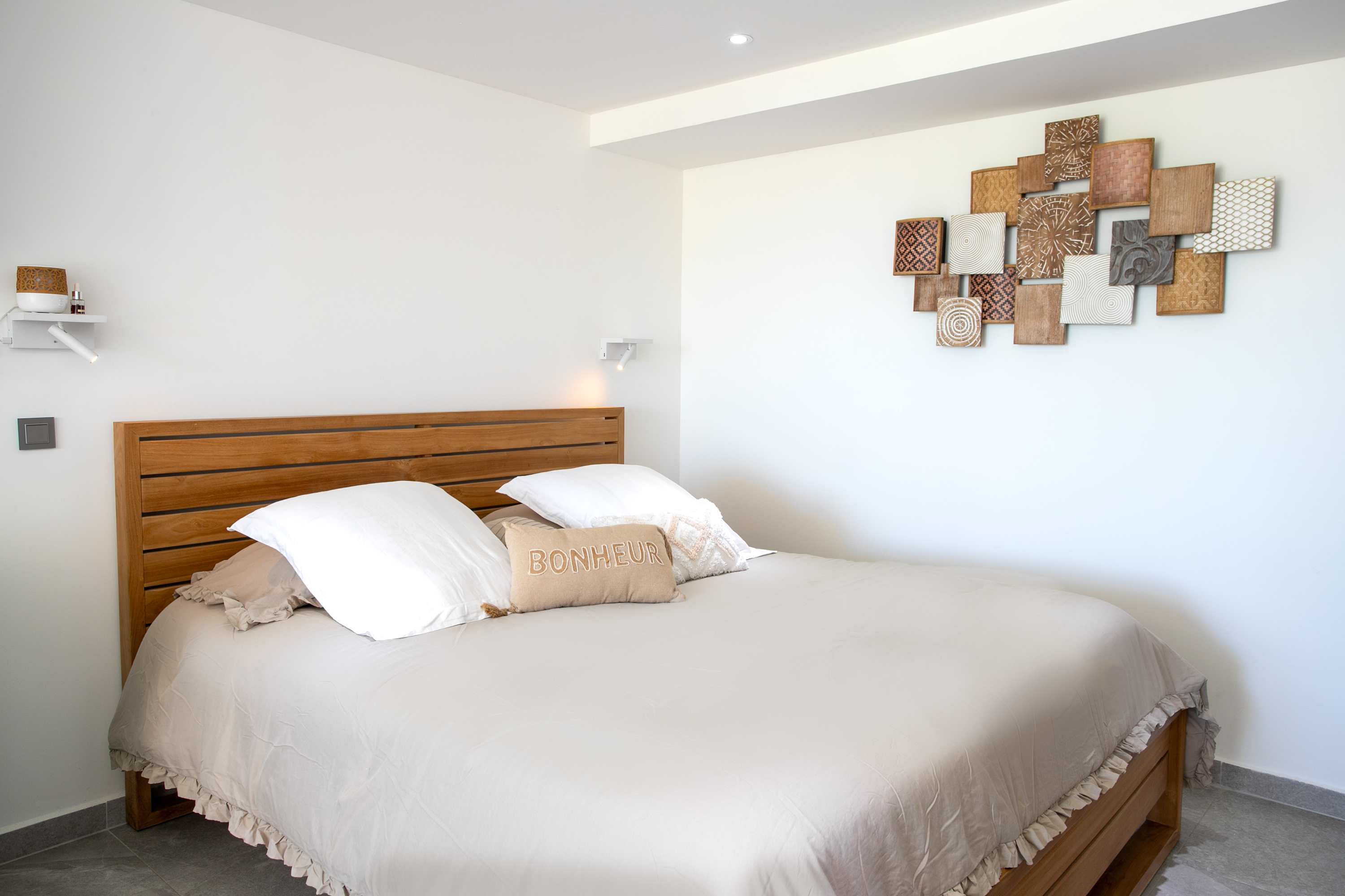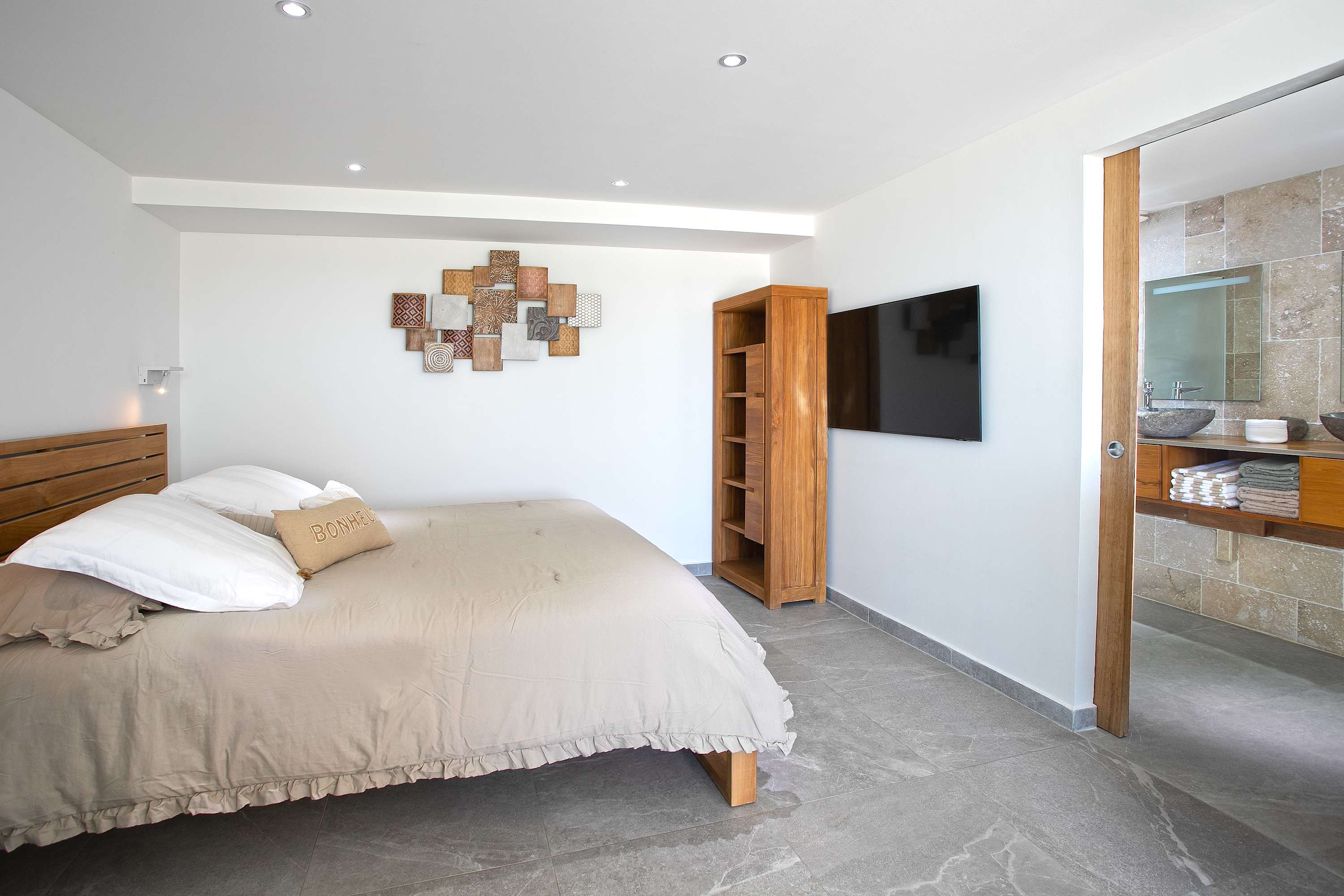 Nestled in the exclusive and gated community of Mont Vernon 3 in St. Martin, Villa Venus offers an elevated escape with breathtaking views of Orient Bay. Its prime location provides a tranquil sanctuary while keeping you close to the island’s vibrant attractions. As you enter the gated community, your private gate welcomes you to lush green gardens and the serene setting of this luxurious retreat. The villa boasts 200 square meters of wonderful interior living space, perfect for both relaxation and entertainment. Upon entering, you are greeted by an open-plan living area that seamlessly blends elegance and functionality. The stylish living room flows effortlessly into the fully equipped kitchen, where a pass-through window makes it easy to serve meals to the large covered outdoor dining area. Expansive sliding doors blur the boundaries between indoor and outdoor living, offering the best of both worlds. The villa’s outdoor terrace is an inviting space for al fresco dining or unwinding in the shaded lounge area. After a day of island adventures, you can take a refreshing dip in the private pool or relax in the jacuzzi, enjoying the serene ambiance and stunning views under the stars. The pool deck, furnished with four comfortable lounge chairs, and three floating bubble chairs provides the perfect setting to bask in the Caribbean sun. For added peace of mind, the pool is equipped with an alarm system. Villa Venus accommodates up to eight guests across four luxurious bedrooms, each designed for comfort and privacy. The Primary Suite offers both interior and exterior access, a king-sized bed, an en-suite bathroom with a rain shower, and breathtaking ocean views. This suite connects directly to the pool terrace, allowing seamless access to the outdoor space. Bedrooms two and three are located on the opposite side of the villa and feature king-sized beds, en-suite bathrooms, and both interior and exterior access. These two bedrooms share a terrace that connects directly to the pool and jacuzzi, creating a harmonious blend of privacy and shared space. Situated on the lower level, bedroom four, is a private studio ideal for guests seeking additional seclusion. This studio includes a king-sized bed, a fully equipped kitchenette (with a coffee machine, stove, fridge, etc.), an en-suite bathroom, and a secluded terrace. It is the perfect spot to sip your morning coffee while watching the sunrise in blissful solitude. With its thoughtful amenities, stunning views, and elegant design, Villa Venus is the ideal destination for a serene and sophisticated Caribbean getaway. The villa’s ample indoor and outdoor spaces make it perfect for families or groups of friends vacationing together. One of the island's finest beaches and loveliest restaurants are in Orient Beach, at just a short five minutes drive away. Villa Venus promises an unforgettable stay in paradise!This property is available to rent as a 3 and 4 bedroom villa.