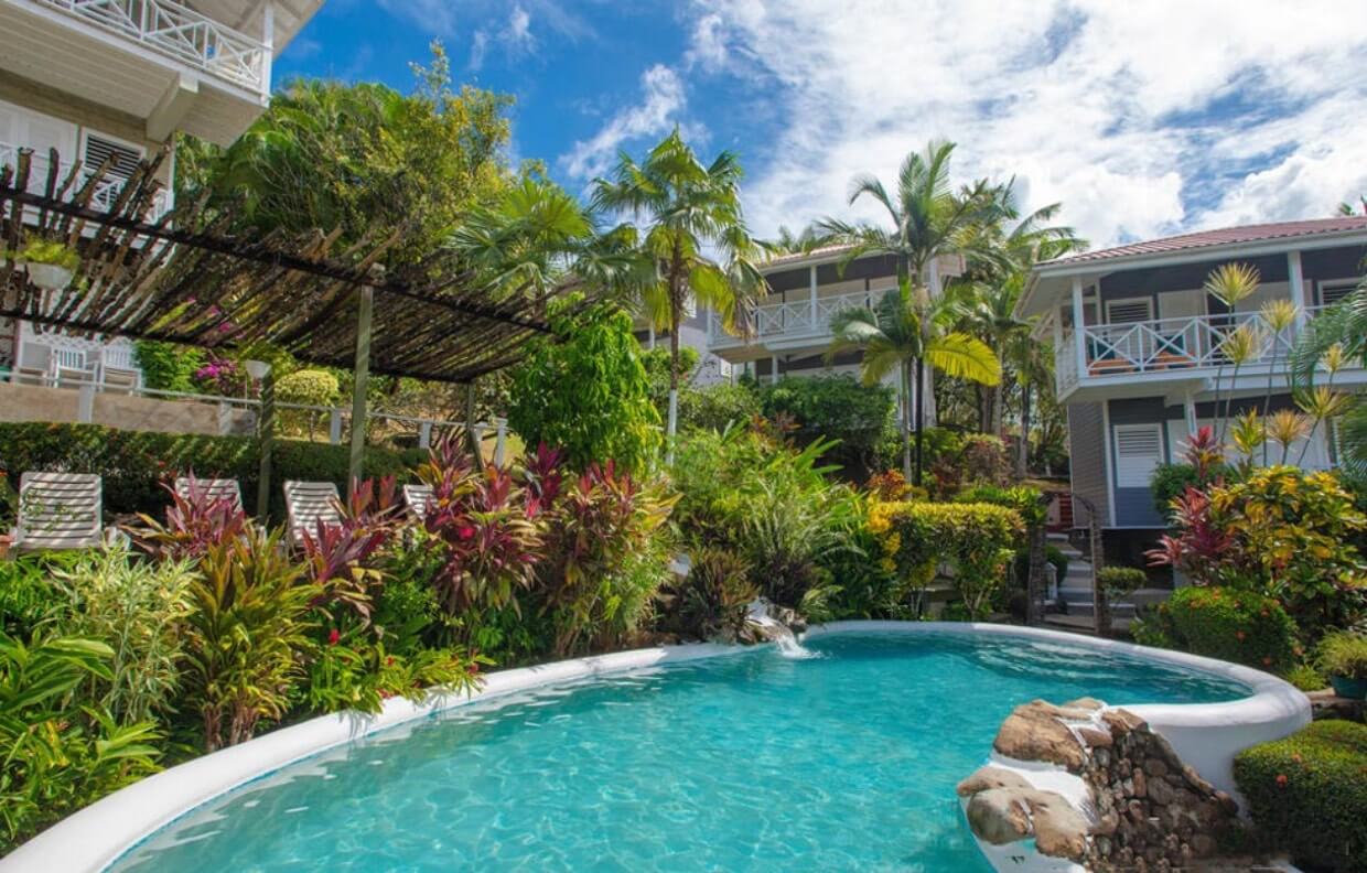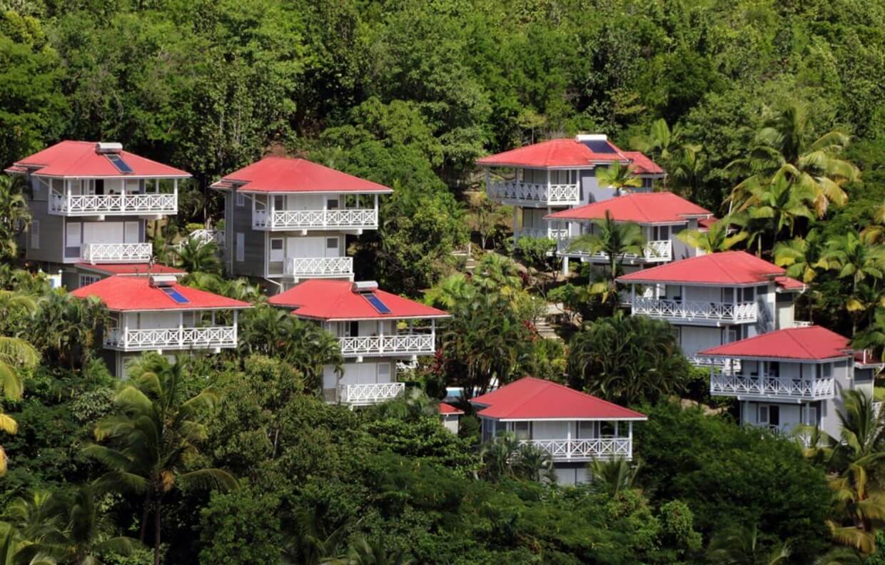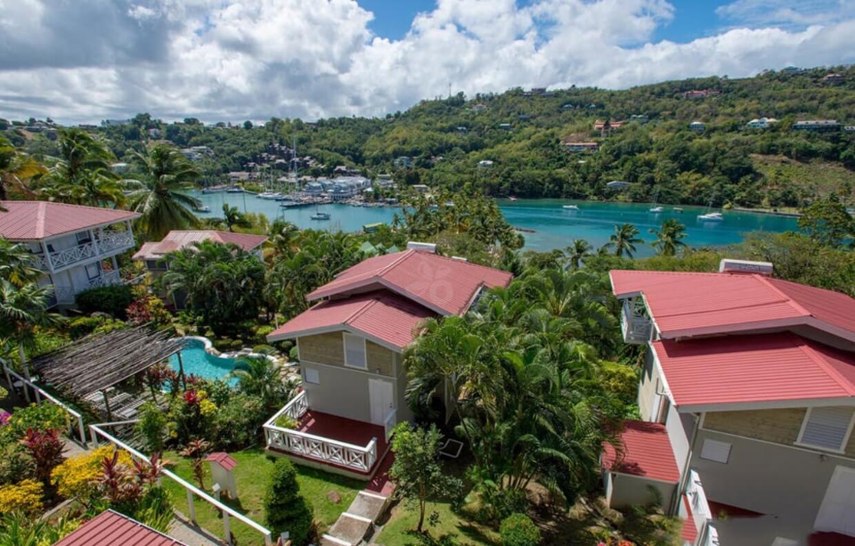 The Vacation Club is a community of 12 private sea house villas nestled amongst the tropical palms and gardens of the northern hillside of Marigot Bay. Each Vacation Club villa has It's own beautiful view overlooking the bay and marina. The units are perfectly sized to fit the needs of the active vacationer, with all the required modern amenities and services. Their impeccable location assures your privacy, quietness, and convenience when it comes to going to the beach, getting groceries, doing activities, or just exploring.