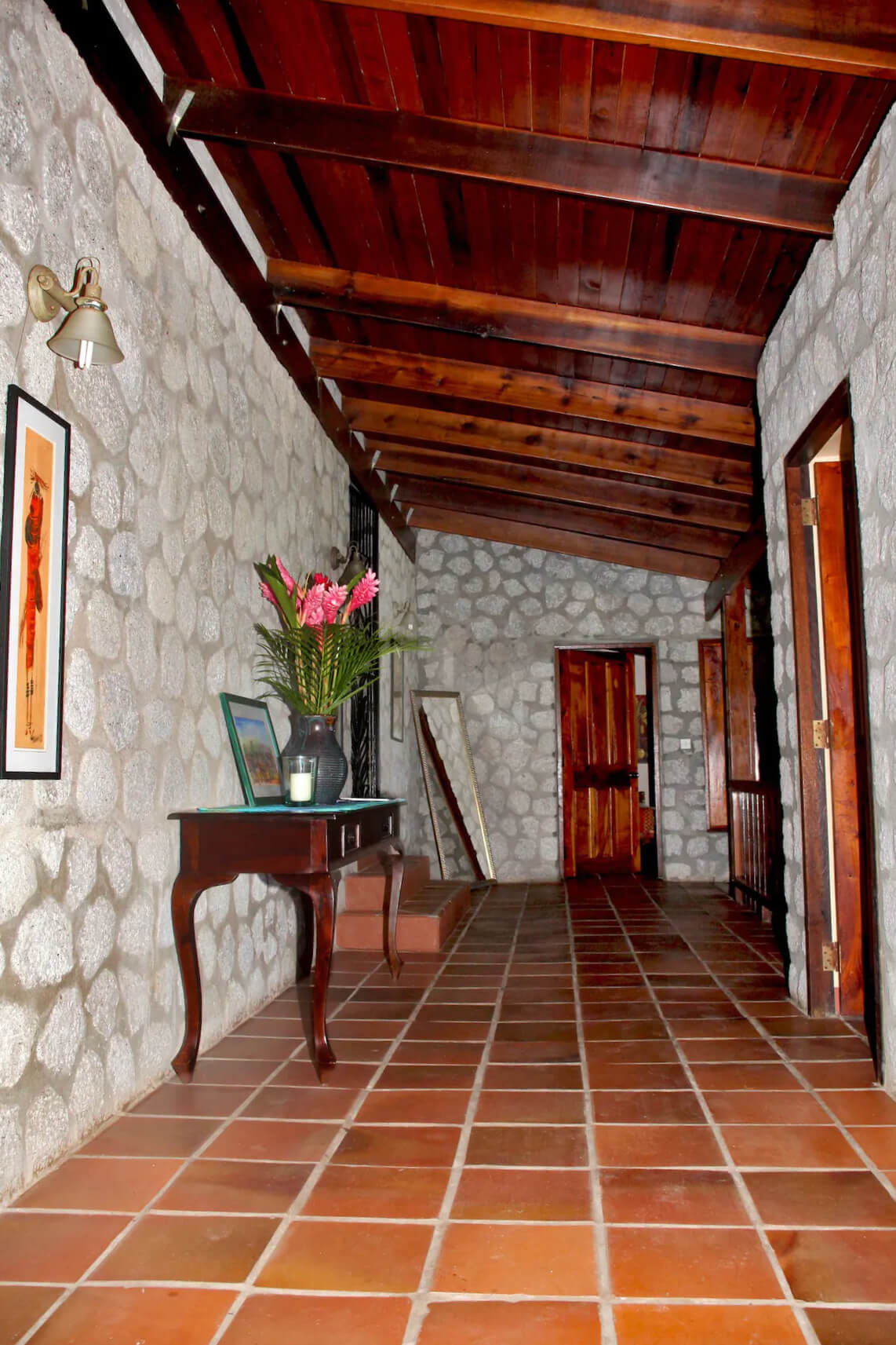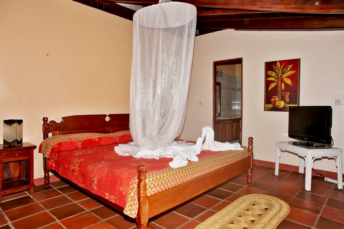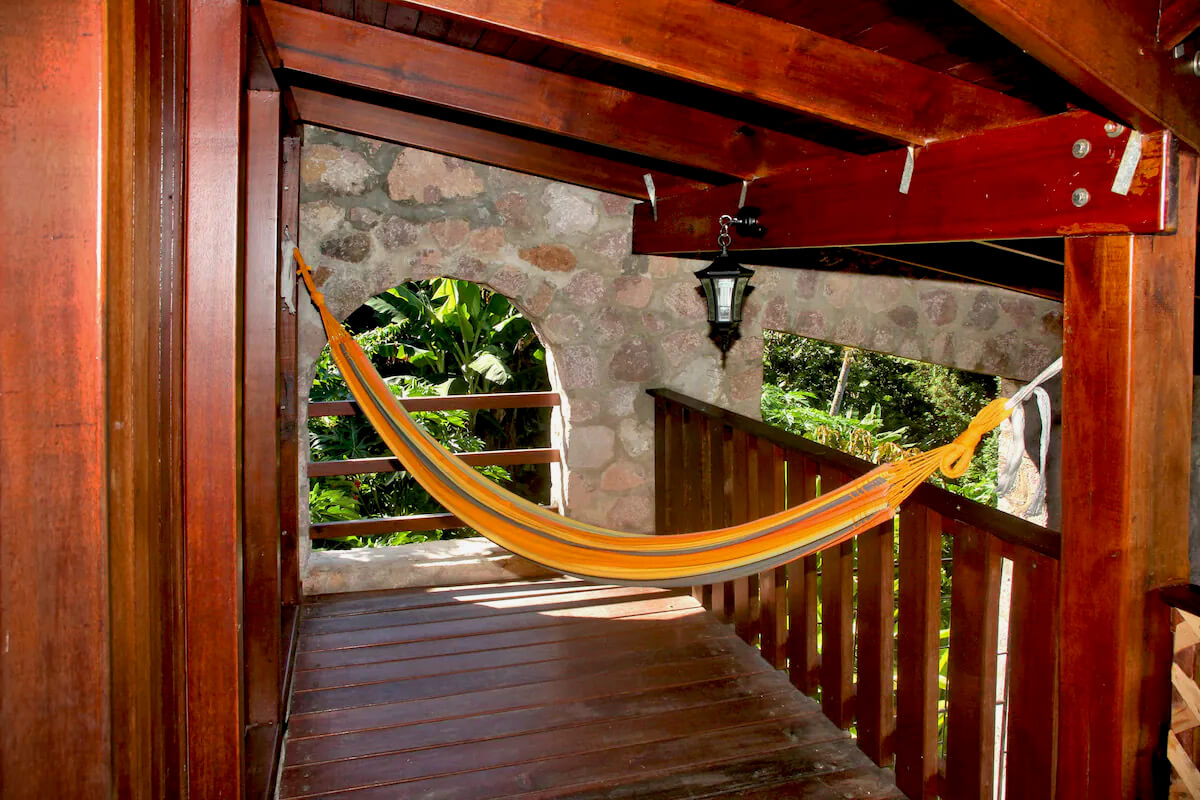 This lovely property is located 1300 ft above sea level, with a constant breeze blowing directly from the rainforest. There are fans available for guests to use at the villa. Made from volcanic stone and solid greenheart the villas have very cool interiors.