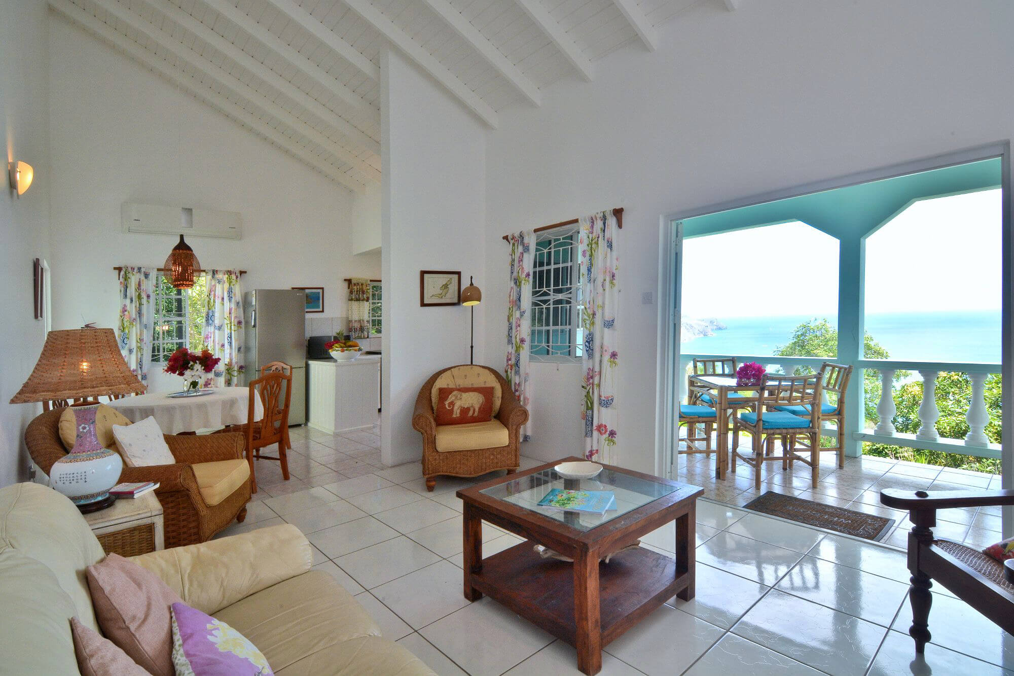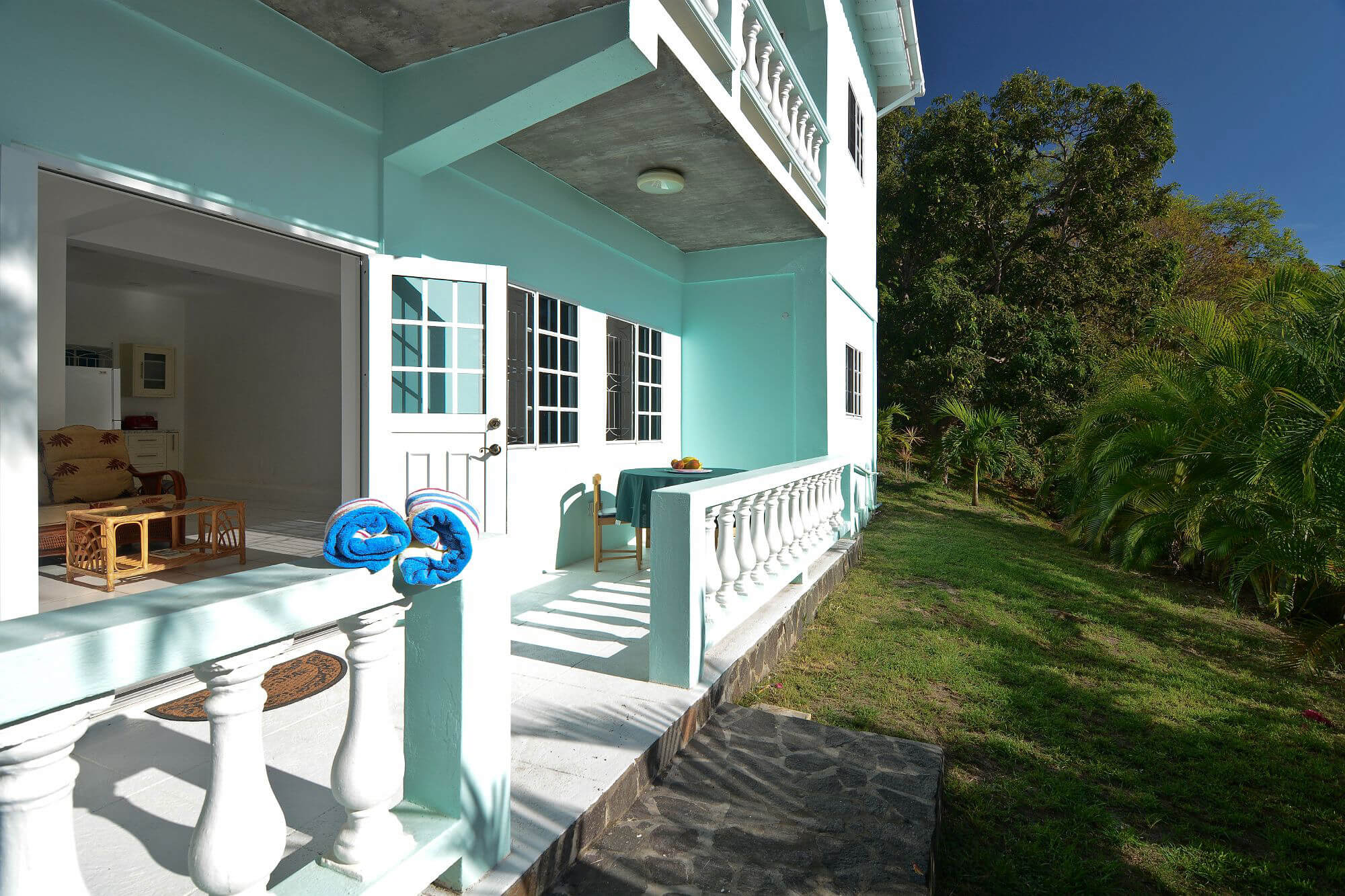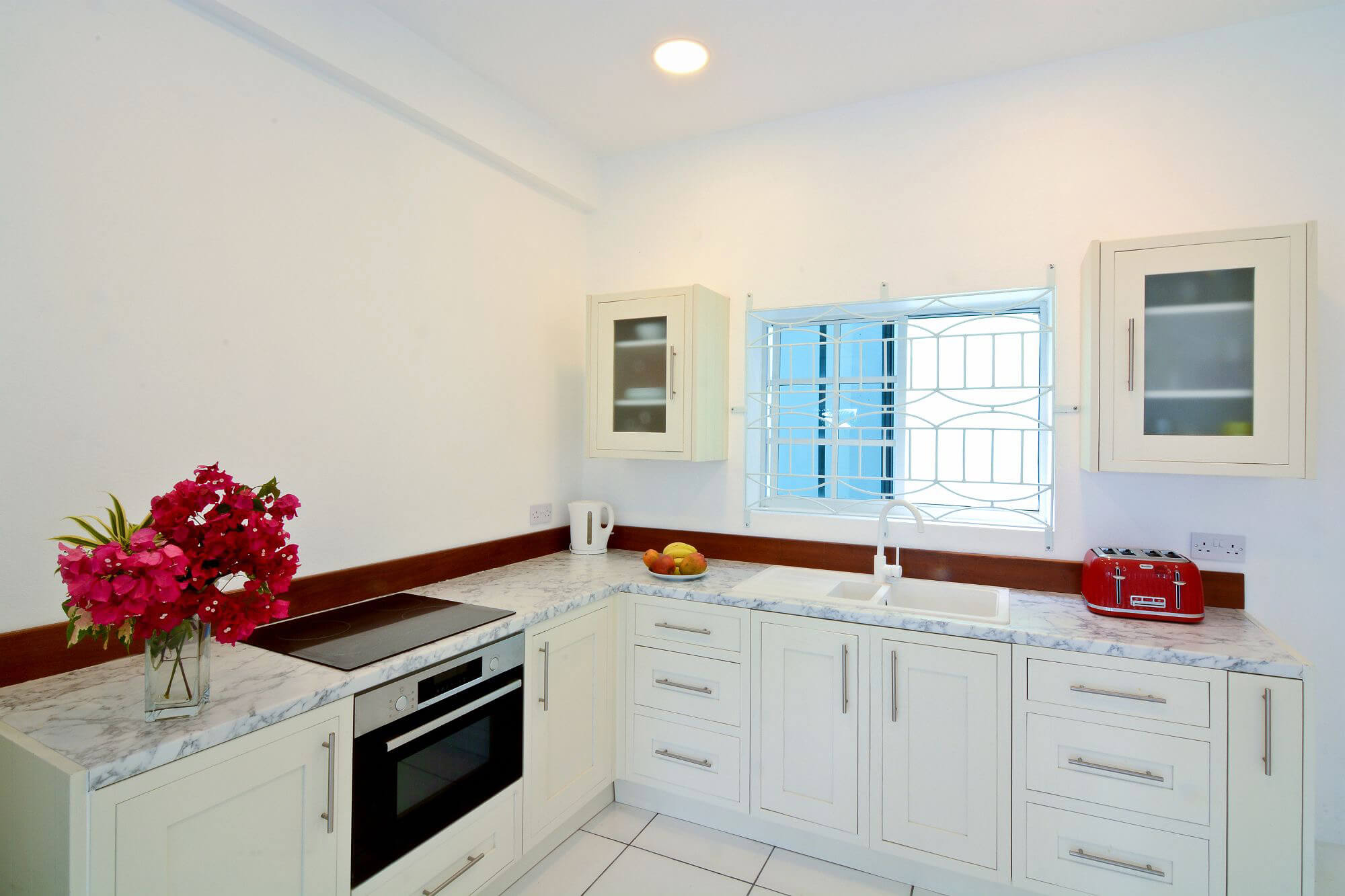 Newly built in 2020, the lower one bedroom apartment has it's own veranda with views over Admiralty Bay, a newly fitted kitchen. King or twin beds with en-suite shower and fans.