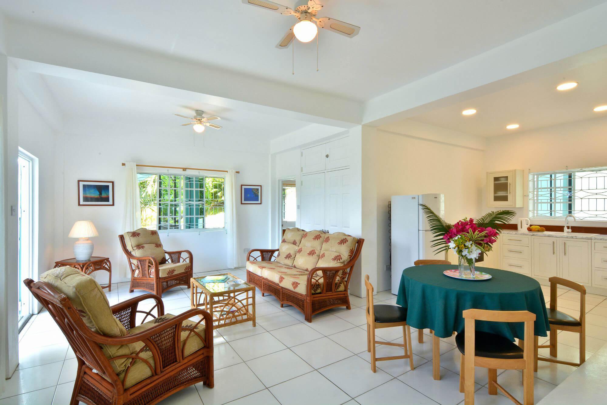 The living area is homely and well equipped with all you will need for a relaxing and enjoyable island experience. The open plan design offers maximum light into the property as well as breathtaking views over the bay. Ceiling fans are installed throughout the property.