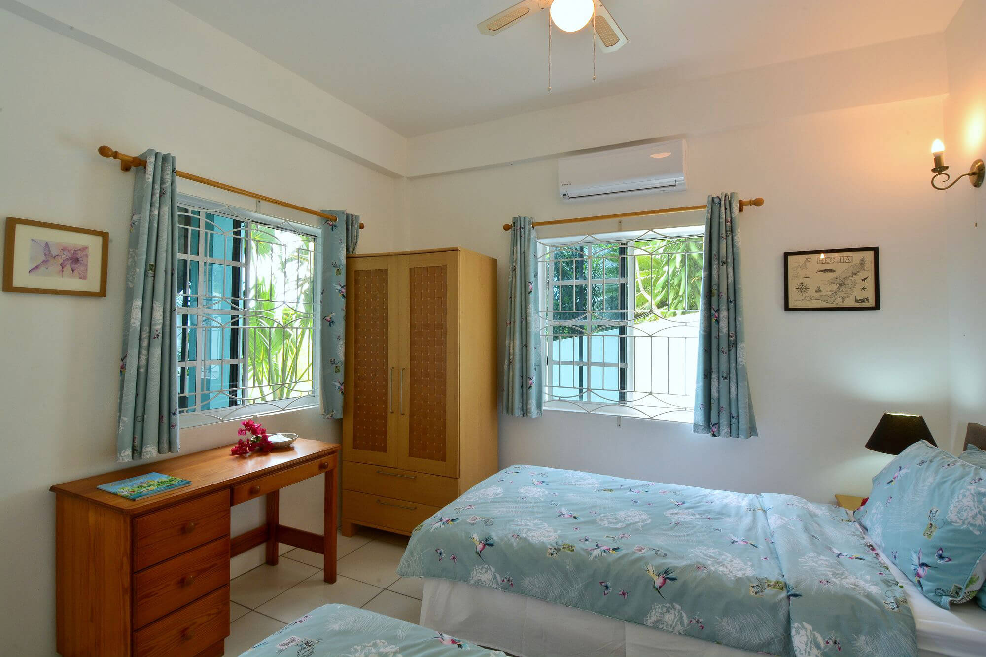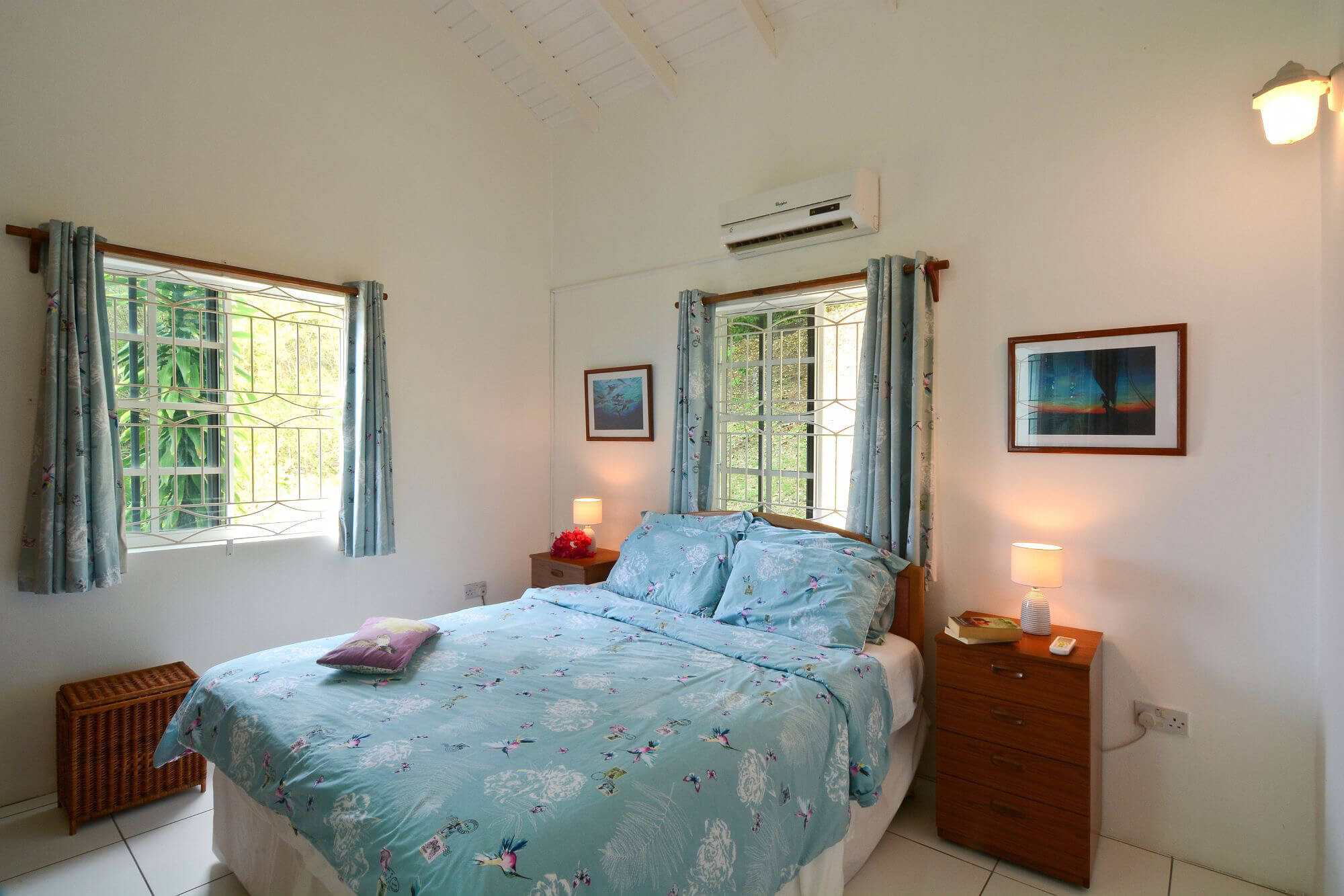 The Main bedroom contains a four posted bed, en suite shower This room is air conditioned and also has ceiling fan so you can be assured a comfortable night no matter your preference.