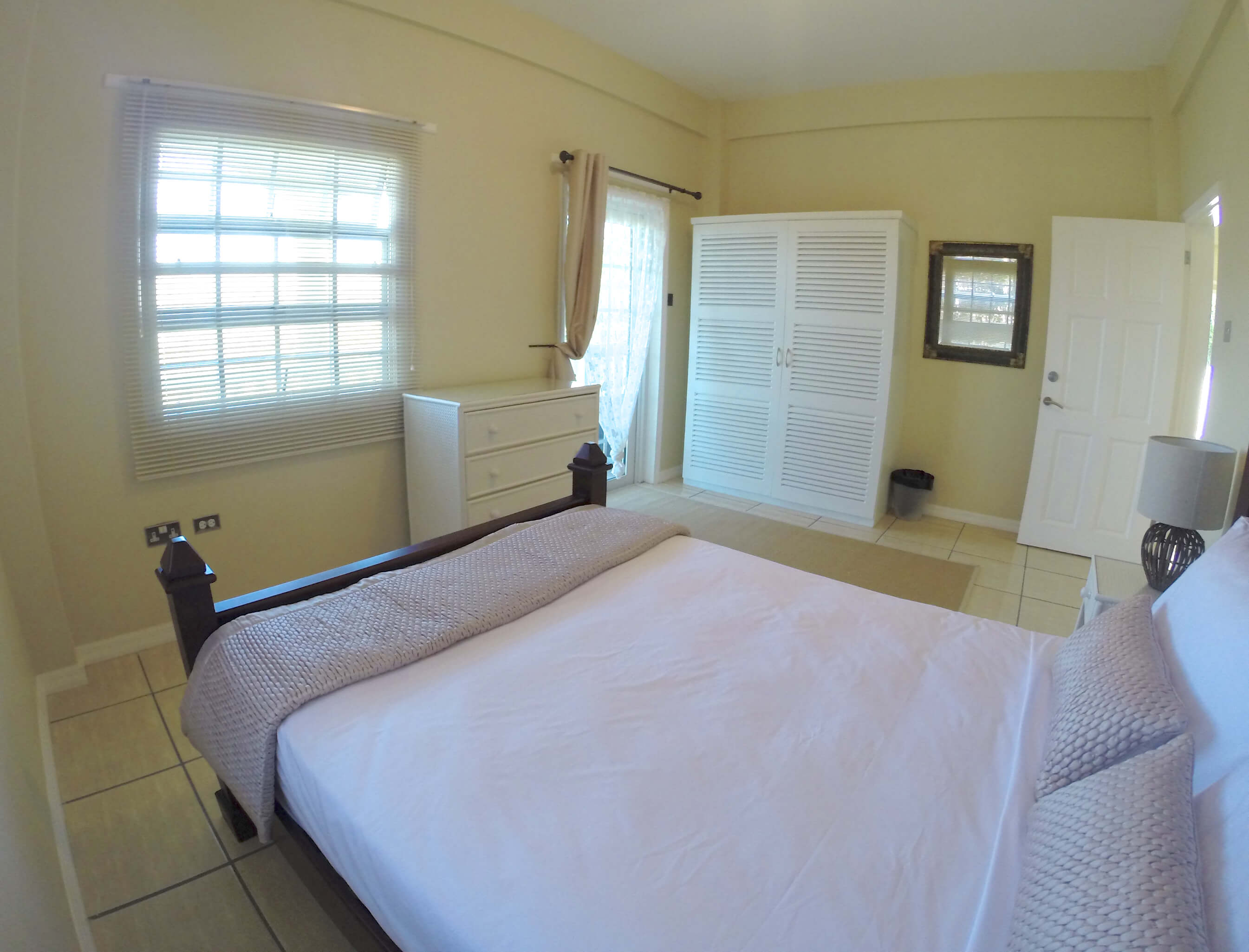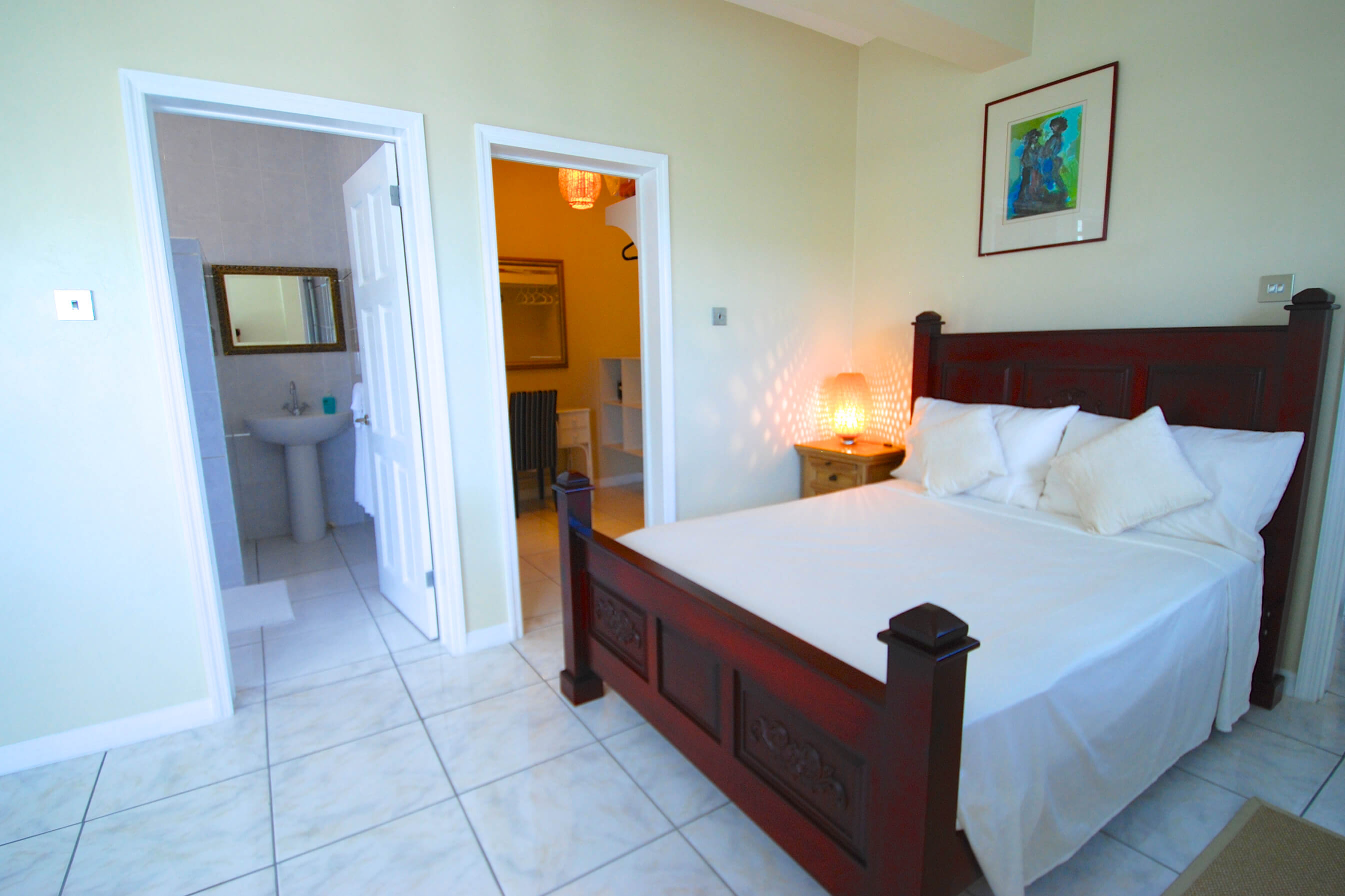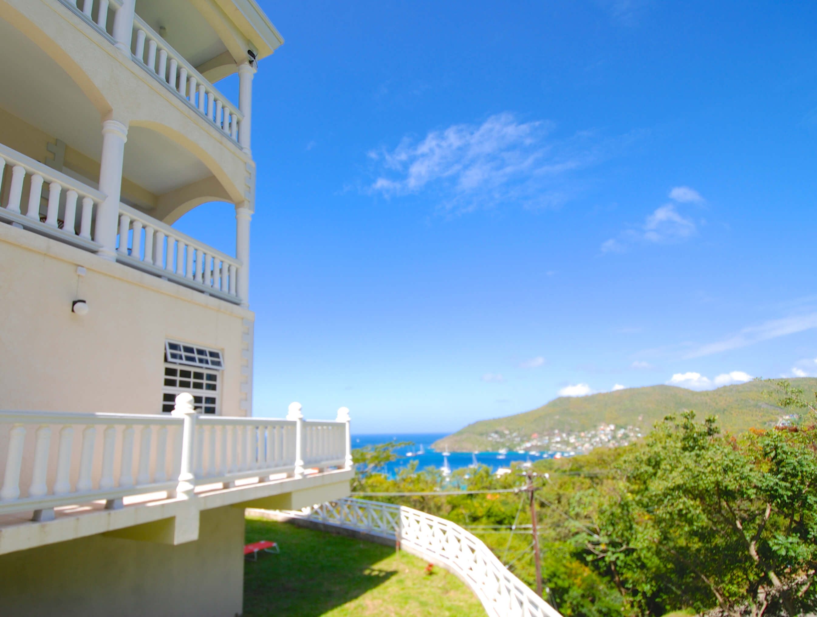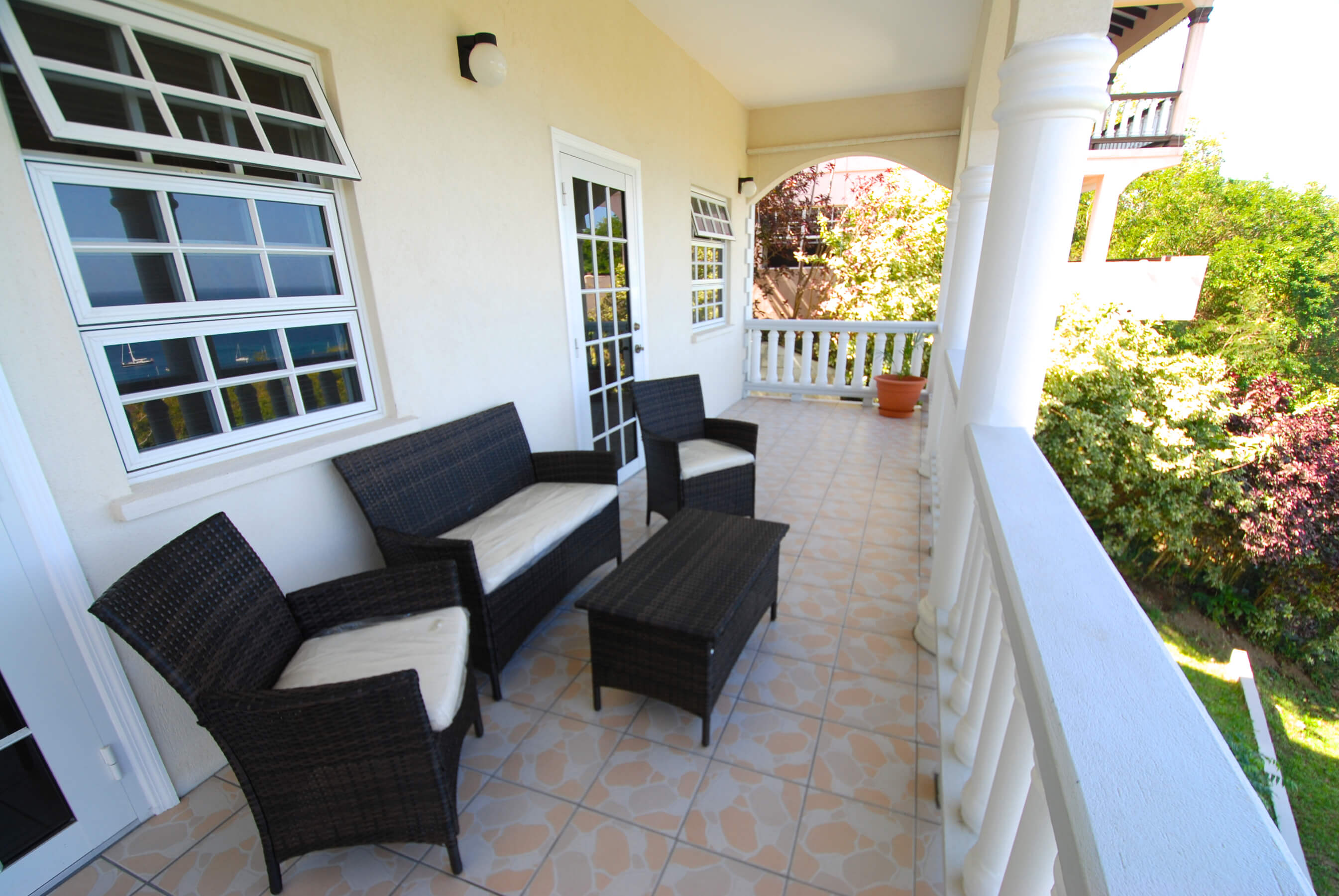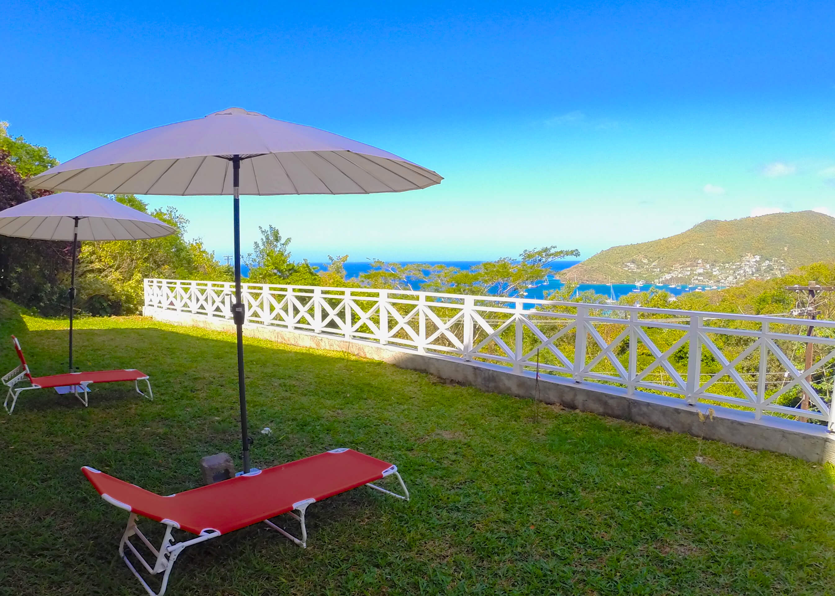 These apartments sit on a great location in the sought after and peaceful Bequia Estates. The 2 bedroom upper apartment combined with the lower 1 bed apartment would be ideal for a group of 6 guests with lots of space and privacy. Access between the 2 apartments is via external steps. The elevated location on the headland overlooking Admiralty Bay offers wonderful expansive views and cooling breezes whilst still close enough to be able to take a stroll down to the islands best beaches or into Port Elizabeth. There is also ample parking above the property.