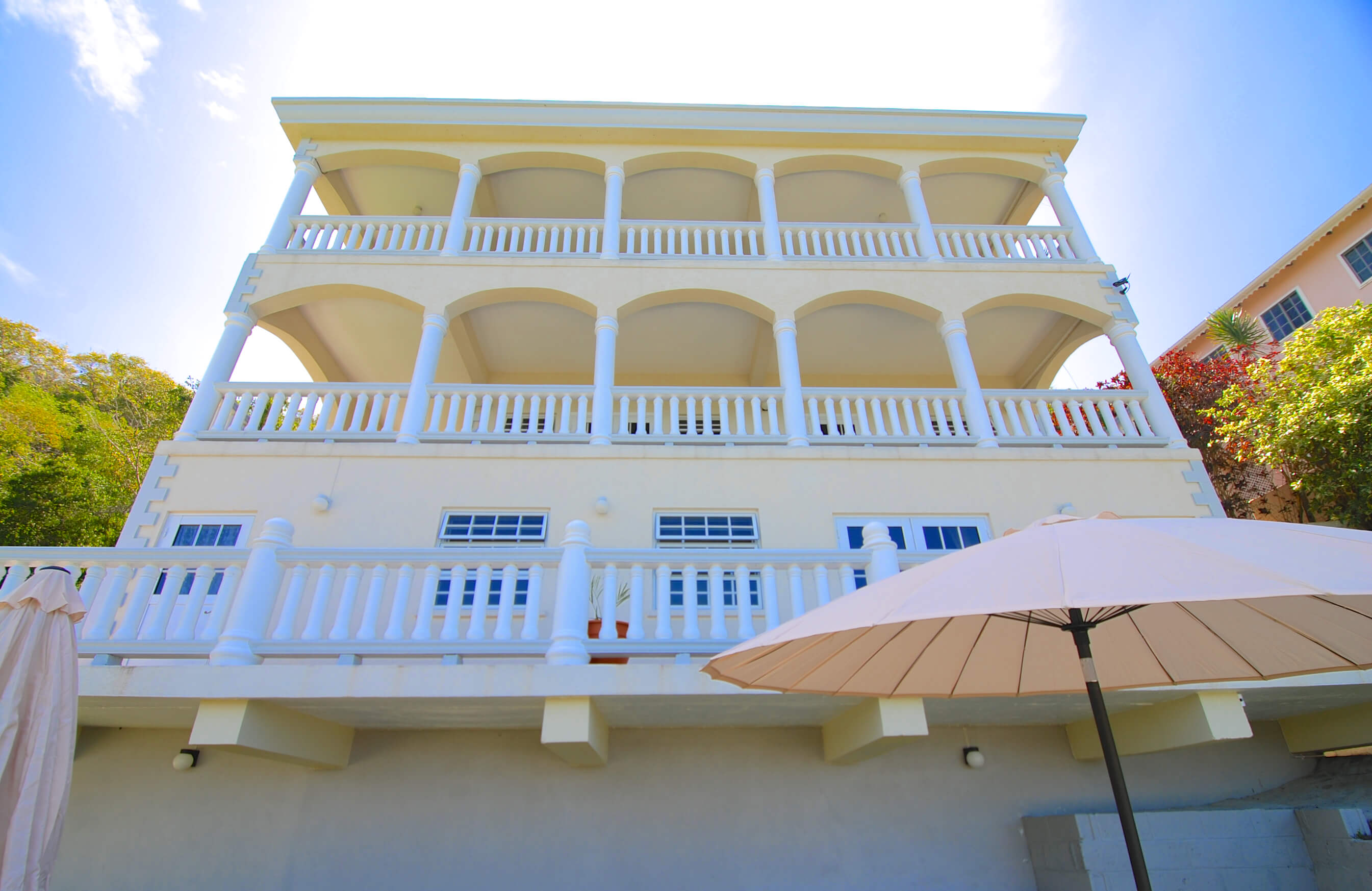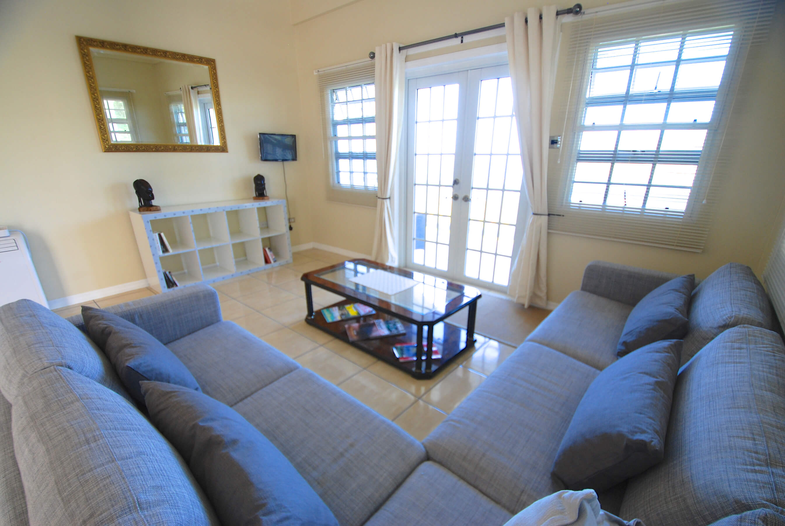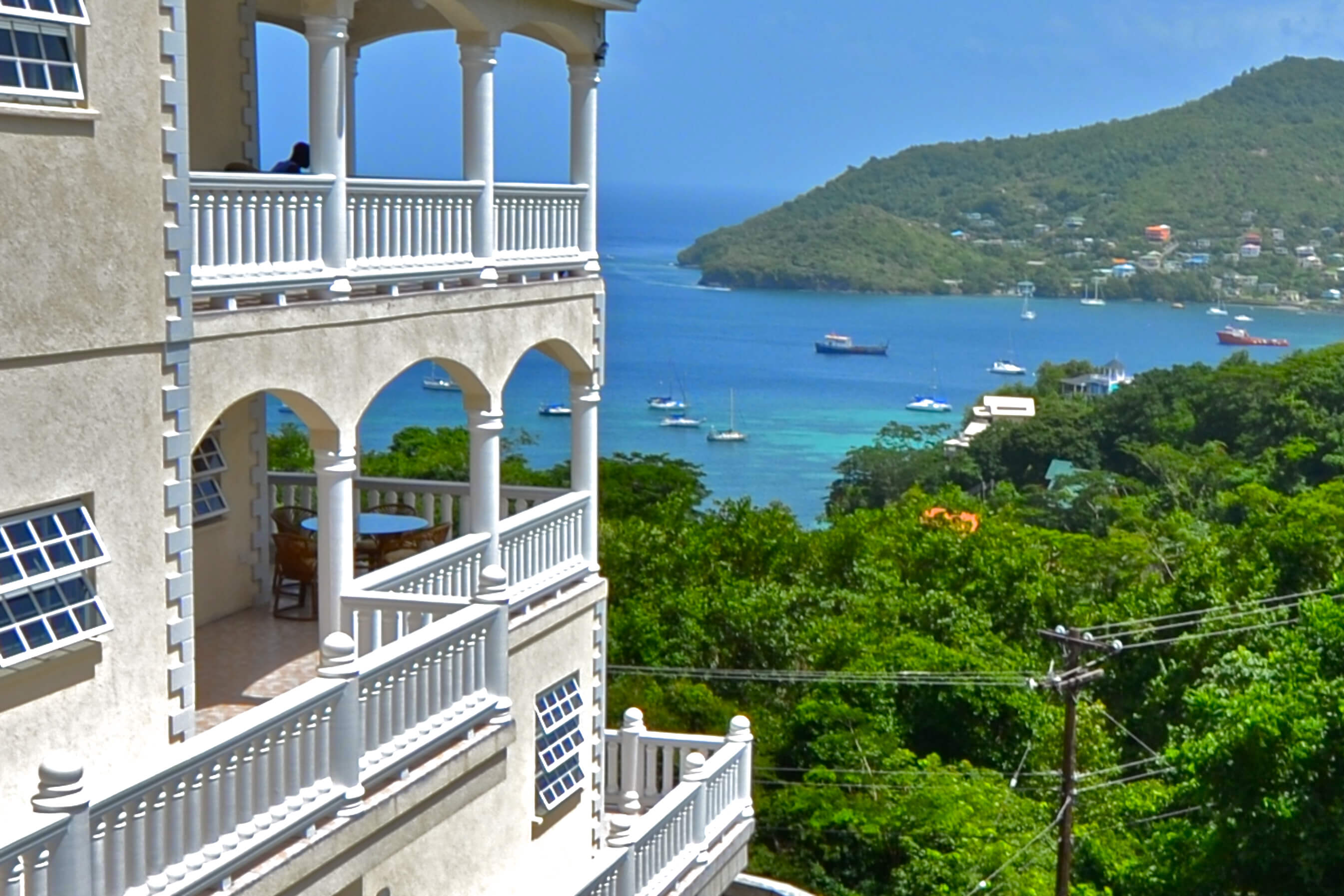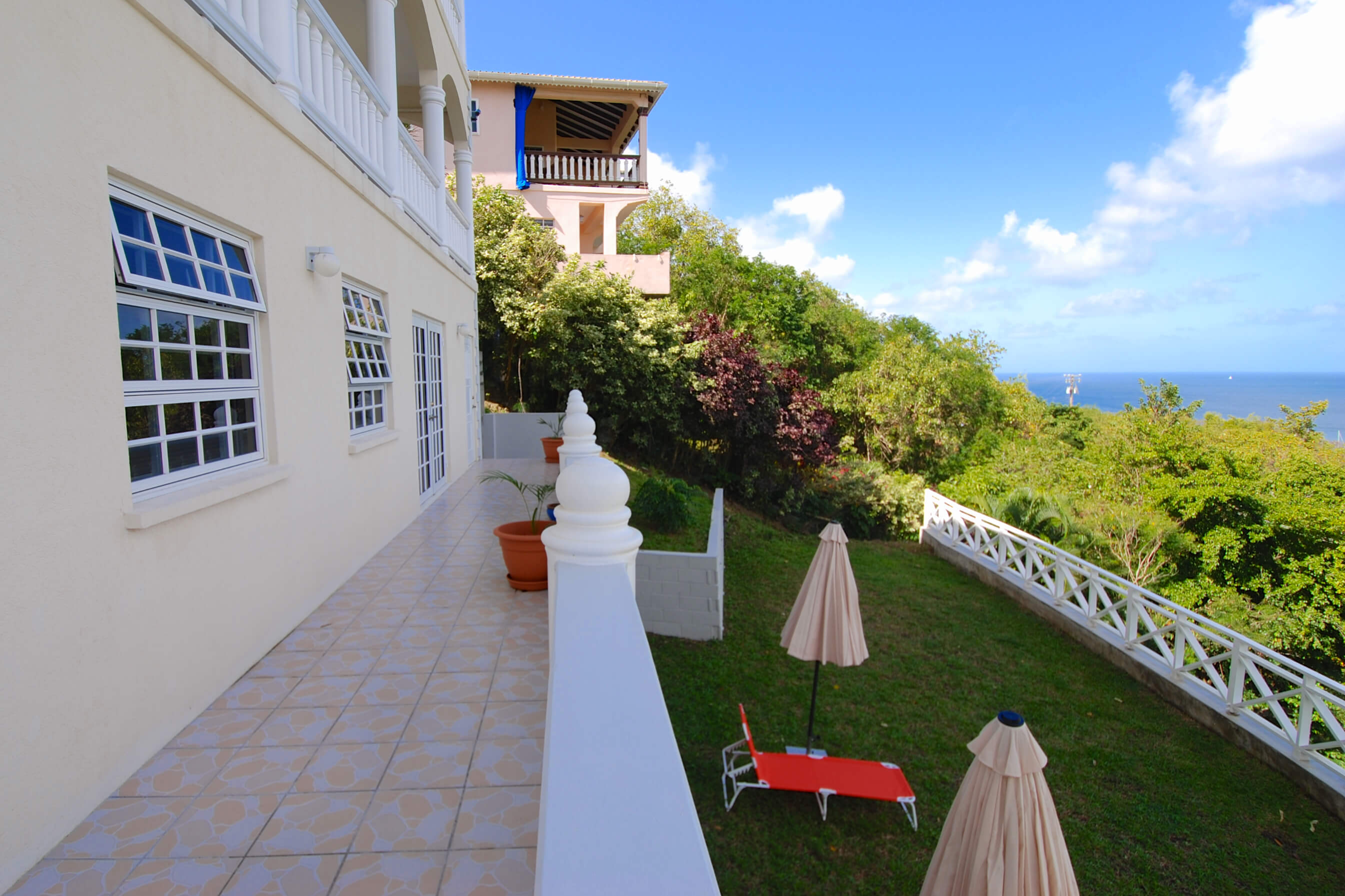 These apartments sit on a great location in the sought after and peaceful Bequia Estates. The 2 bedroom upper apartment combined with the lower 1 bed apartment would be ideal for a group of 6 guests with lots of space and privacy. Access between the 2 apartments is via external steps. The elevated location on the headland overlooking Admiralty Bay offers wonderful expansive views and cooling breezes whilst still close enough to be able to take a stroll down to the islands best beaches or into Port Elizabeth. There is also ample parking above the property.