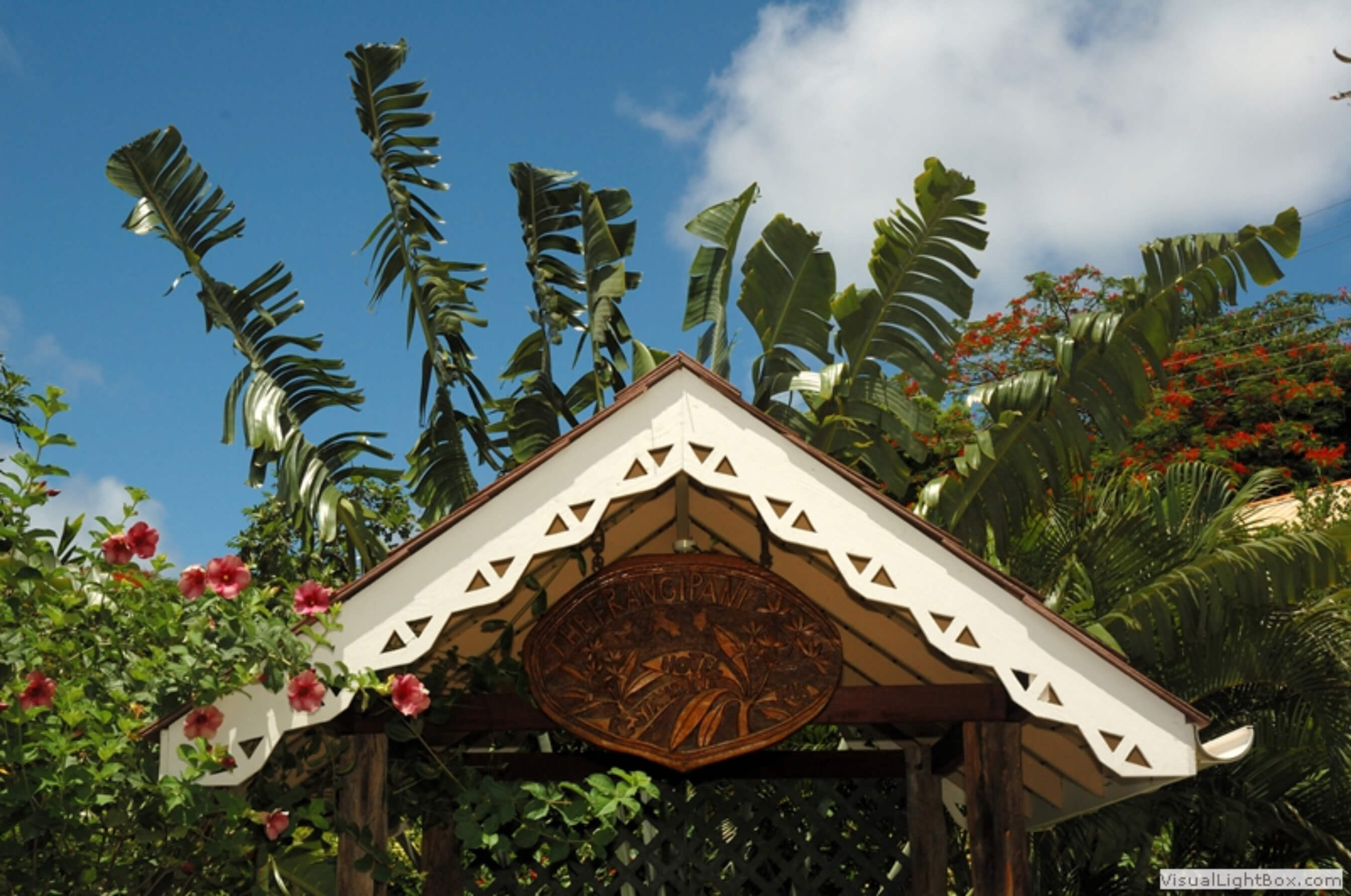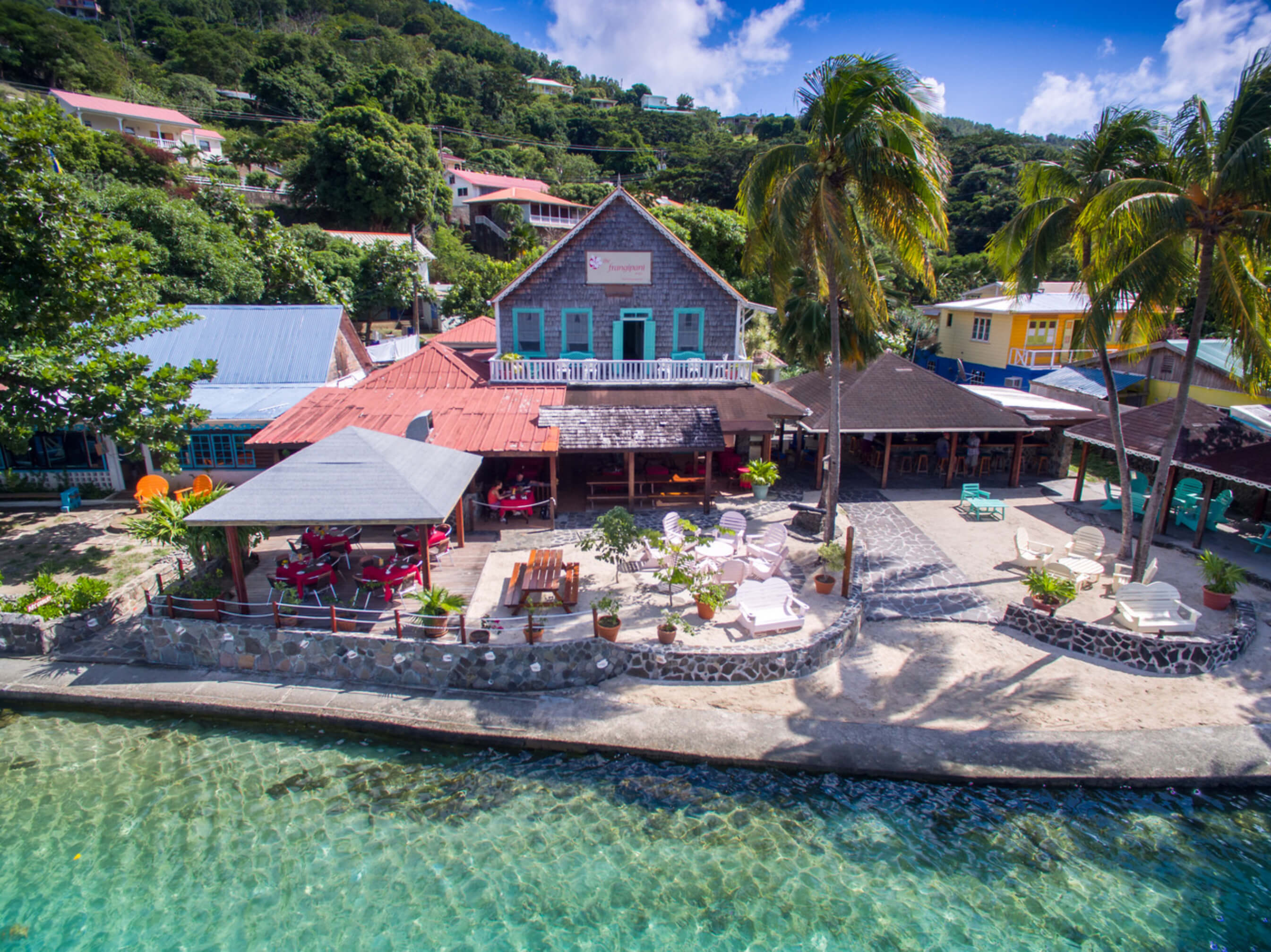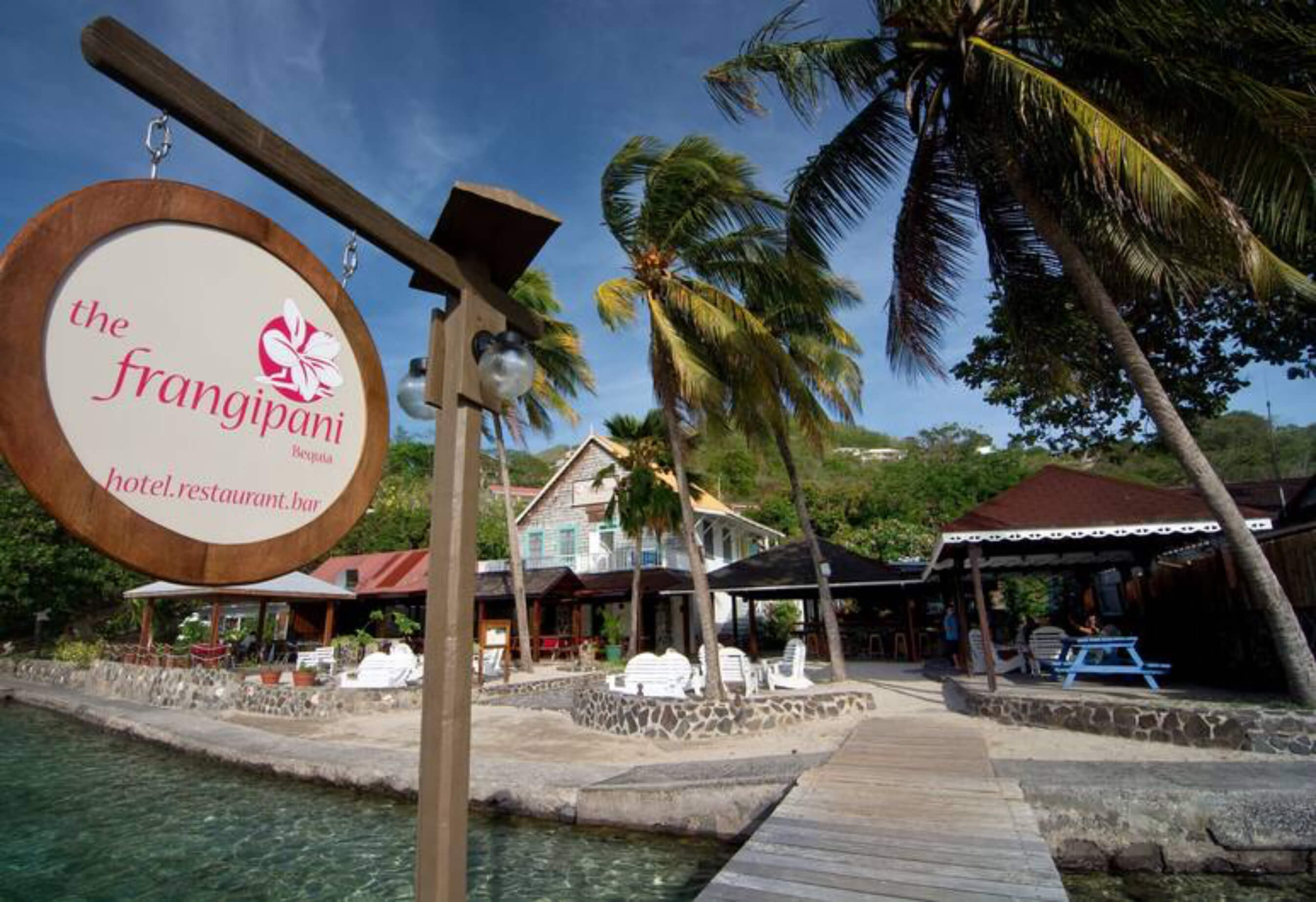 Situated along the Belmont Walkway overlooking Bequia's harbour The Frangipani Hotel was originally built as a large private residence on the island. Built by a local sea captain in 1898 as a family home this familiar landmark in Belmont is a 2 storey shingle-sided building that sits gracefully overlooking the harbour activity that hasn't altered in over a century. Over the last 40 years the Frangipani has been run as a hotel. Named after the common name for Plumeria, an exotic highly perfumed plant The Frangipani is established on Bequia as one of the oldest and most welcoming hotels on the island.