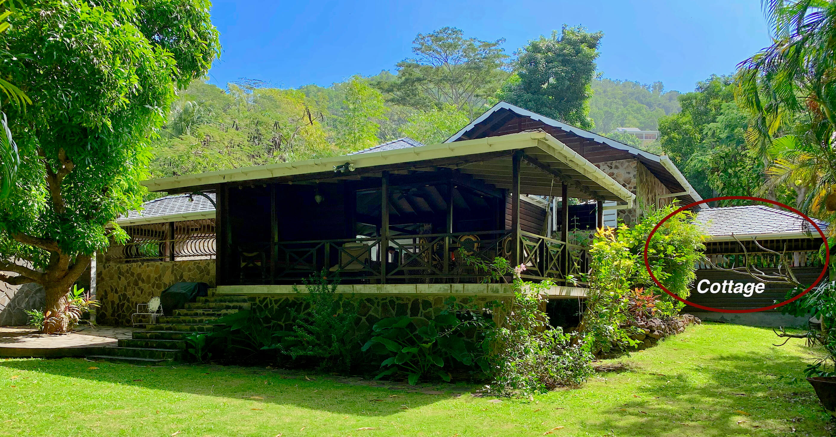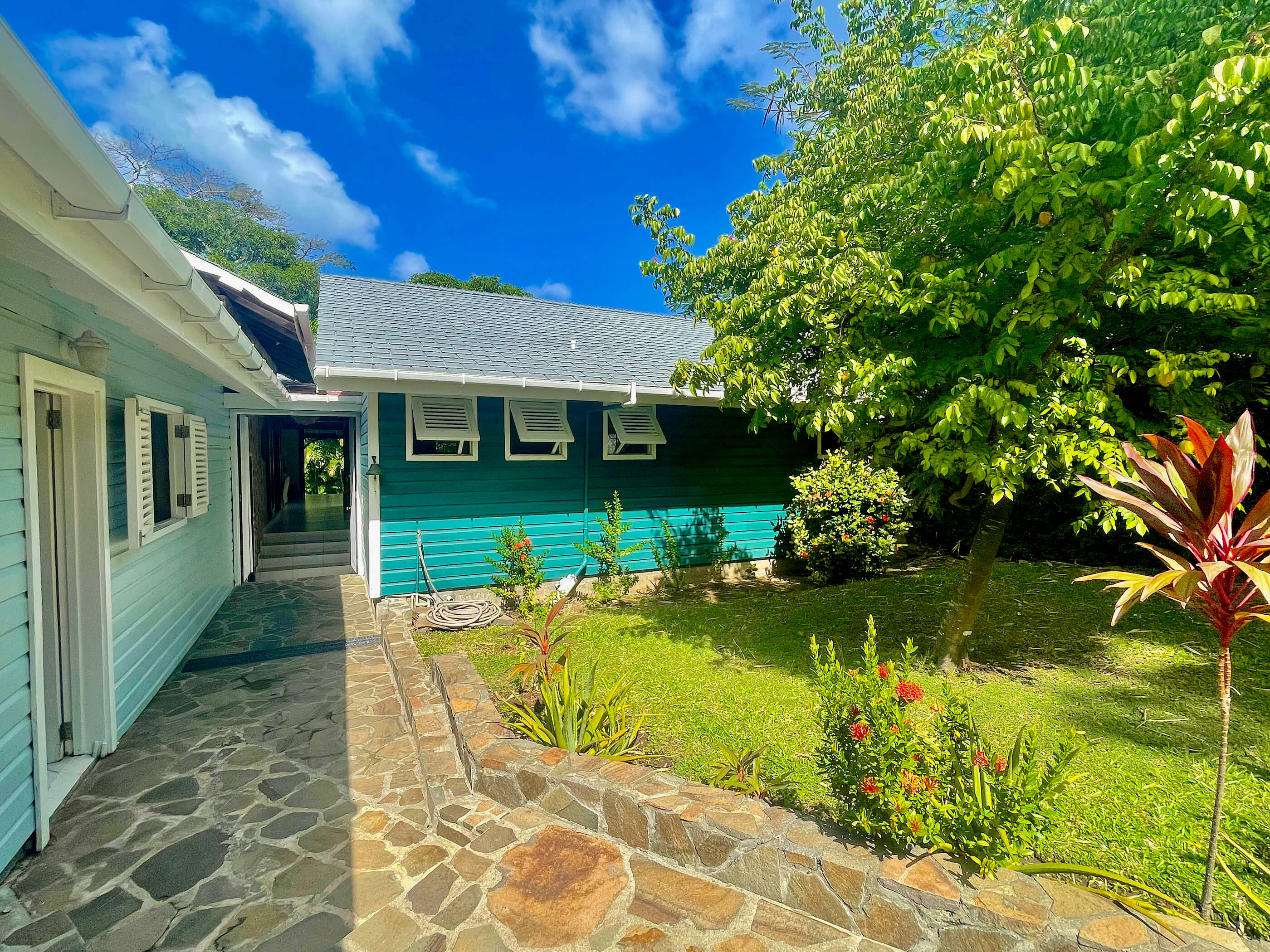 The cottage has been built using local Bequia stone and hardwood and these materials feature inside creating a real tropical hideaway atmosphere. There are cool tiled floors in the bedrooms and bathrooms, each bedroom has a ceiling fan and is air conditioned. French windows lead out from each bedroom to the enclosed gardens and access to the beach footpath.