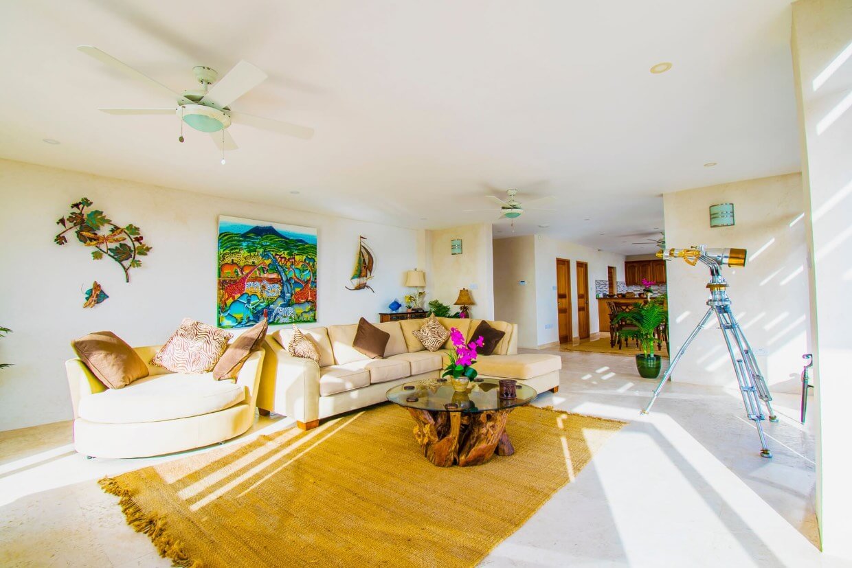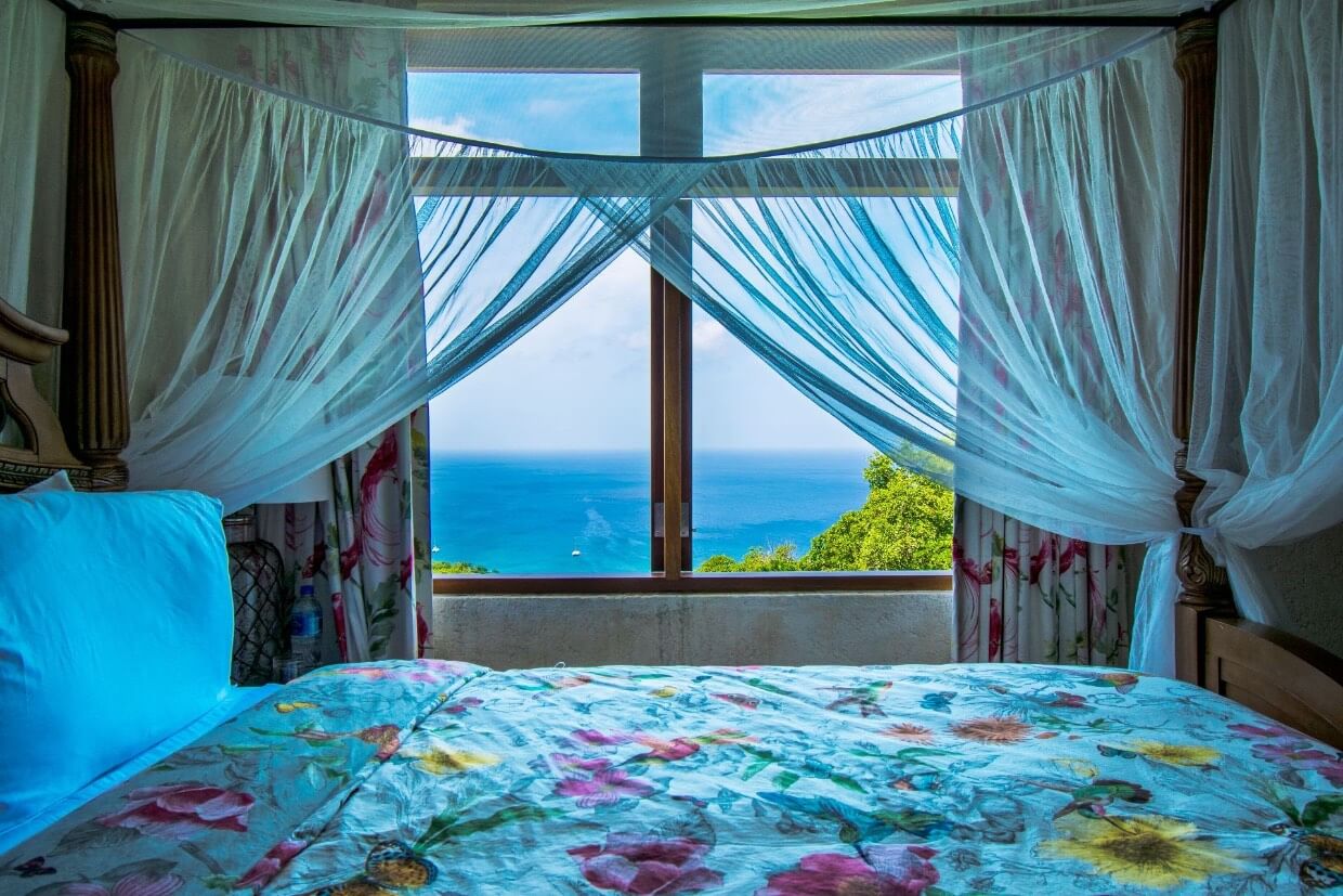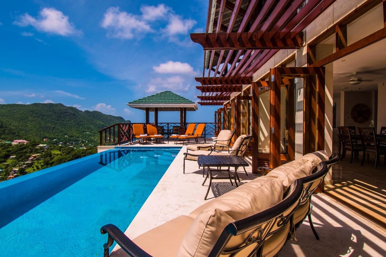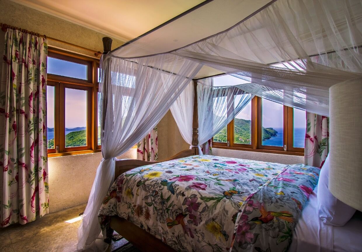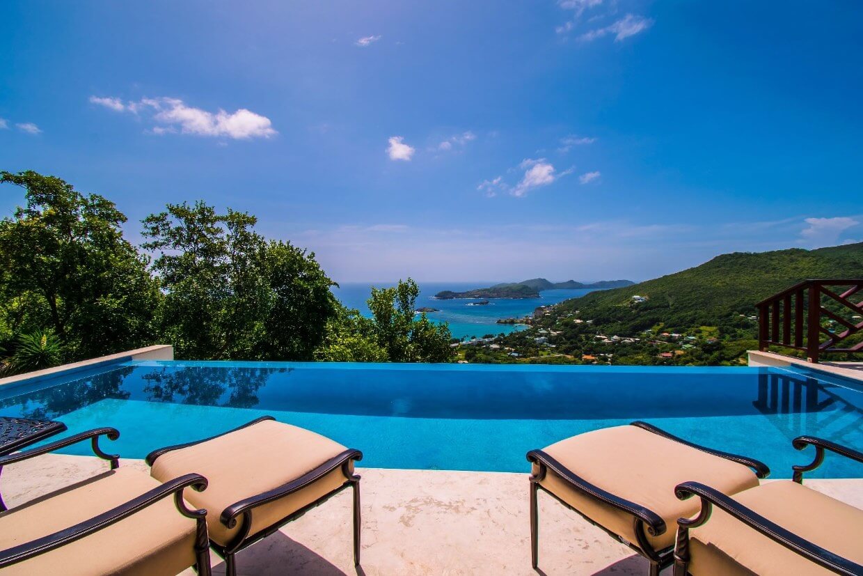 Whilst predominantly overlooking the South coast, the high aspect of this villa also allows views West and North, providing both sunsets and sunrises during certain months. The views south down over Friendship Bay and the entire southern island chain stretching into the distance are simply stunning.