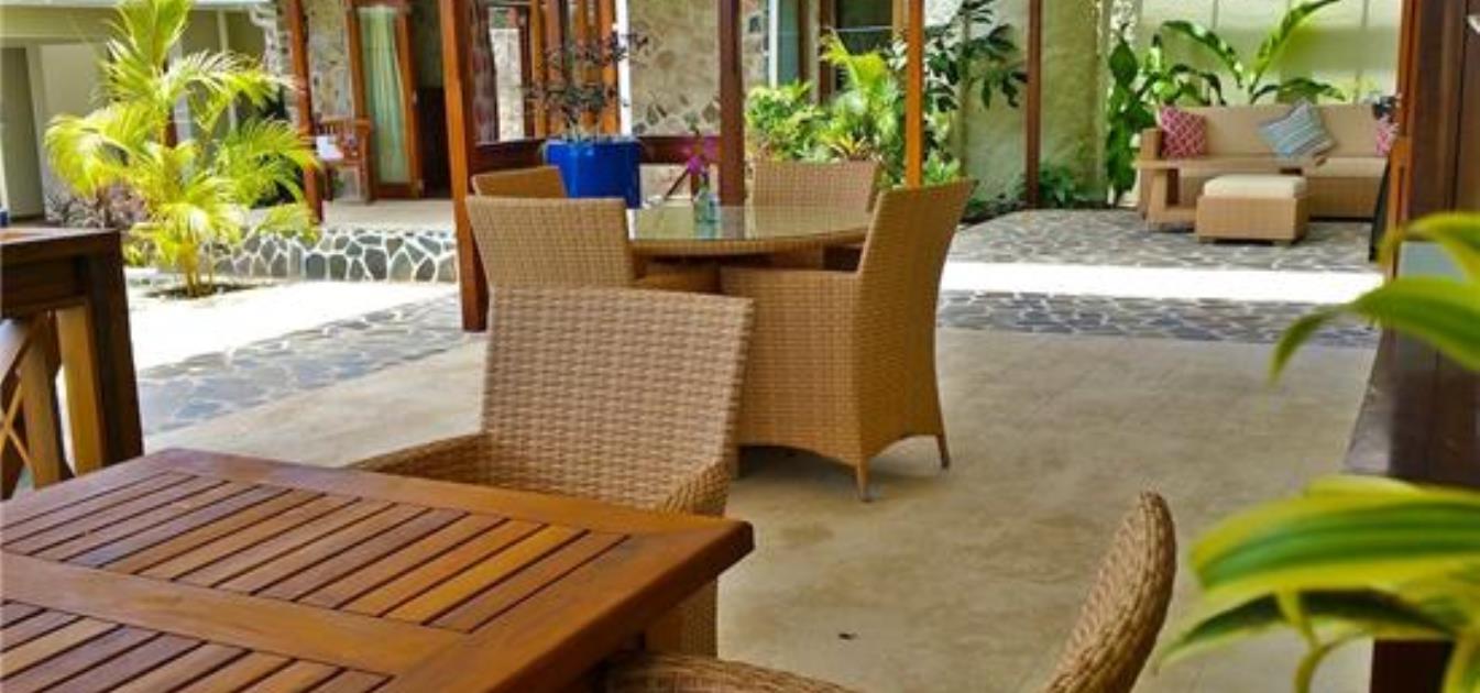 There are endless outside spaces for shaded dining areas where you can enjoy your meals, or maybe just a snack and a cocktail by the pools! If you would prefer, there is also a nice inside dining area just off the kitchen in the main top villa.