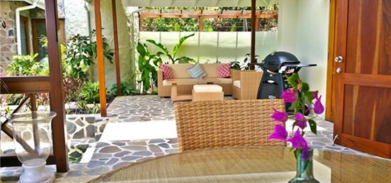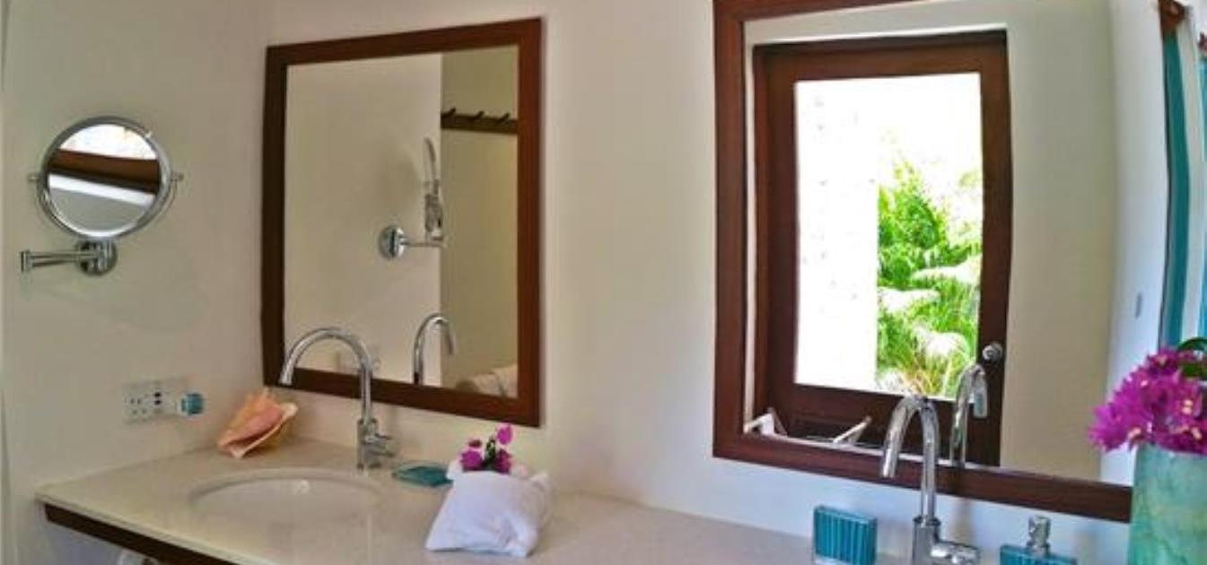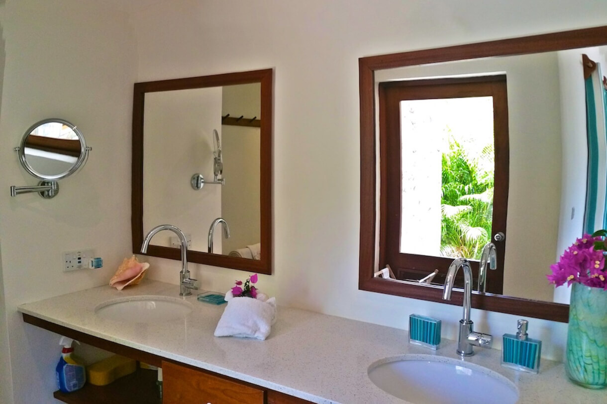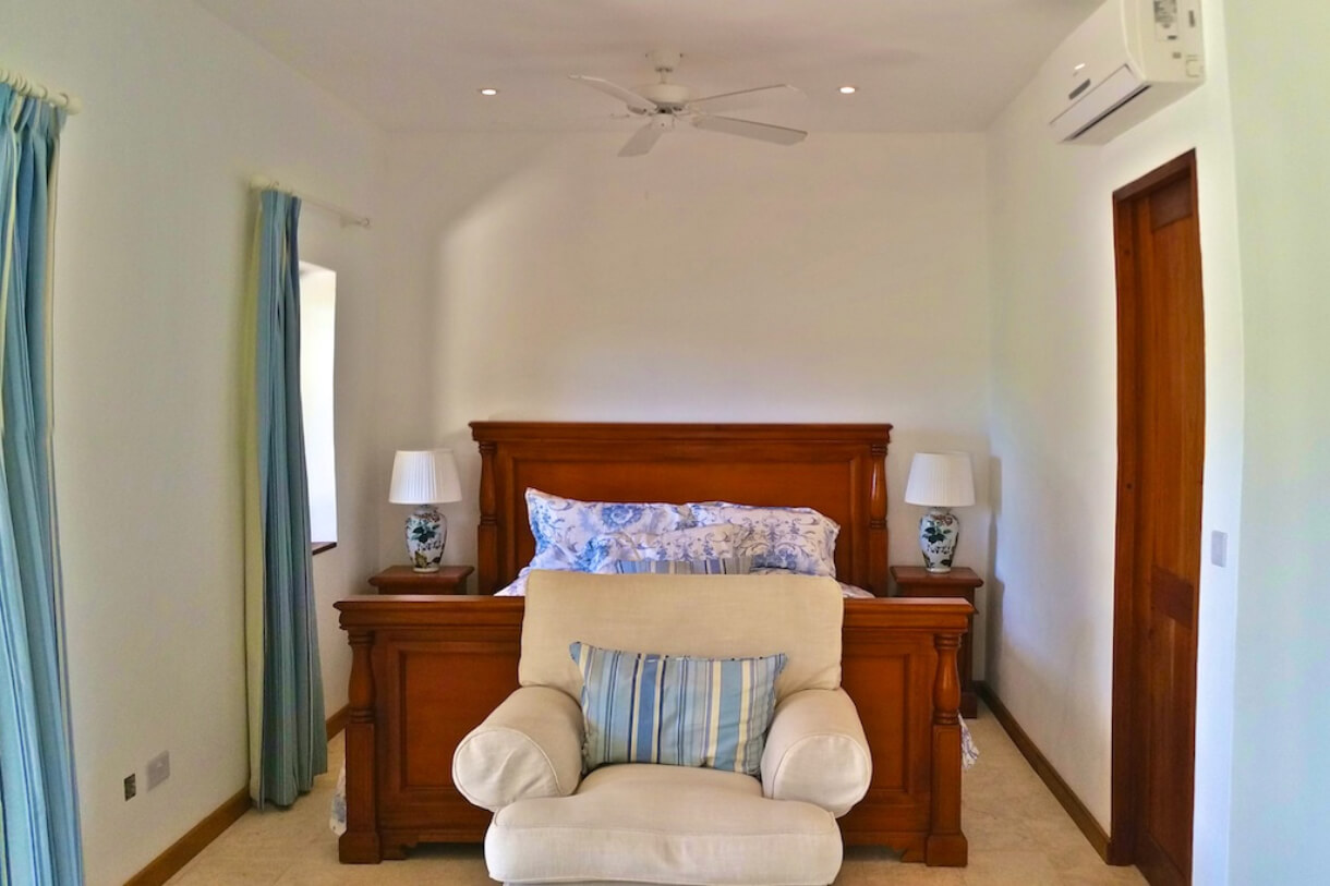 Crescent Beach Villa features 2 double bedrooms and a twin bedroom, all have en suite shower rooms. The master bedroom with Super King Bed has a delightful outdoor shower. The second double contains a Queen sized bed. The third central bedroom contains 2 twin beds.