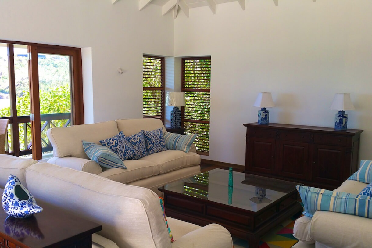 The floors are highly polished wood and the entire style of the interiors is based upon the Mustique model reflecting a classic colonial charm throughout. The furnishings are crisp, modern and bright and reflect the owners joy with the property.