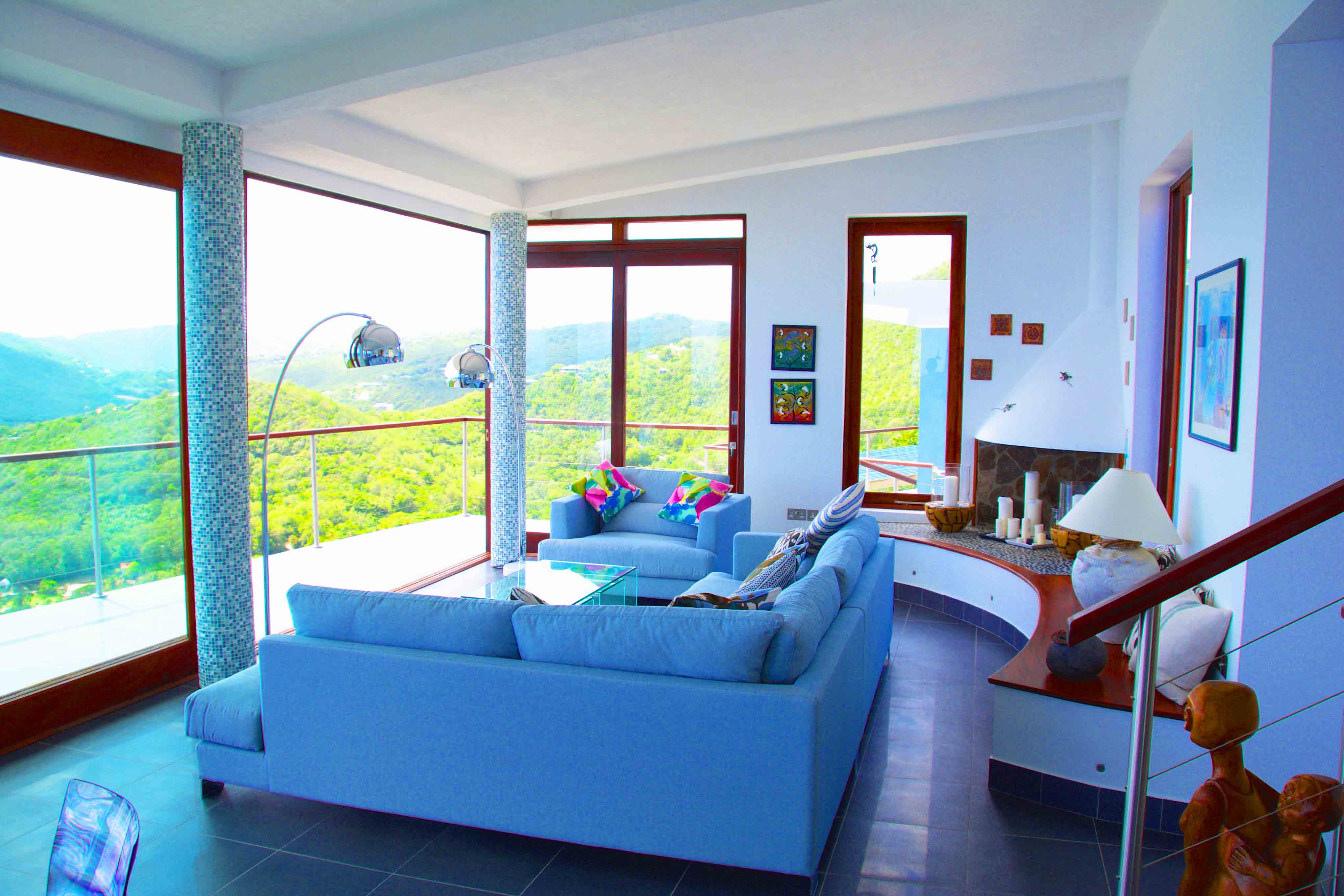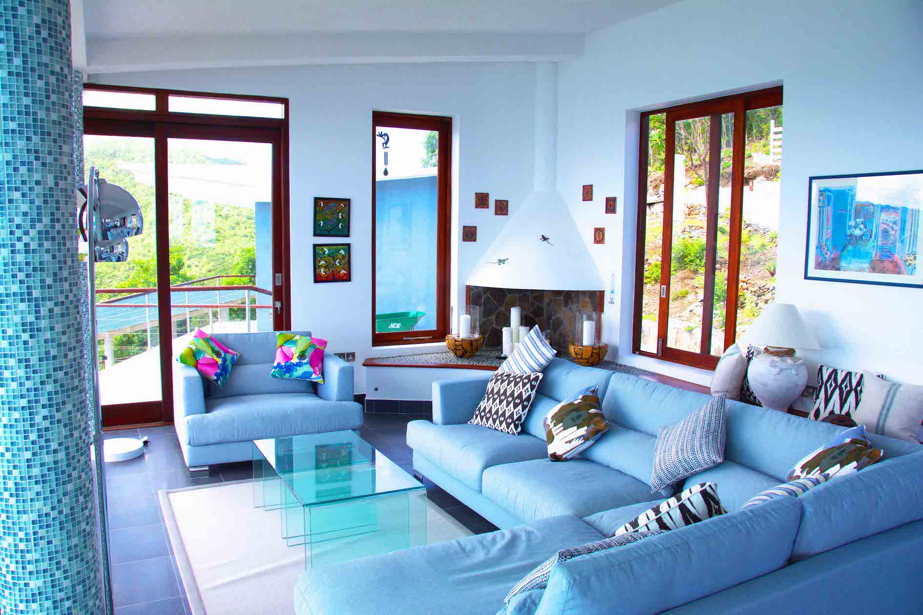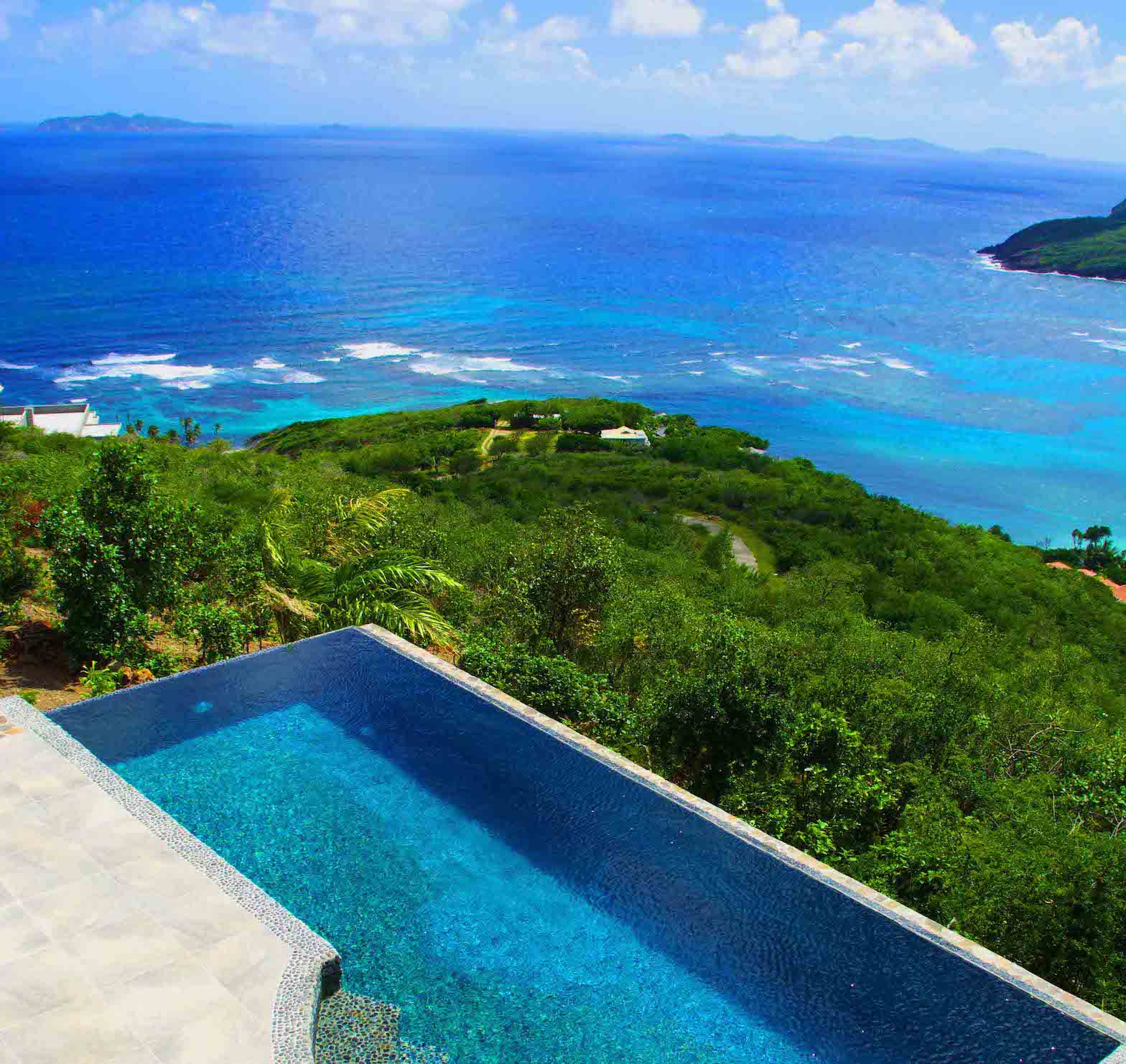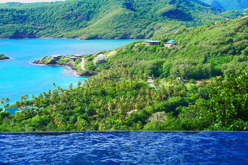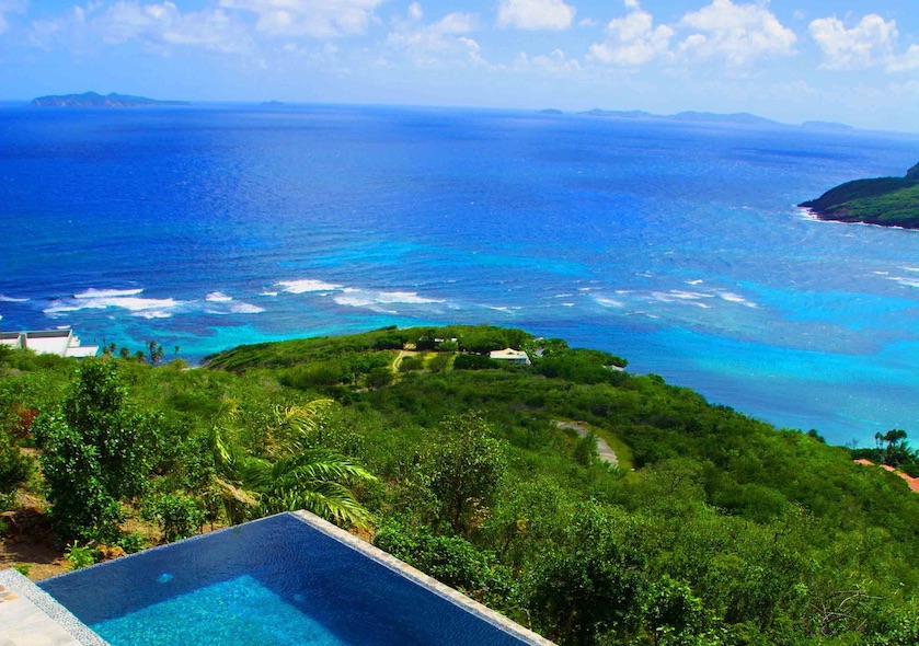 The 180 degree view ranges from far reaching vistas across the ocean to the east, Mustique and the idyllic turquoise waters of Crescent Bay to the south, and the lush green rolling landscape of the island to the west. It's hillside location means that there are constant cooling breezes.