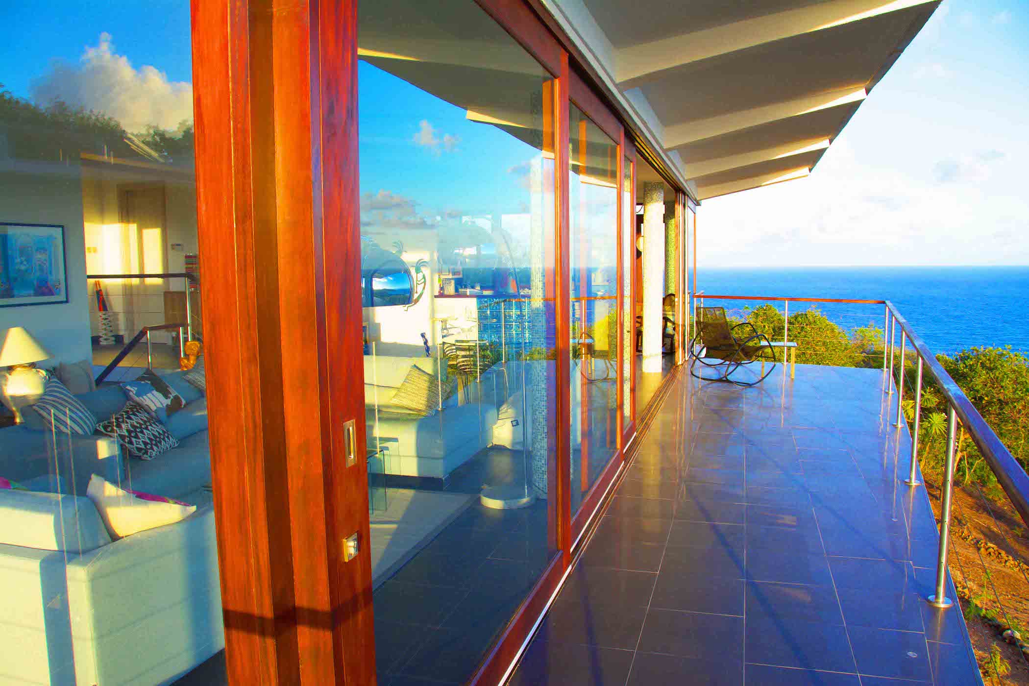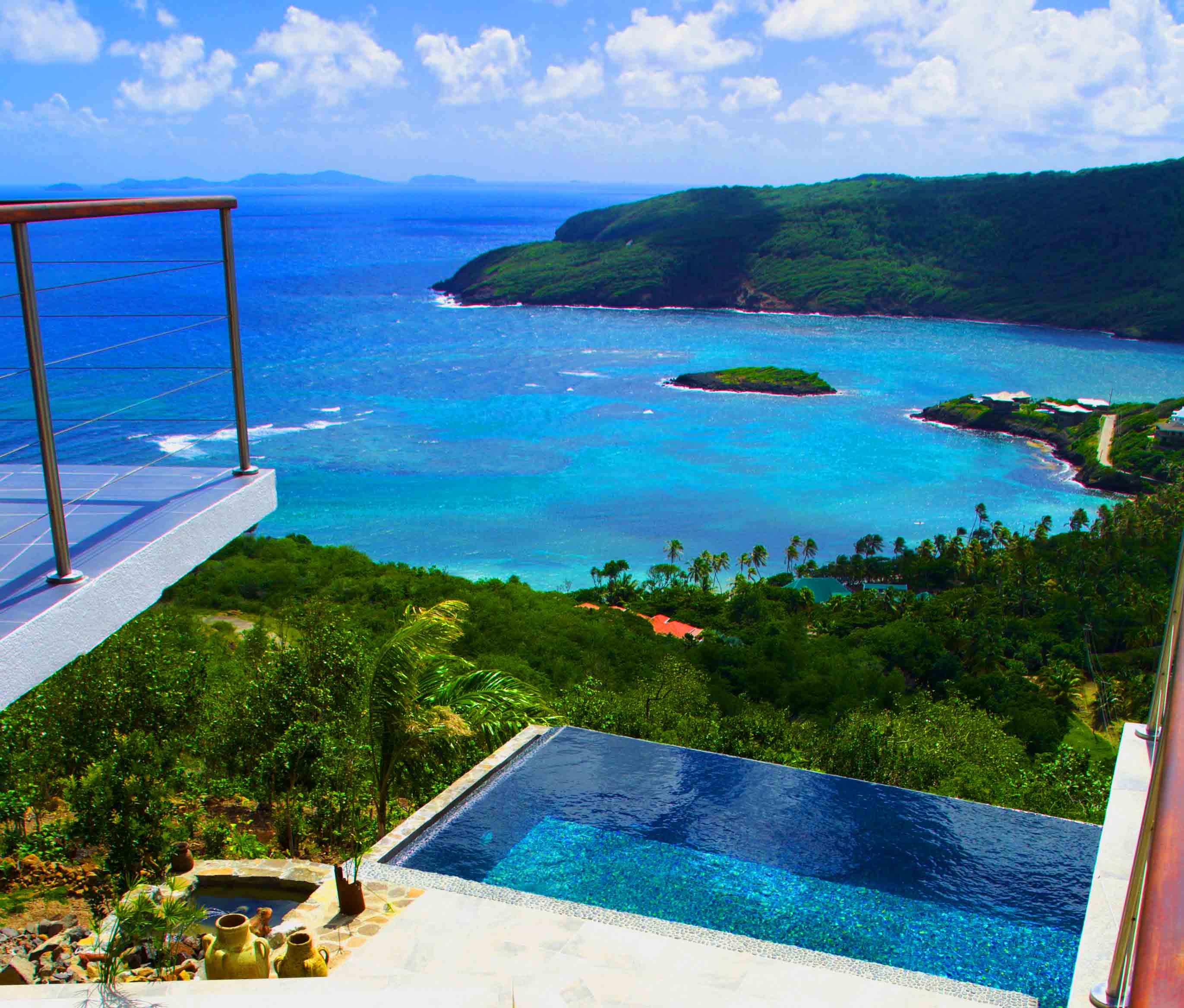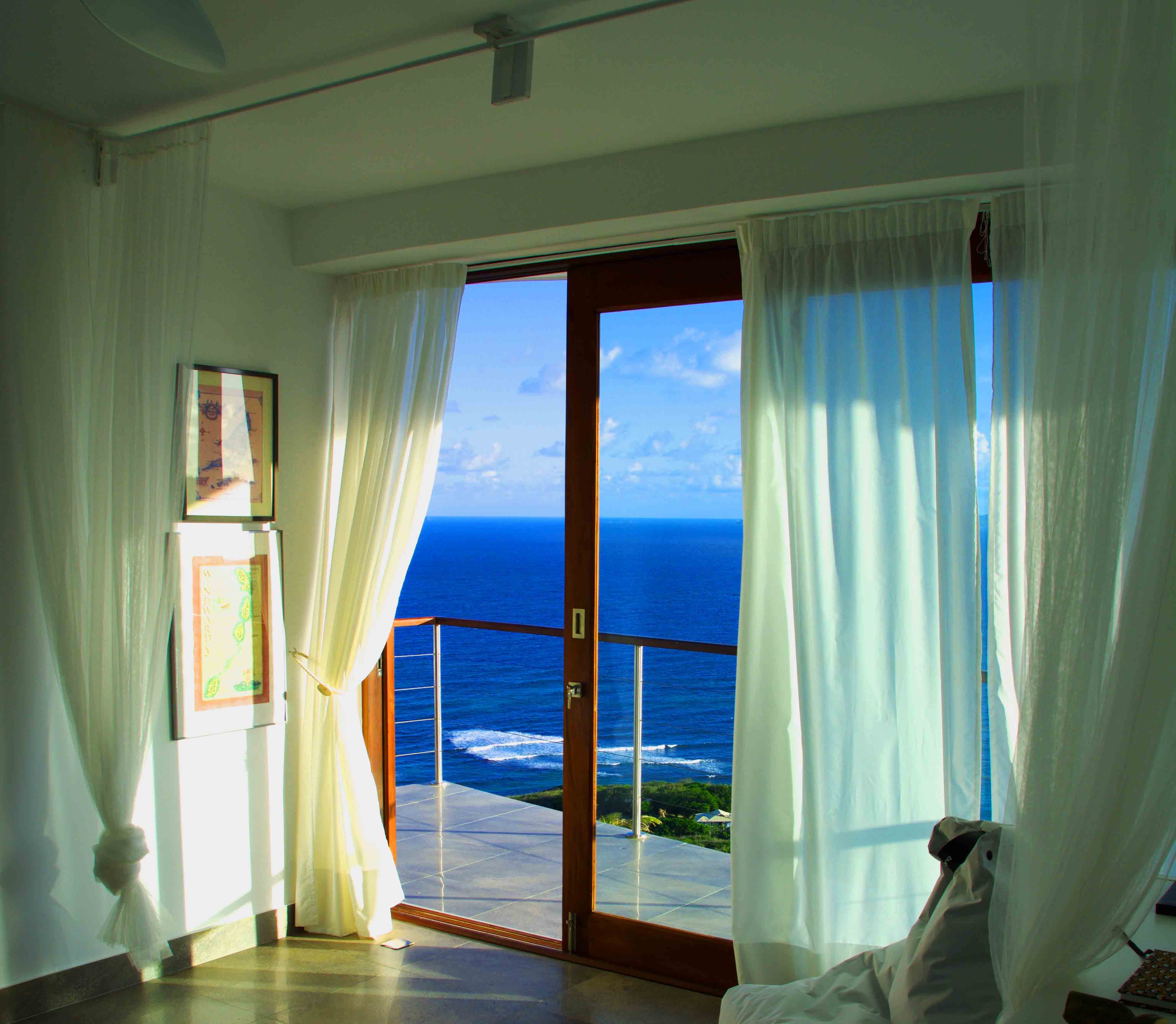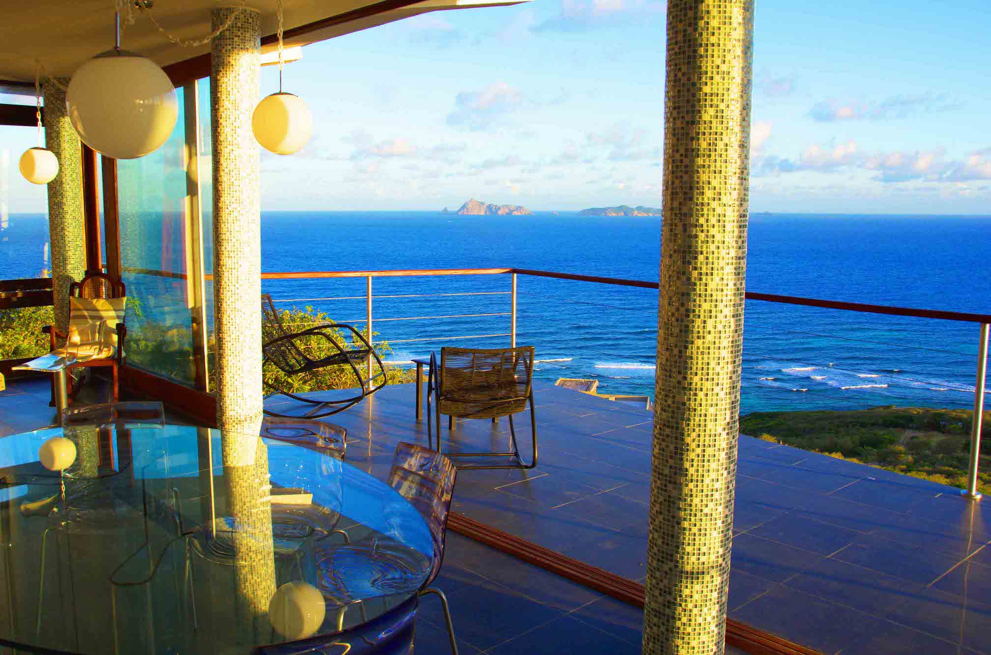 Panoramic views ranging from far reaching vistas across the Ocean, to the East Coast of Bequia's Crescent & Spring Bays.The stunning ocean views incorporate the uninhabited islands of Balliceaux & Battowia, and over to the private island of Mustique. From the turquoises of the idyllic Crescent Bay, to the tropical greens of the hills of Spring & Industry; special views from a special location.
