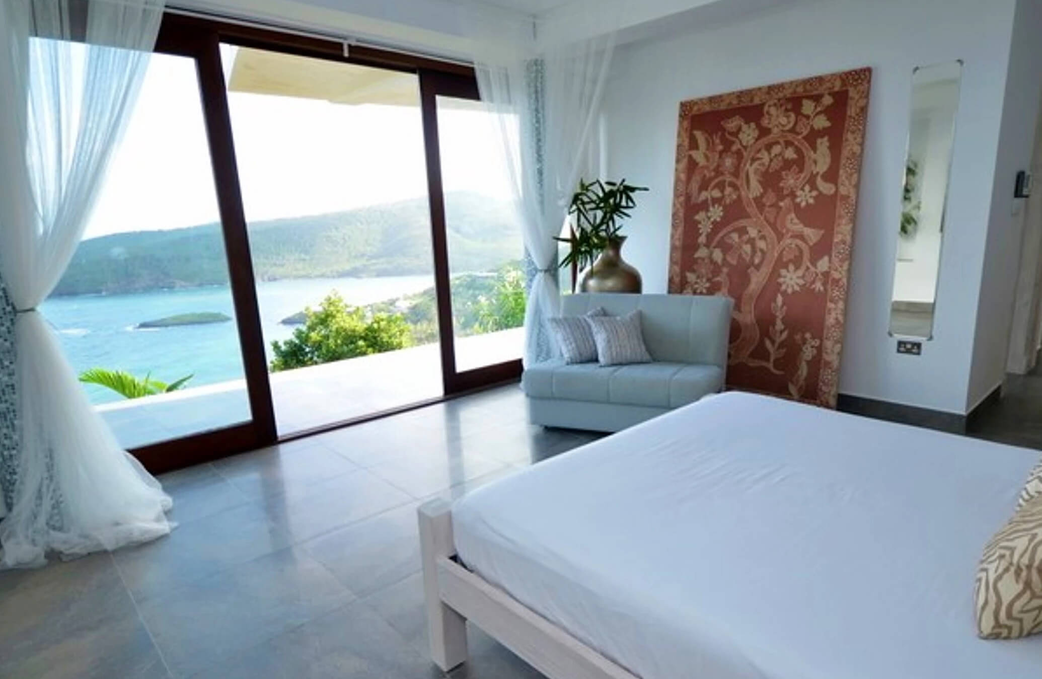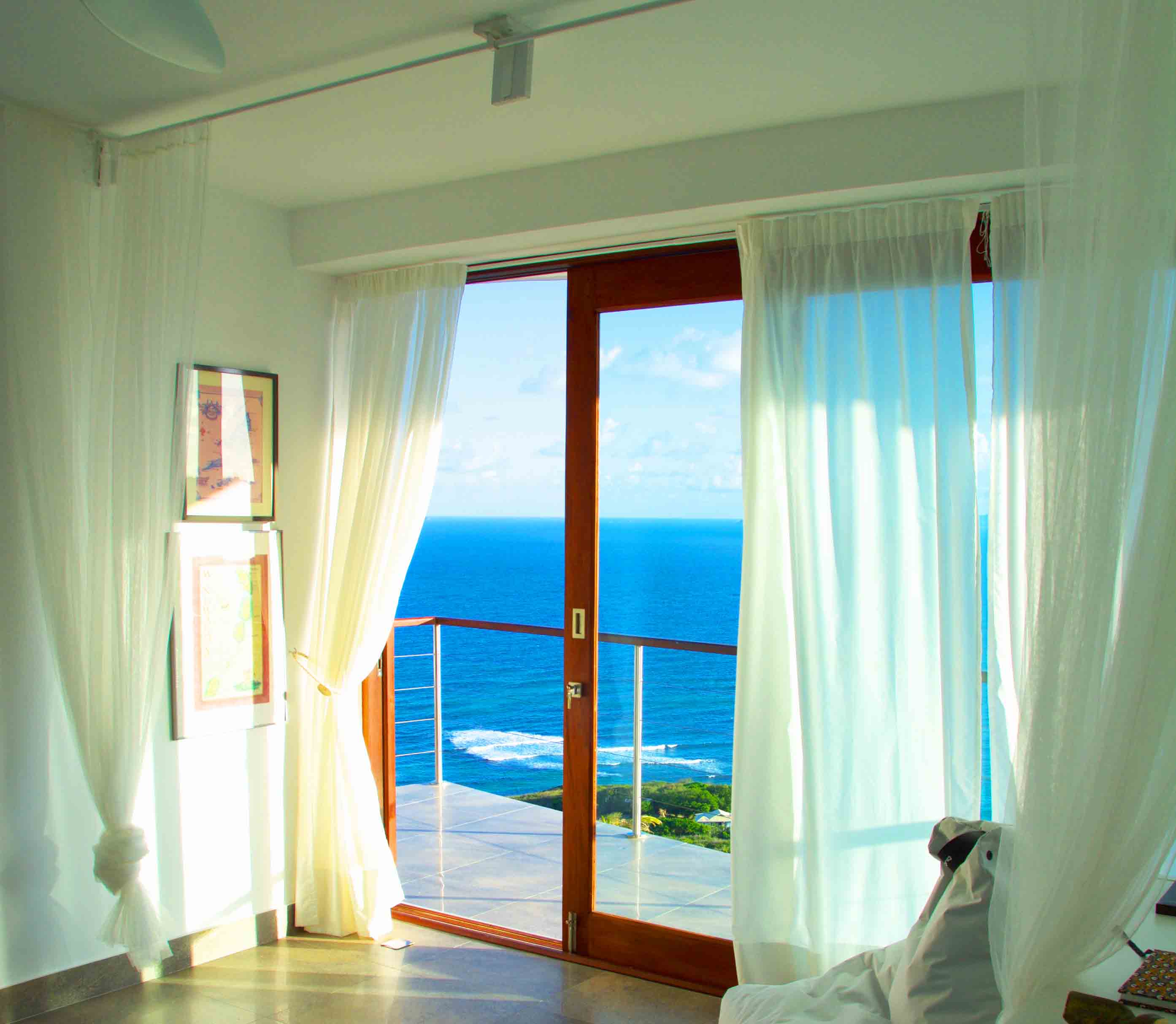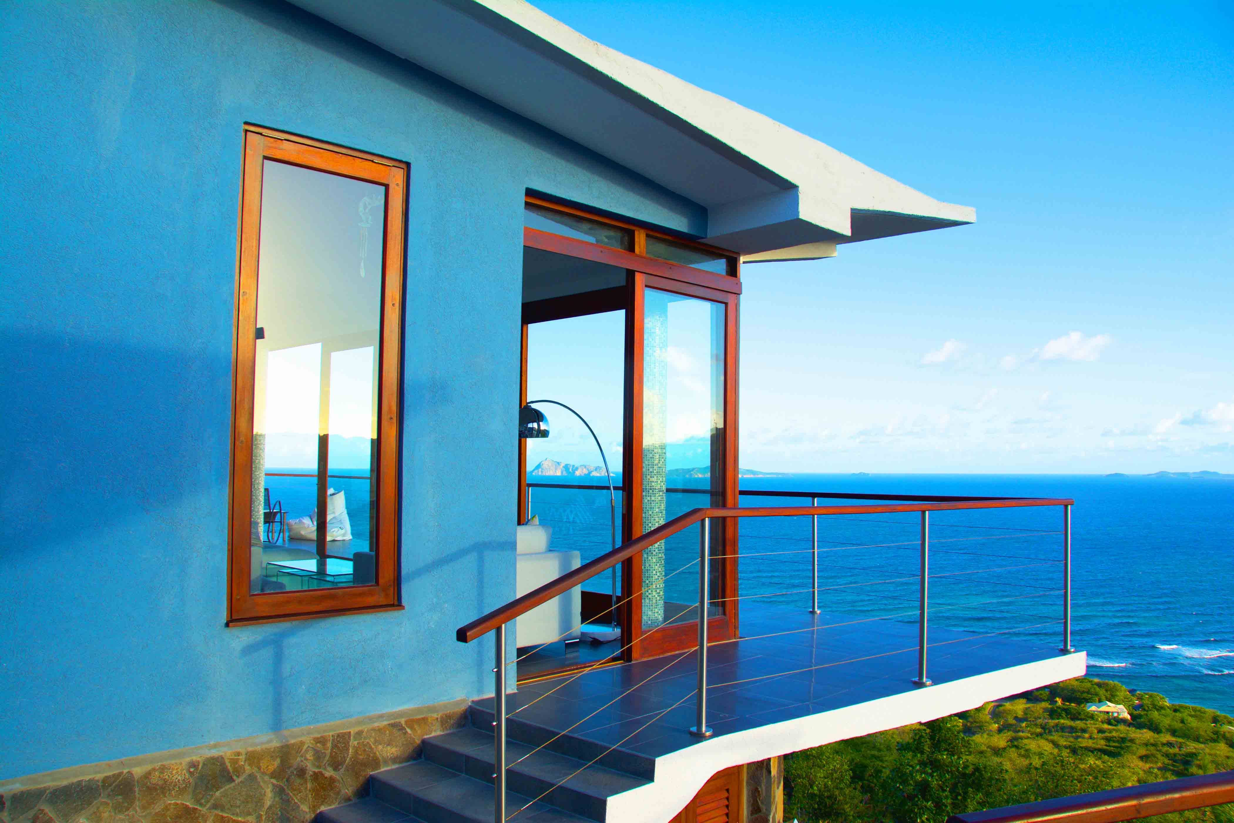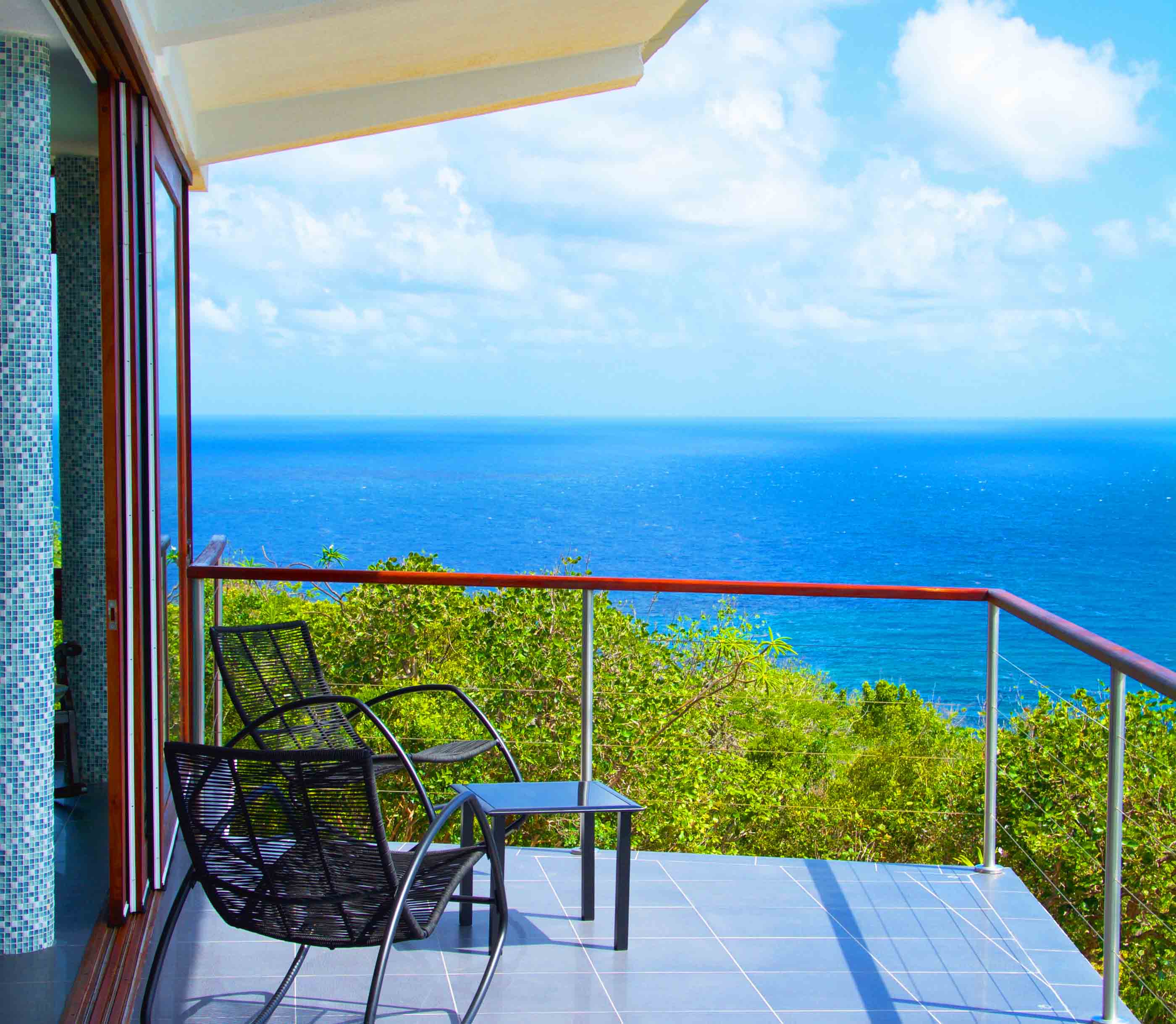 Panoramic views ranging from far reaching vistas across the Ocean, to the East Coast of Bequia's Crescent & Spring Bays.The stunning ocean views incorporate the uninhabited islands of Balliceaux & Battowia, and over to the private island of Mustique. From the turquoises of the idyllic Crescent Bay, to the tropical greens of the hills of Spring & Industry; special views from a special location.