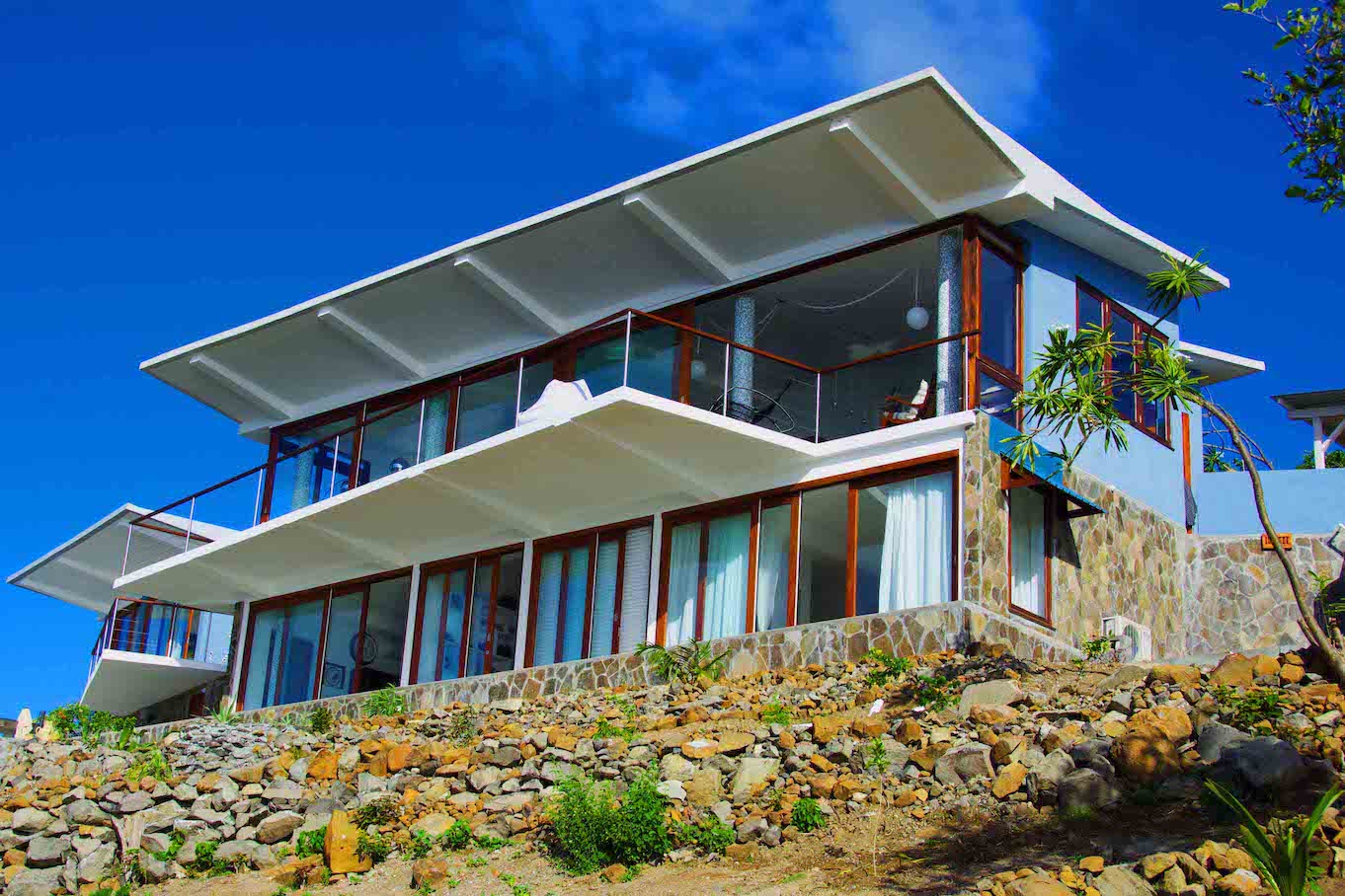 A magnificent, precisely detailed & fully equipped villa in an elevated position above Crescent Beach. The Winchester is a contemporary home. Offering private peaceful accomodation for 6 guests. Set in 1 acre of newly planted tropical gardens above Crescent Bay.