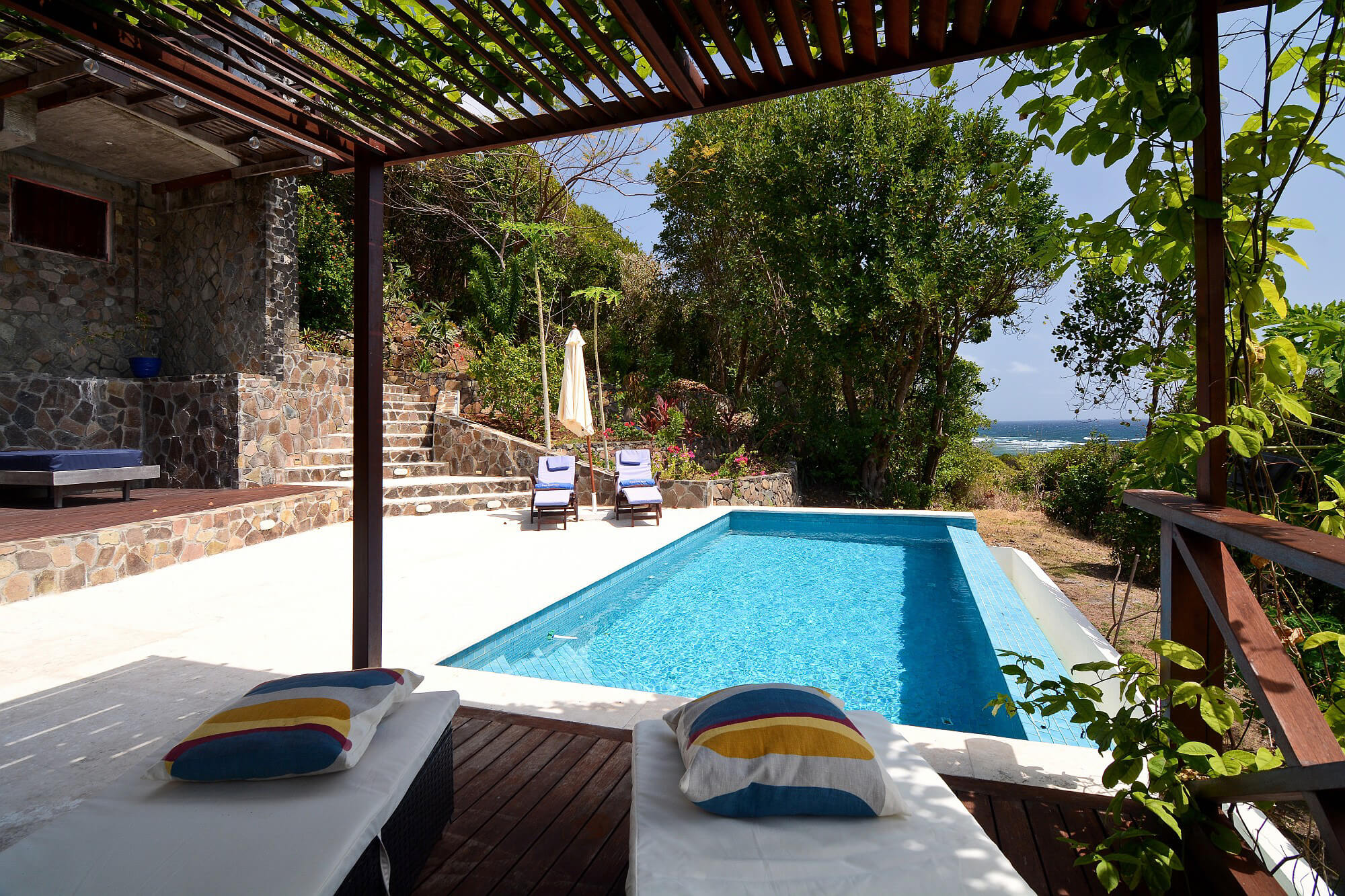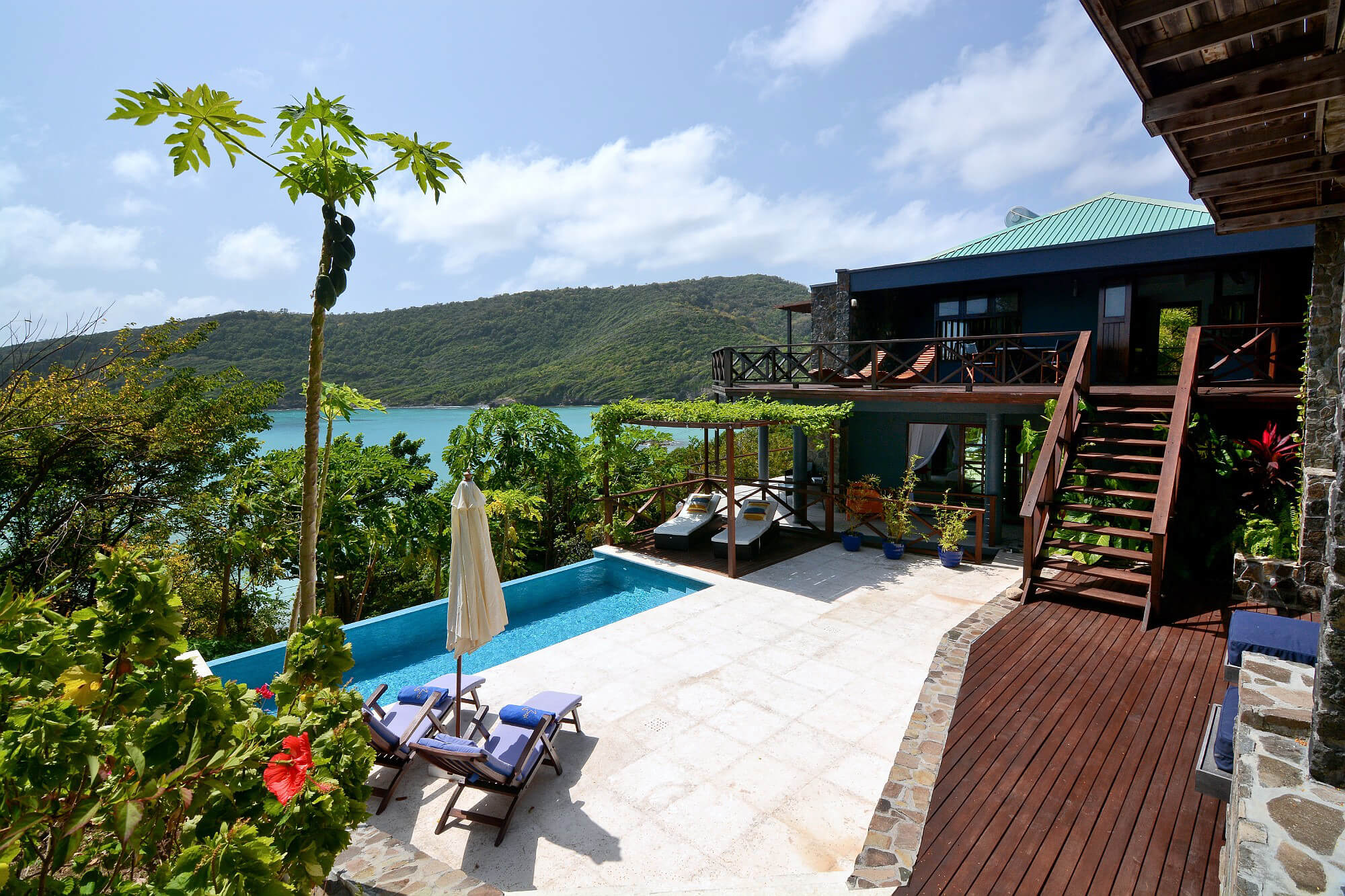 A stunning property with a very stylish feel. Set in tropical gardens with breathtaking island and ocean views, this is a dramatic vacation home that will bring you breathtaking memories - highly recommended!