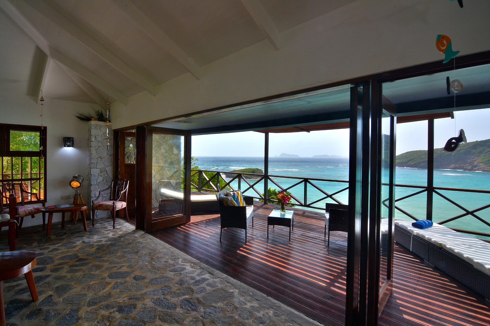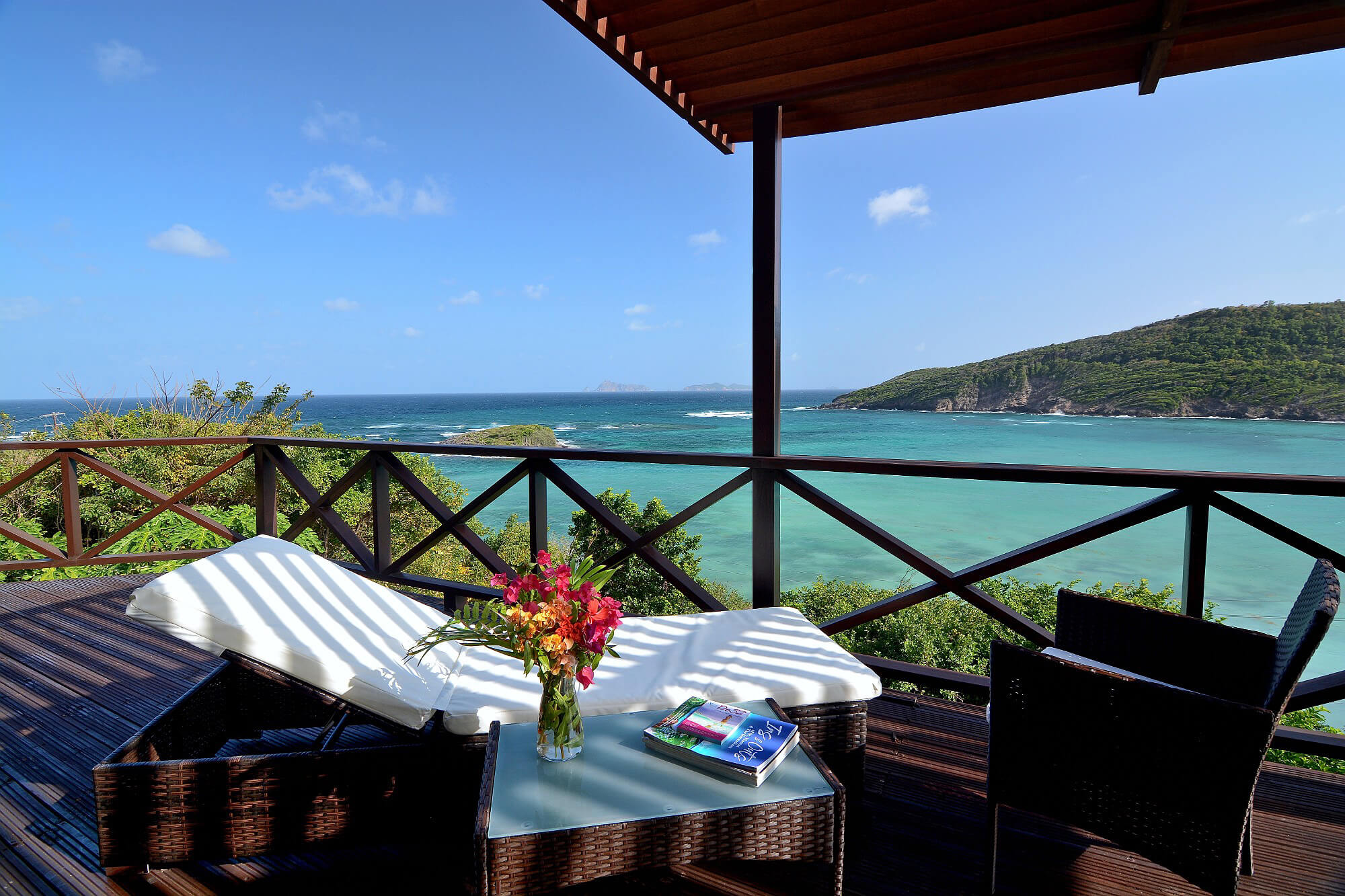 Guests can sit and enjoy just looking out across the bay over to the uninhabited islands of Balliceaux & Battowia.