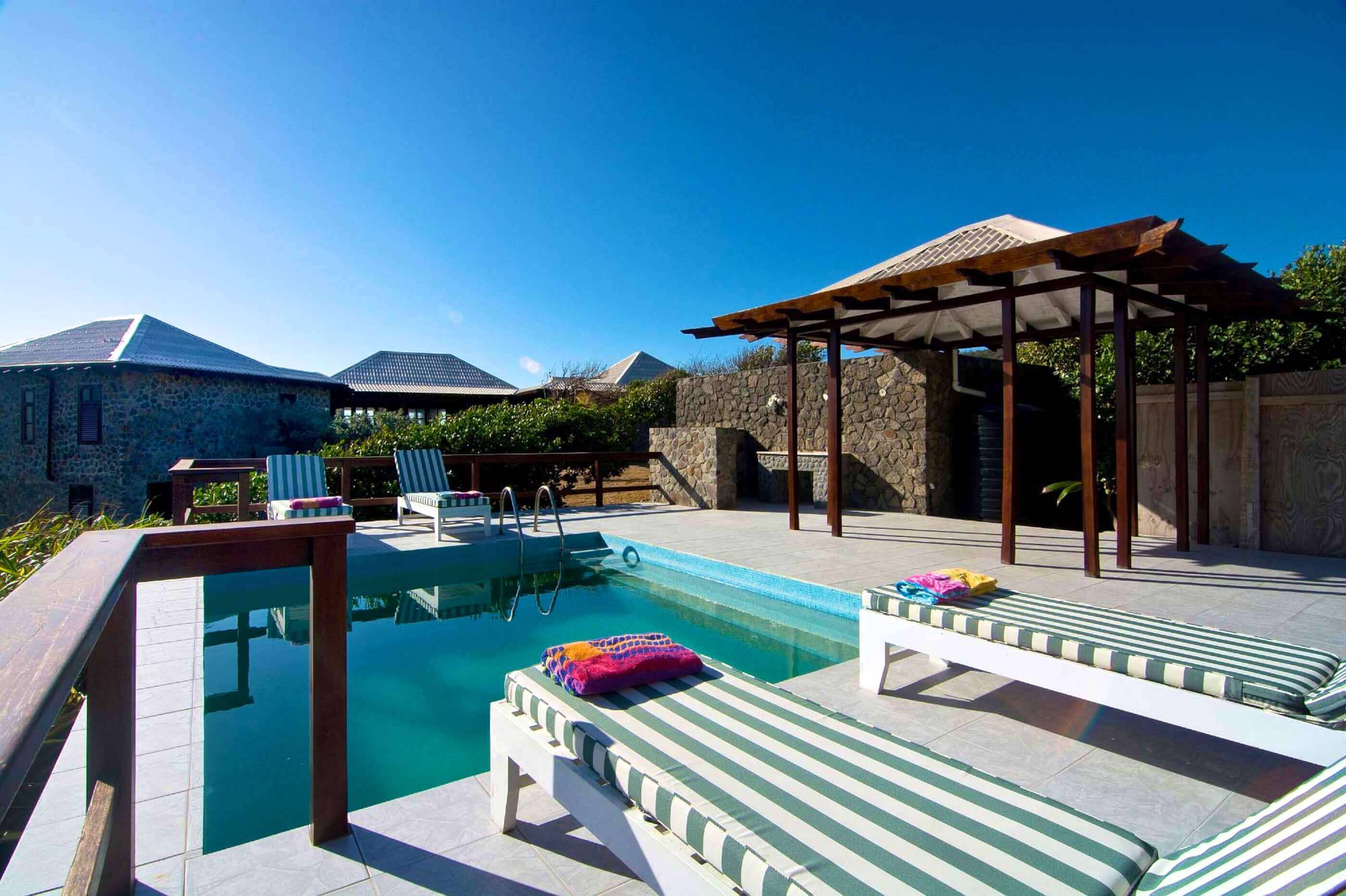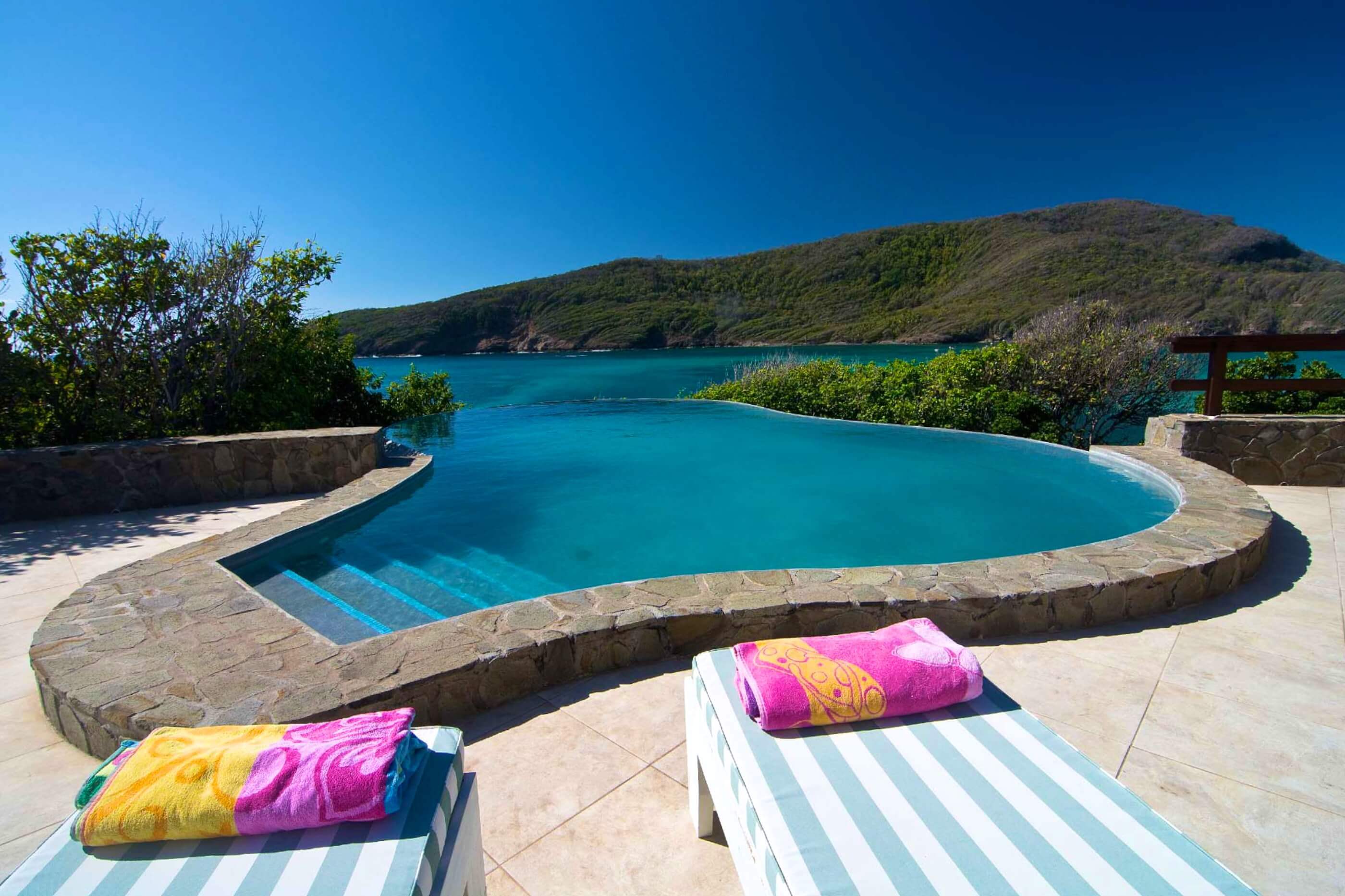With large private gardens, 2 swimming pools & sundecks, surrounded by crystal clear waters and panoramic views. Swim or snorkel right from the bay below with direct access.