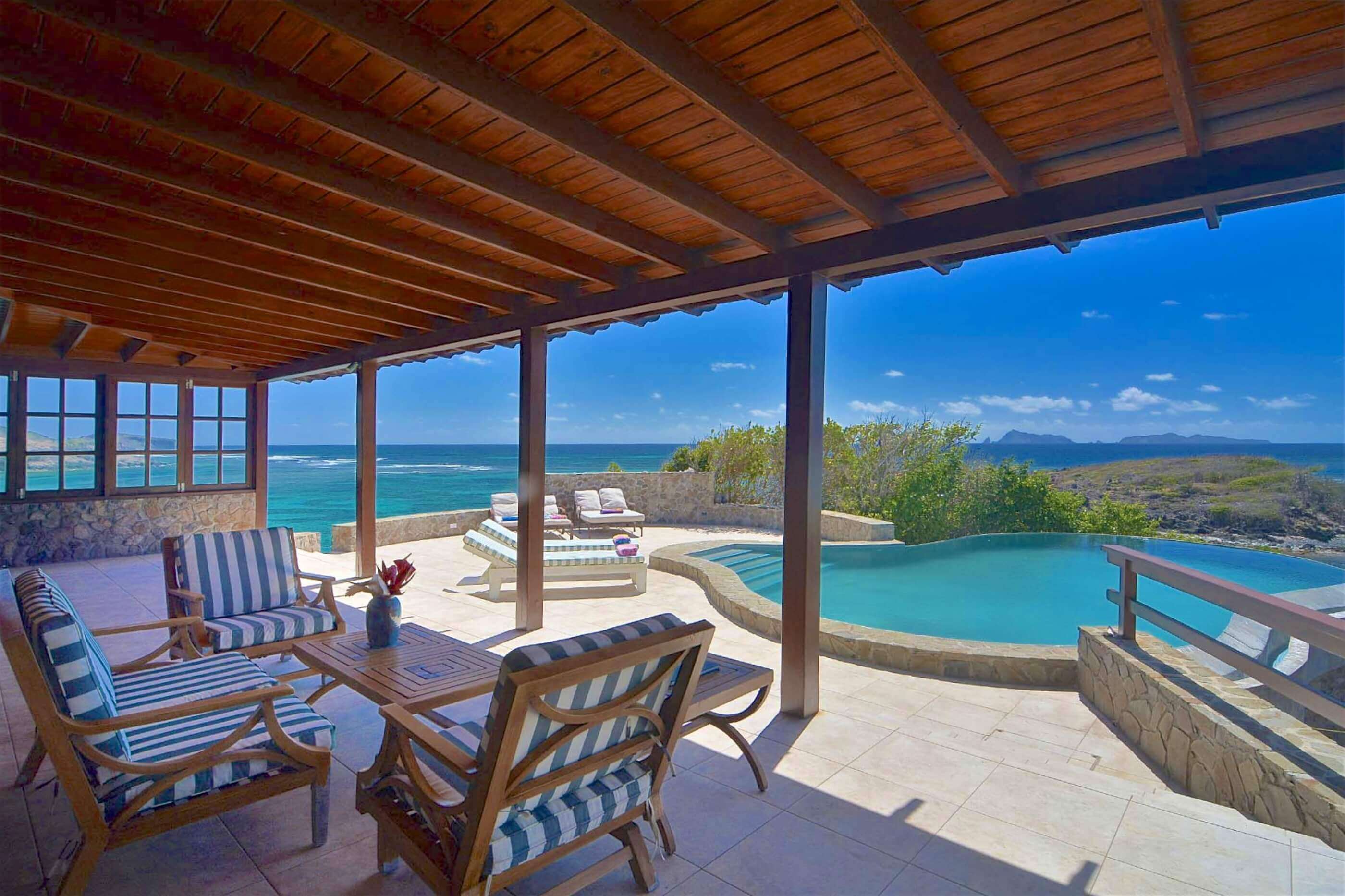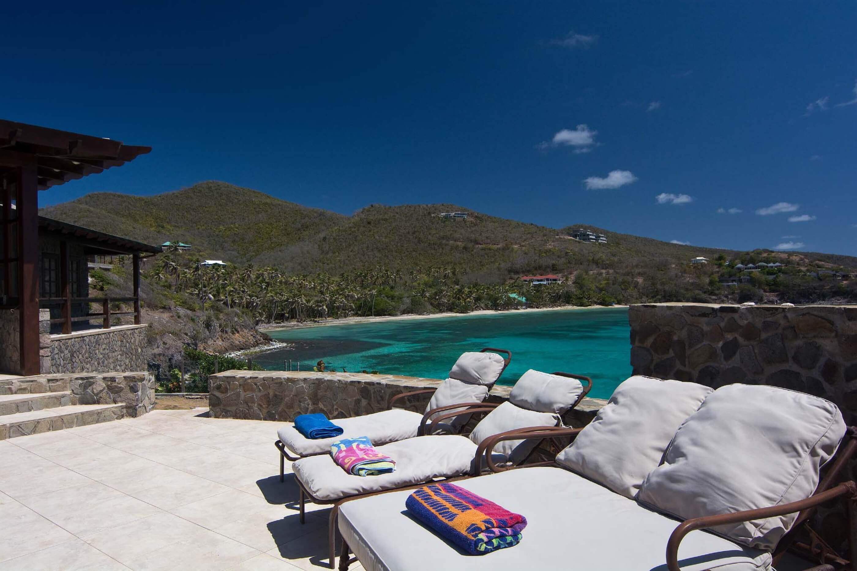 39 purpose built steps from the leeward garden leads directly down to a small beach below the property - perfect for a cool dip or energetic snorkel, kayak around the coastline.