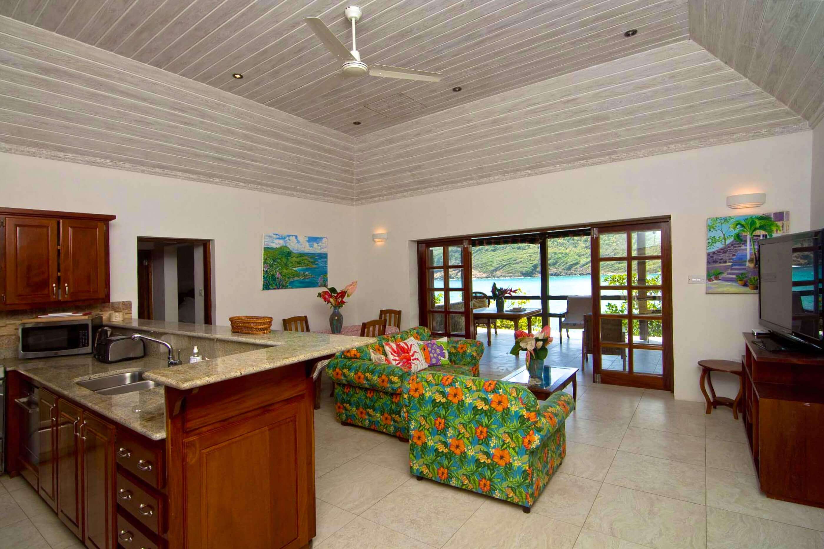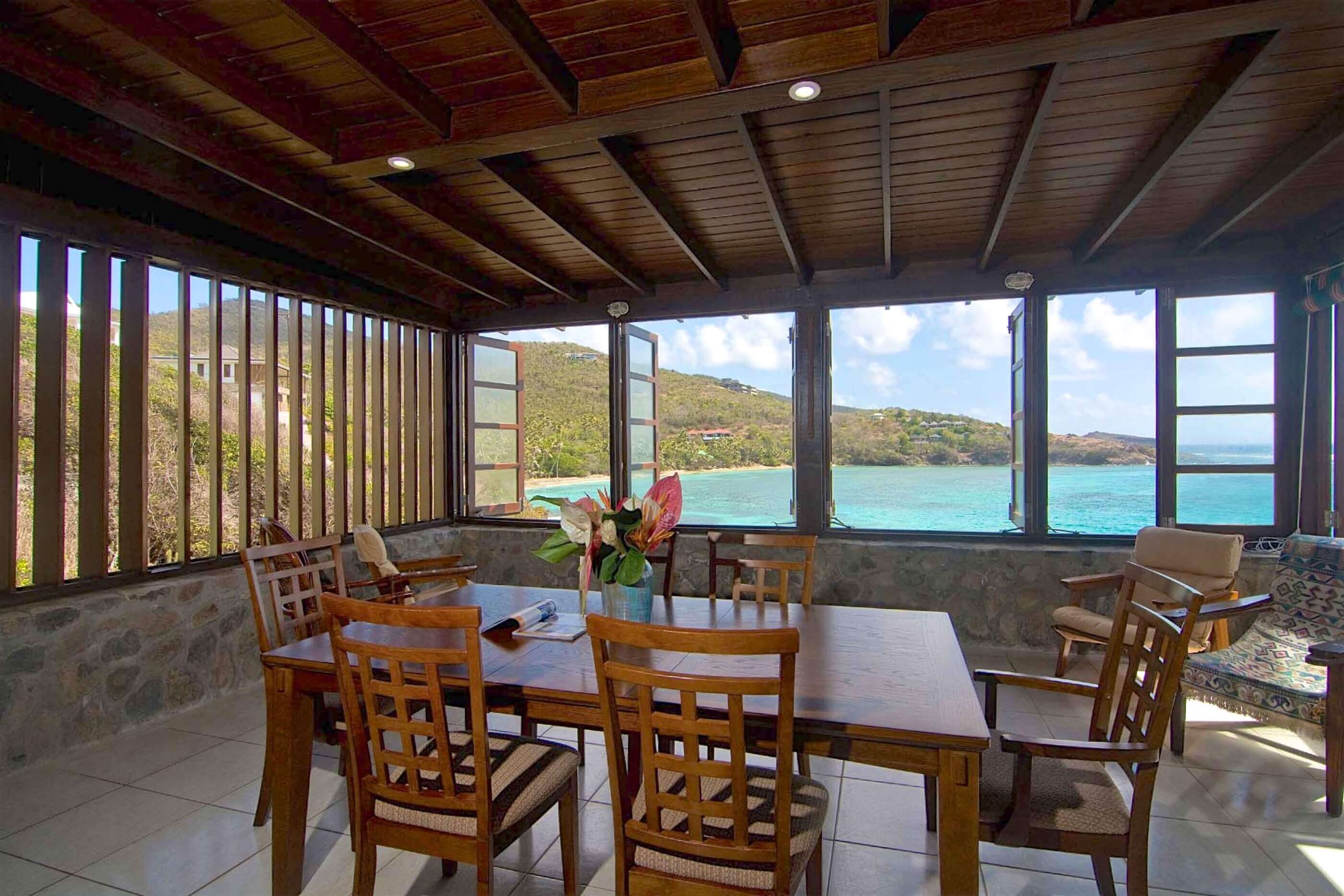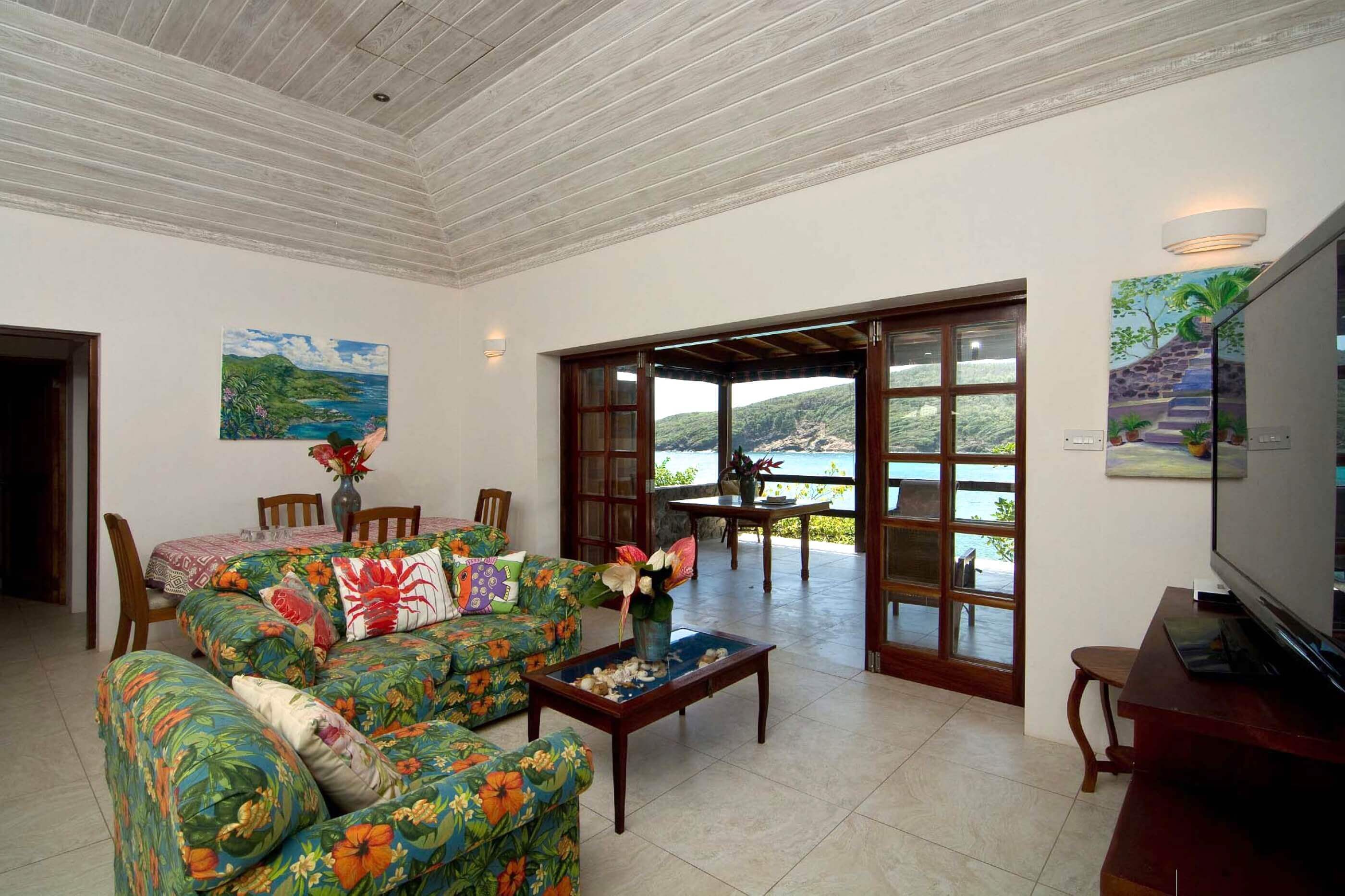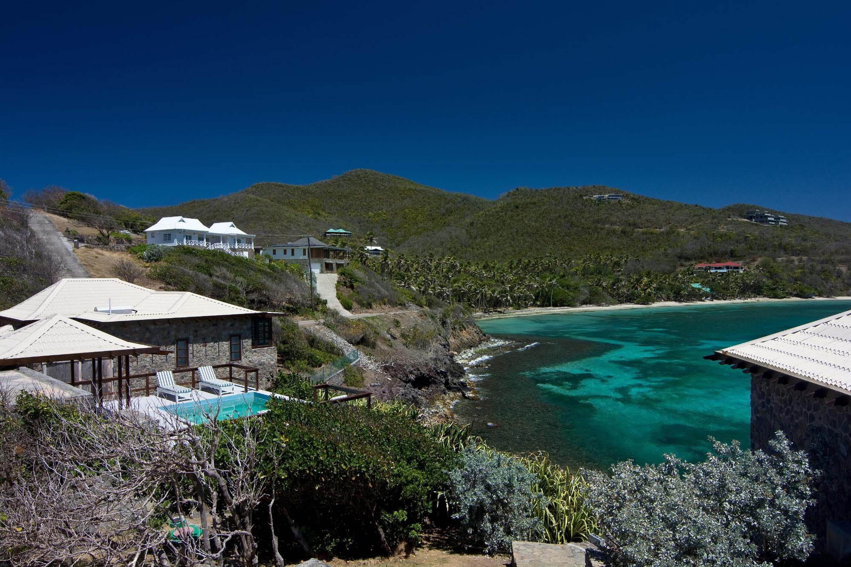 Look Yonder Villa and Cottages, located at Crown Point, Industry Bay Bequia, sit on a small peninsula which extends east, protected by a small island about one hundred feet offshore. The whole property has stunning panoramic views incorporating Spring Bay, Crescent Bay and the uninhabited islands of Balliceaux and Battawia.