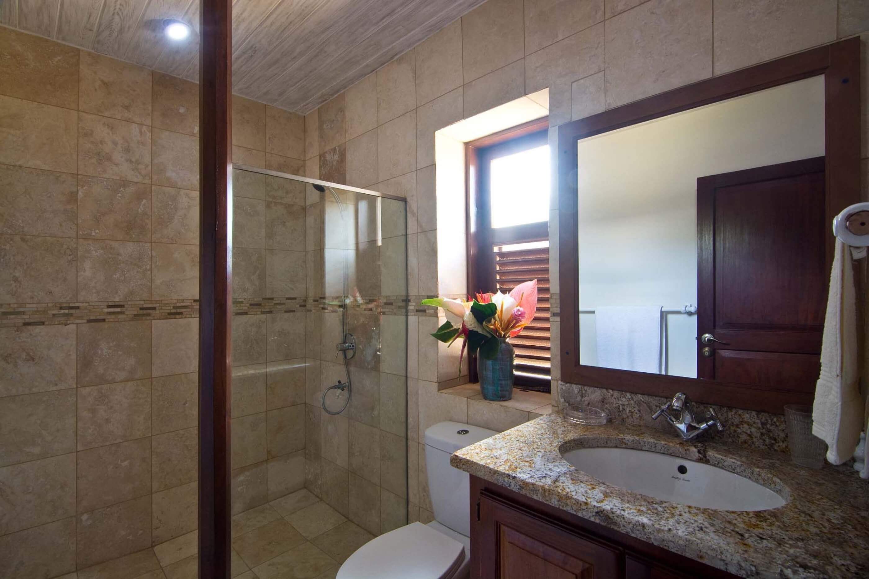 The main villa with 4763 square foot of interior living space is fully air conditioned and contains 2 large en suite bedrooms, a spacious kitchen just off the open lounge / dining area which opens up directly onto the pool terrace.