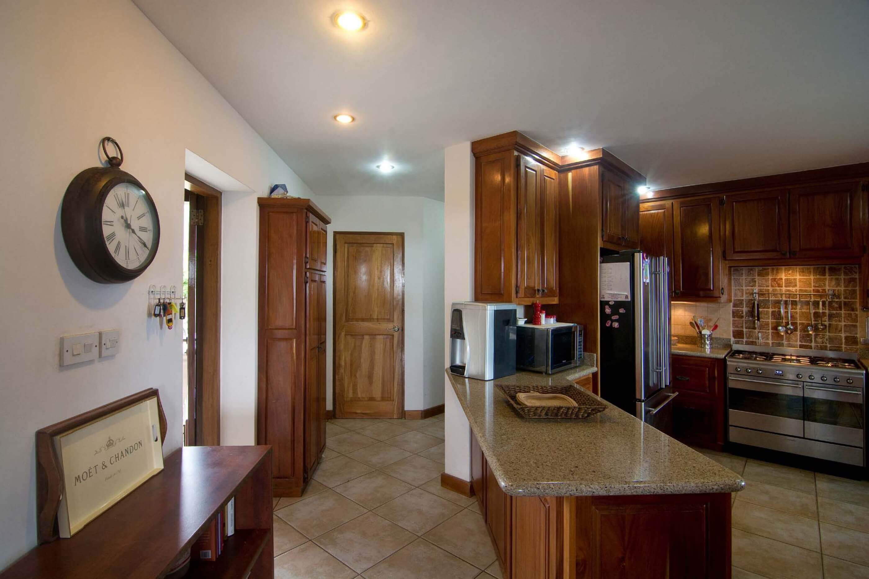 The main villa with 4763 square foot of interior living space is fully air conditioned and contains 2 large en suite bedrooms, a spacious kitchen just off the open lounge / dining area which opens up directly onto the pool terrace.