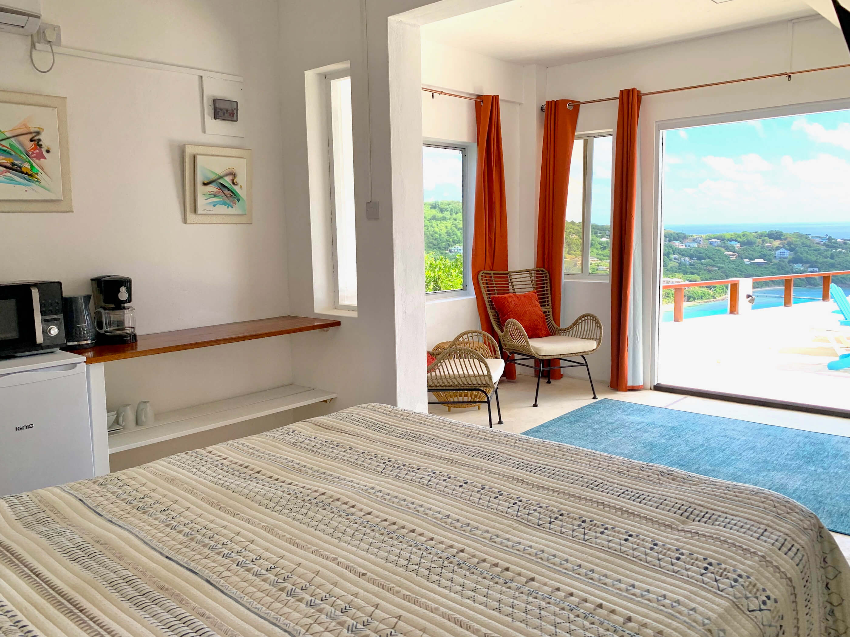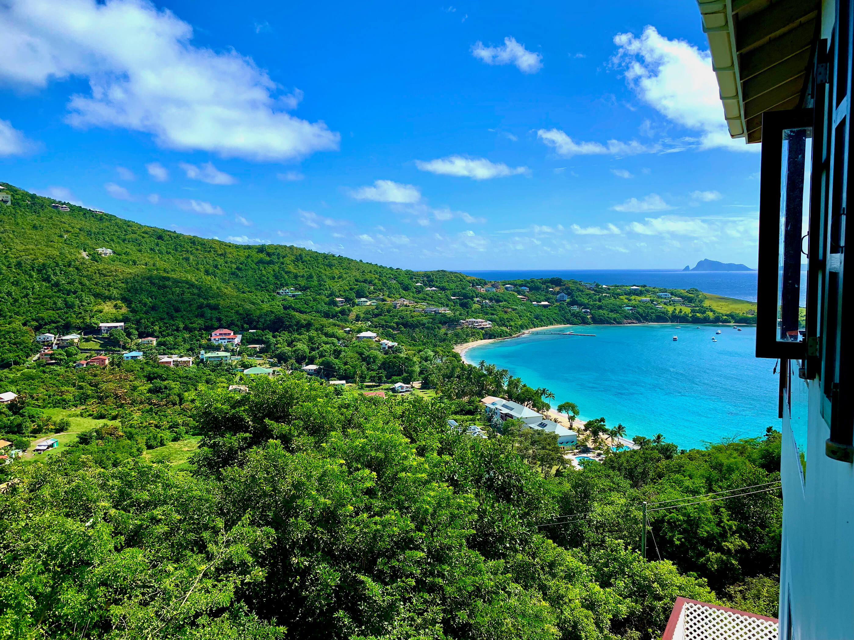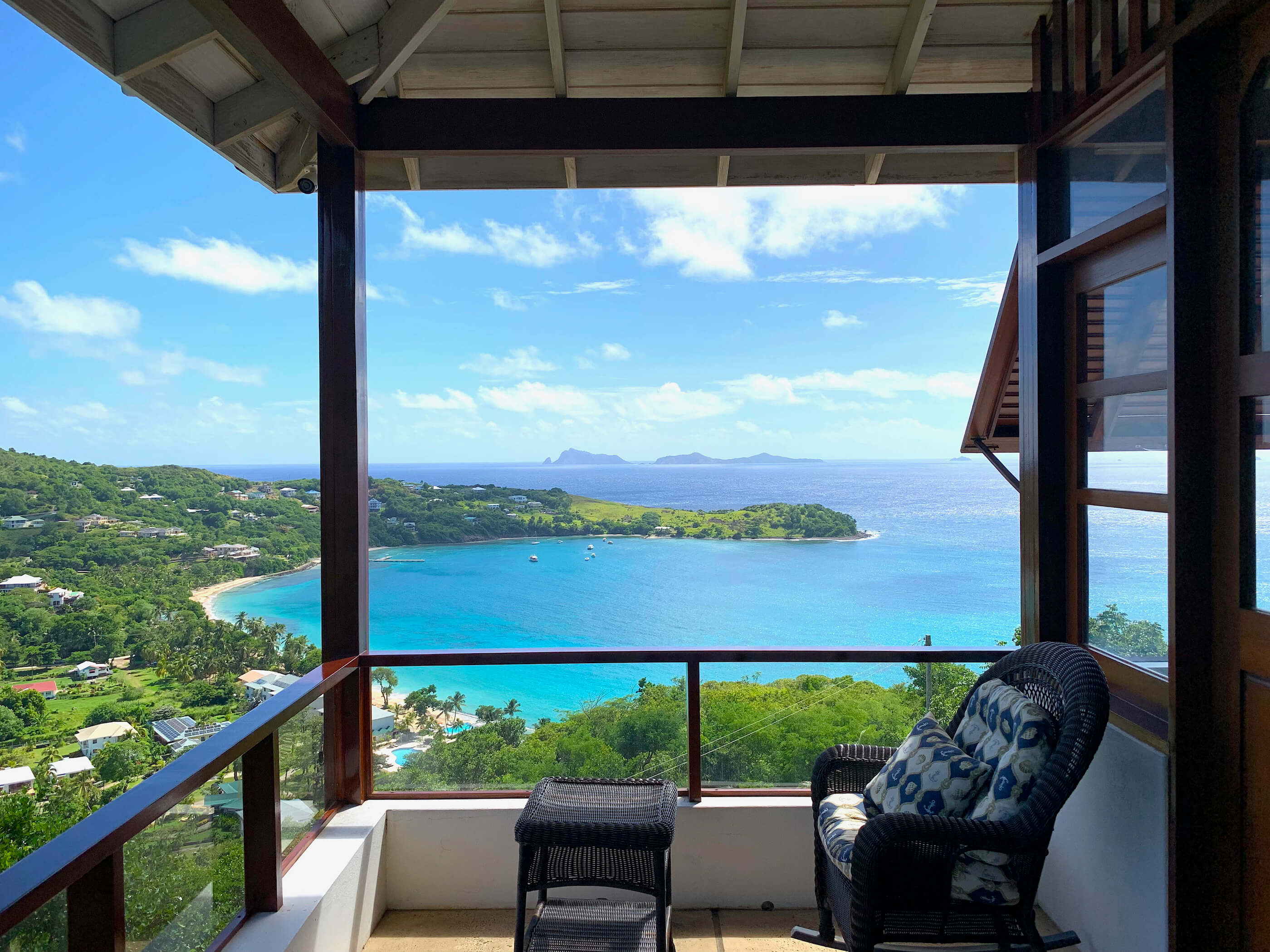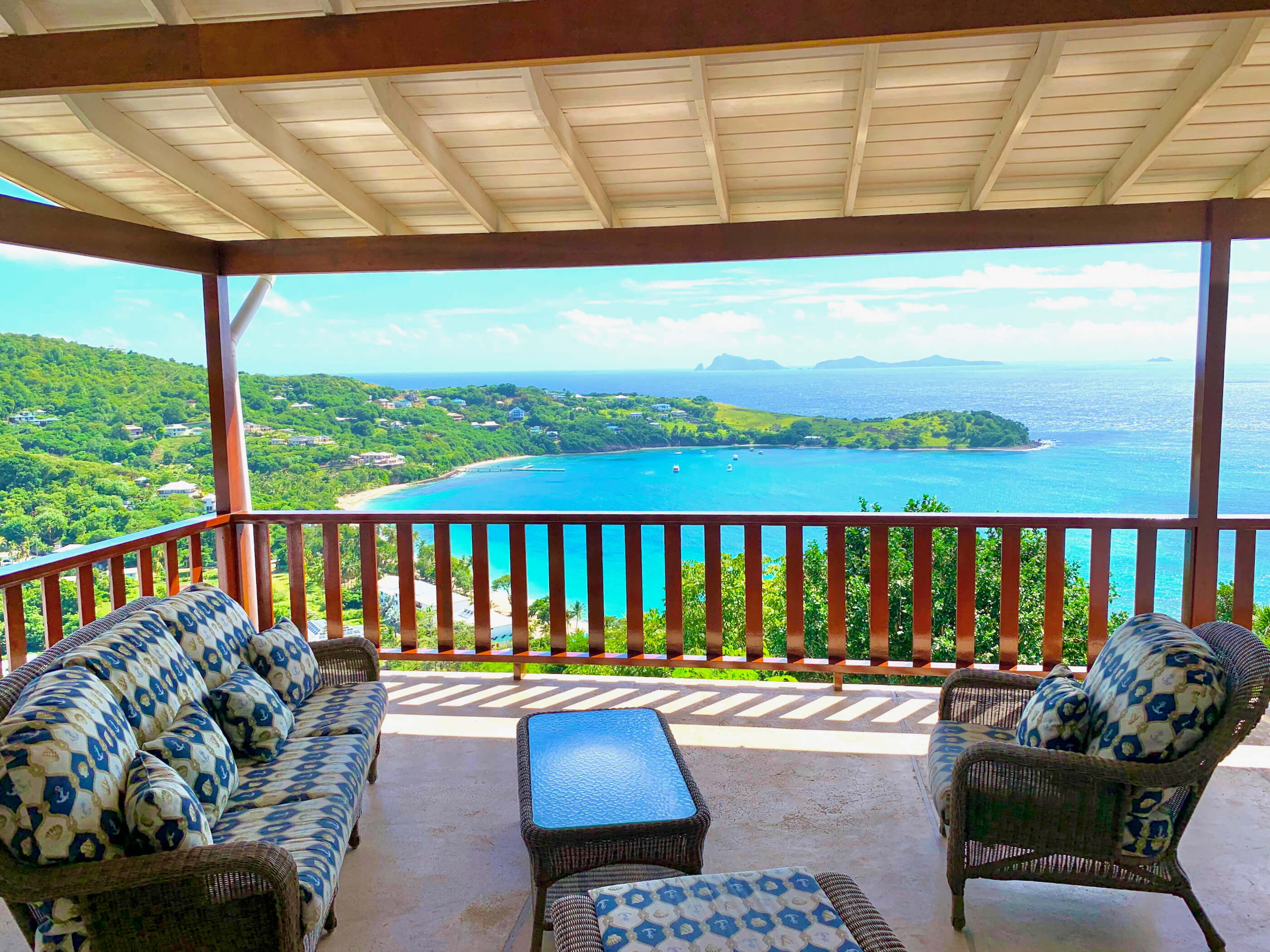 Fantastic panoramic views include the uninhabited islands of Balliceaux, Battowia and the Whaling Station, the whole of Friendship Valley & Friendship Beach / Bay, over to the island of Mustique, and Bequia's Admiralty Bay on the West.